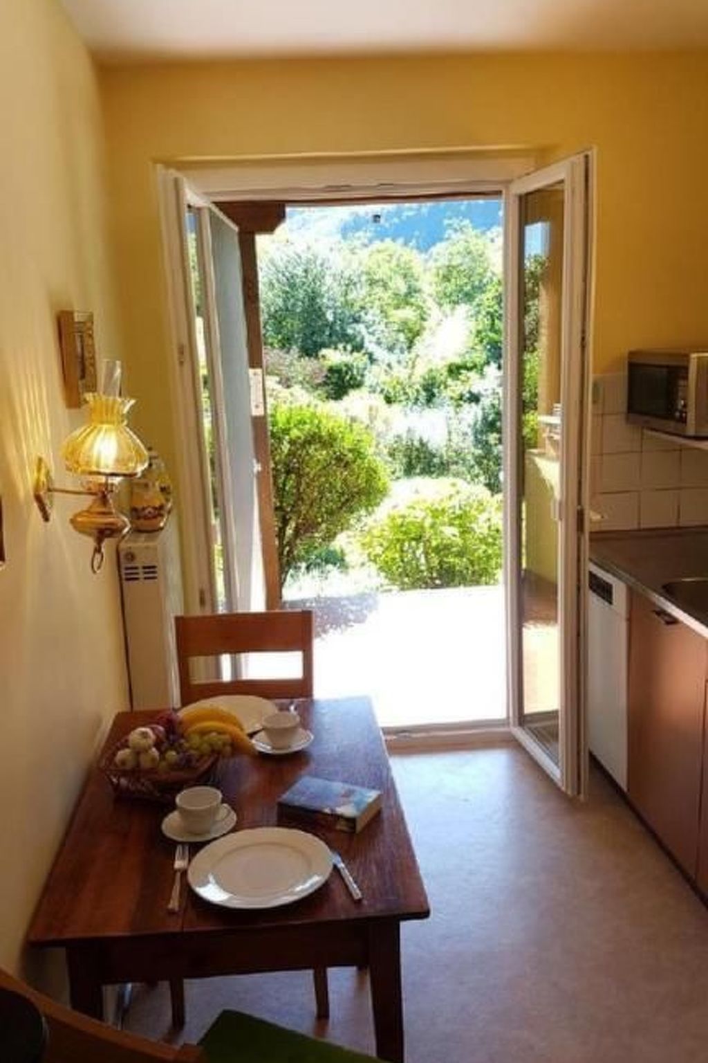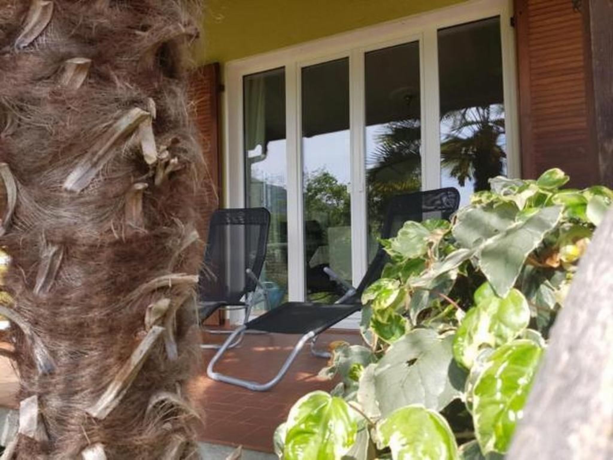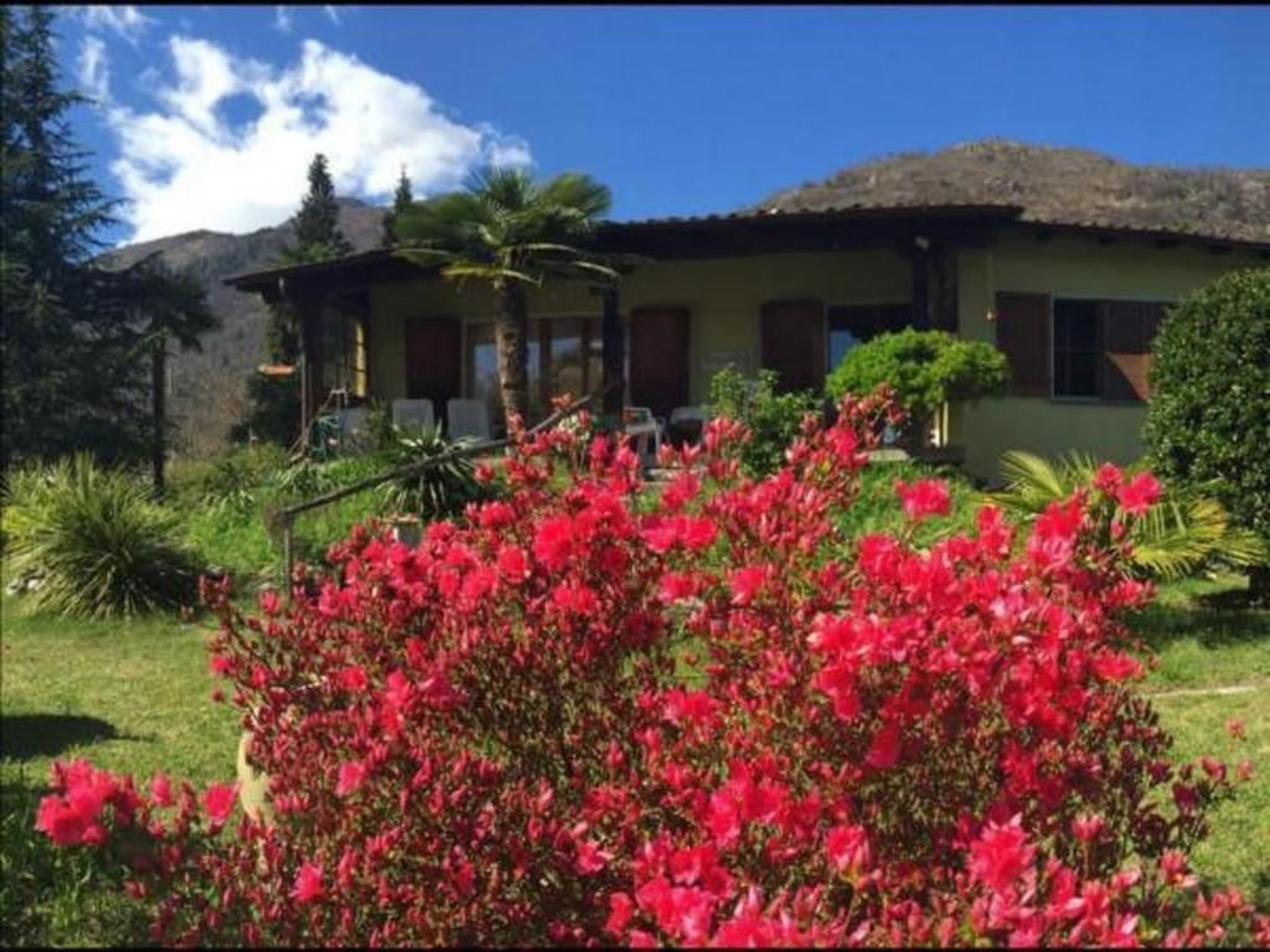 The very well-kept detached house, approx. 86 m2, with living room, dining room, 2 bedrooms, kitchen, bathroom and hallway as well as a large balconystands in a spacious, 1860 m2 park-like Mediterranean garden with many palm trees, azaleas and camellias.A private car park is also available.An ideal place to relax and unwind or for the children to play, for whom there is also a paddling pool.Casa Elena is situated in a favoured, absolutely quiet and sunny location on the outskirts of Tegna, a typical small Ticino village in the Terre di Pedemonte region and in the immediate vicinity (approx. 7 minutes by car or regional train) of Locarno or Ascona.Our guests can enjoy the peace and quiet and the view of the mountains opposite Lake Maggiore on the terrace/balcony with dining table, chairs and loungers or in the garden. Or they can retire to one of the comfortable armchairs in the living room with one of the many books from the library.For the children, there are games and painting utensils in the house as well as a changing mat, a baby high chair and a high chair for toddlers.There is also a comprehensive TV programme and free Wi-Fi.All windows and patio doors are fitted with fly screens/doors. The windows are heat-insulating and fitted with sun blinds or shutters.roller blinds or shutters,Numerous kitchen utensils are available in the kitchen for cooking enthusiasts. These include a table, 2 chairs, fridge, microwave, hob, oven and dishwasher. Thanks to the insect screen door, you can enjoy the balmy evening air with the patio doors open and also take part in conversations on the patio while cooking.Shopping facilities are in the immediate vicinity (5 min) or in large numbers in Losone (6 min)Those who simply want to indulge in culinary delights will find a number of good restaurants and grottos in the village and the immediate vicinity, which can also be reached on foot.If you want to go swimming in Tegna, you can reach the river or the wonderful "Pozzo di Tegna" lagoon in approx. 800 metres.The large Lido of Locarno with its sandy beach, sunbeds, various pools and water slides as well as a fantastic spa is also a welcome change.From Casa Elena you can easily set off on wonderful excursions, great hiking trails and a varied sports programme, such as golf, tennis, mini golf, horse riding, sailing, climbing, etc.Or you can take a leisurely stroll through the famous Swiss holiday resorts of Ascona + Locarno with their numerous cultural events, beautiful shops, arcades, countless restaurants, including on the promenade with views over Lake Maggiore, bars, ice cream parlours and the casino.Great events await you, such as the international film festival in Locarno or the Moon&Stars music festival, as well as the world-renowned JAZZ Festival in Ascona and much more.I hope that I have been able to inspire you to spend a wonderful holiday at Casa Elena in Tegna and I look forward to welcoming you as our guests.Other sports and leisure activities: Bungee jumping "Golden Eye" James Bond Verzasca dam, fishing, swimming, minigolf,Excursion possibilities: Shopping and sightseeing in Locarno, Ascona, Lugano, Milan, Como and the associated lakes. The valleys and mountains in the Centovalli and Maggia valleys. The weekly markets in Luino or Canobbio on the Italian side. The Isola Brissago and Isola Bella, the castles of Bellinzona (Unesco World Heritage Site) and Swiss Miniature and other interesting sights.Facilities House approx. 86 m2Living room and dining room:3-seater sofa, 2 large armchairs, 1 coffee table, 2 side tables, 1 wall unit with many books, 1 flat screen TV with SAT receiver, ceiling chandelier, reading lamp, 1 dining table for 6 people, 6 dining chairs, 1 baby dining chair if required, 1 height-adjustable high chair, 1 large buffet with wine glasses, secretary and drawer cabinet, large ceiling light, fireplace but not usable, double-leaf exit door to the covered terrace, heat-insulating windows and patio doors, curtains, fly screensEntrance hall and corridor approx. 10 m² with table and chairs, large shoe cupboard and wardrobeBedroom furnishings (bedroom 1): Wardrobe, mirror, 2 armchairs and side table, 2 bedside tables, double bed 180/200cm, ceiling lamp, , reading lamps, radio-CD player, roller shutters, fly screens, heat-insulating windows, curtains, carpets, fan, choice of pillows, choice of duvet.Bedroom 2: 1 wardrobe, 1 bed 90 x 200, 1 bedside table with lamp and radio, 1 wardrobe with fold-out bed 80 x 190, 1 seal, 1 ceiling light, window with roller blind and fly screen.Kitchen: 1 table, 2 chairs, fridge, microwave, hob and oven, dishwasher, 1 tall cupboard and a storage cupboardfully equipped with pots and pans, crockery and everything you need for cooking and baking, coffee machine for filter coffee and coffee machine for Dolce Gusto capsules. Cupboard with ironing board, iron, hoover and various cleaning products, double-sided heat-insulating patio door with separate flyscreen door to the 16 m2 covered terrace with additional dining area and sun loungers.Bathroom: Bathtub with shower, toilet and WC, washbasin with mirror and vanity unit. Separate small cupboard, window.Sports facilities in the area: fishing, mountaineering, ice skating, golf course, canoeing, climbing, mountain biking, paragliding, bike tours, rafting, riding arena / riding facilities, rowing, skiing (alpine), sports centre, squash, tennis. NL-6612
