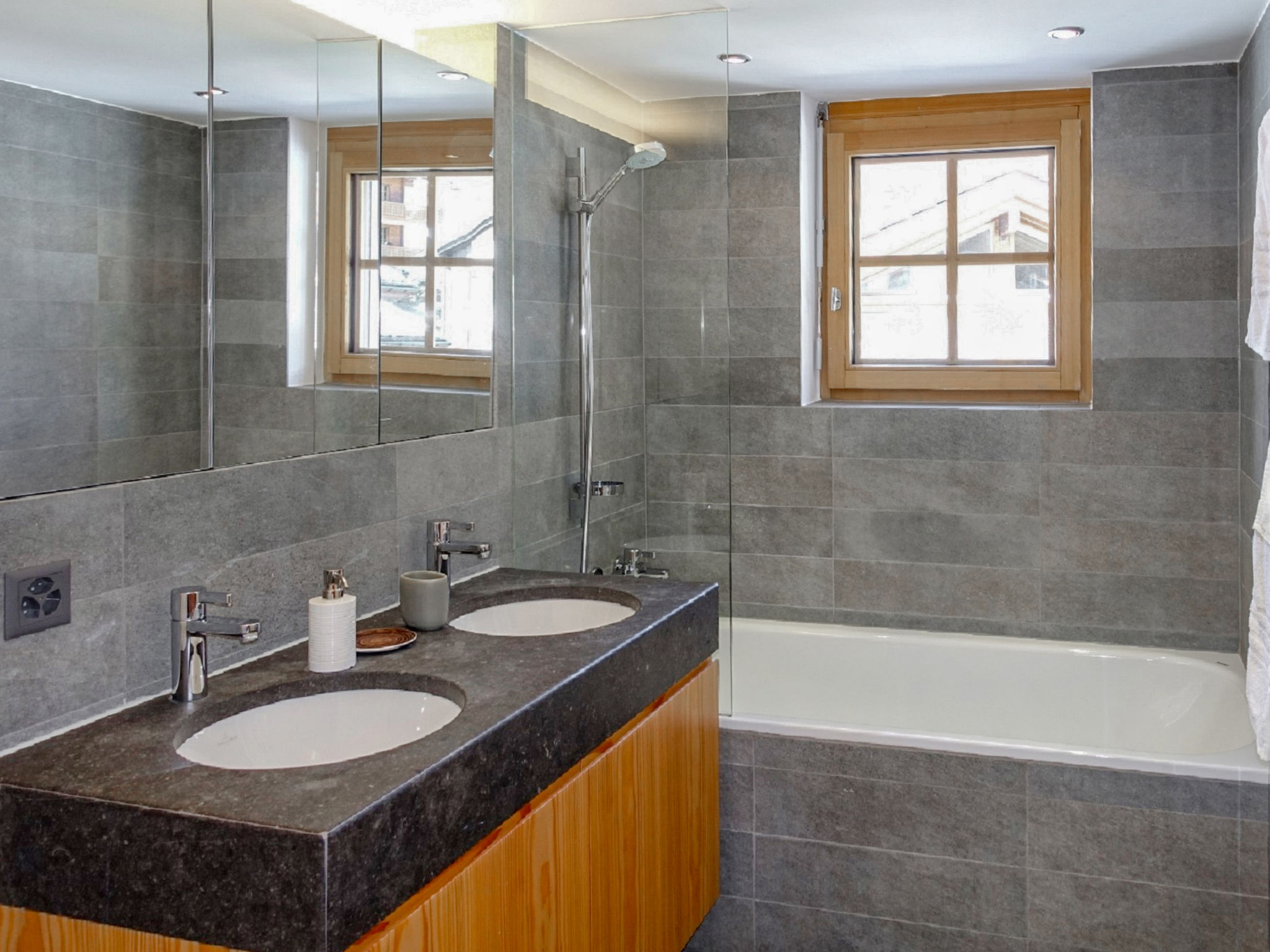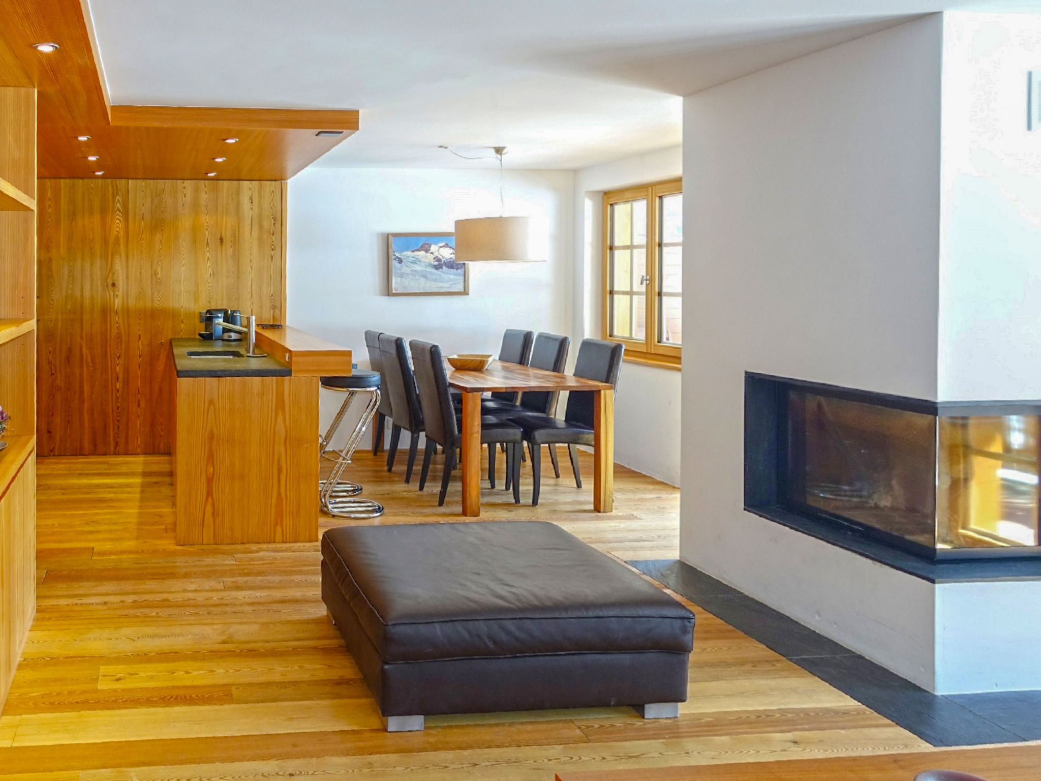 Apt. di 4 locali 110 m2 al 2. piano. Spazioso e luminoso, arredamento gradevole e moderno: soggiorno con camino, TV e DVD. Uscita sul balcone, esposizione sud. 1 camera matrimoniale con 1 letto doppio (160 cm, lunghezza 200 cm). 1 camera matrimoniale con 1 letto doppio (160 cm, lunghezza 200 cm). Uscita sul balcone, esposizione nord. 1 camera con 1 x 2 letti a castello (90 cm, lunghezza 200 cm), TV. Cucina aperta (forno, lavastoviglie, 4 piastre cottura in vetroceramica, tostapane, bollitore elettrico, forno a microonde, congelatore, macchina da caffè elettrica, set per raclette, set per fondue (formaggio)) con tavolo da pranzo. Uscita sul balcone, esposizione sud. Vasca/WC, doccia/WC. Riscaldamento a pavimento. Pavimenti in parquet. 2 balconi, esposizione sud e esposizione nord. Mobili da balcone. Vista il Cervino. A disposizione: asciugacapelli. Internet (wifi, gratis). Prego notare: appartamento per non fumatori.