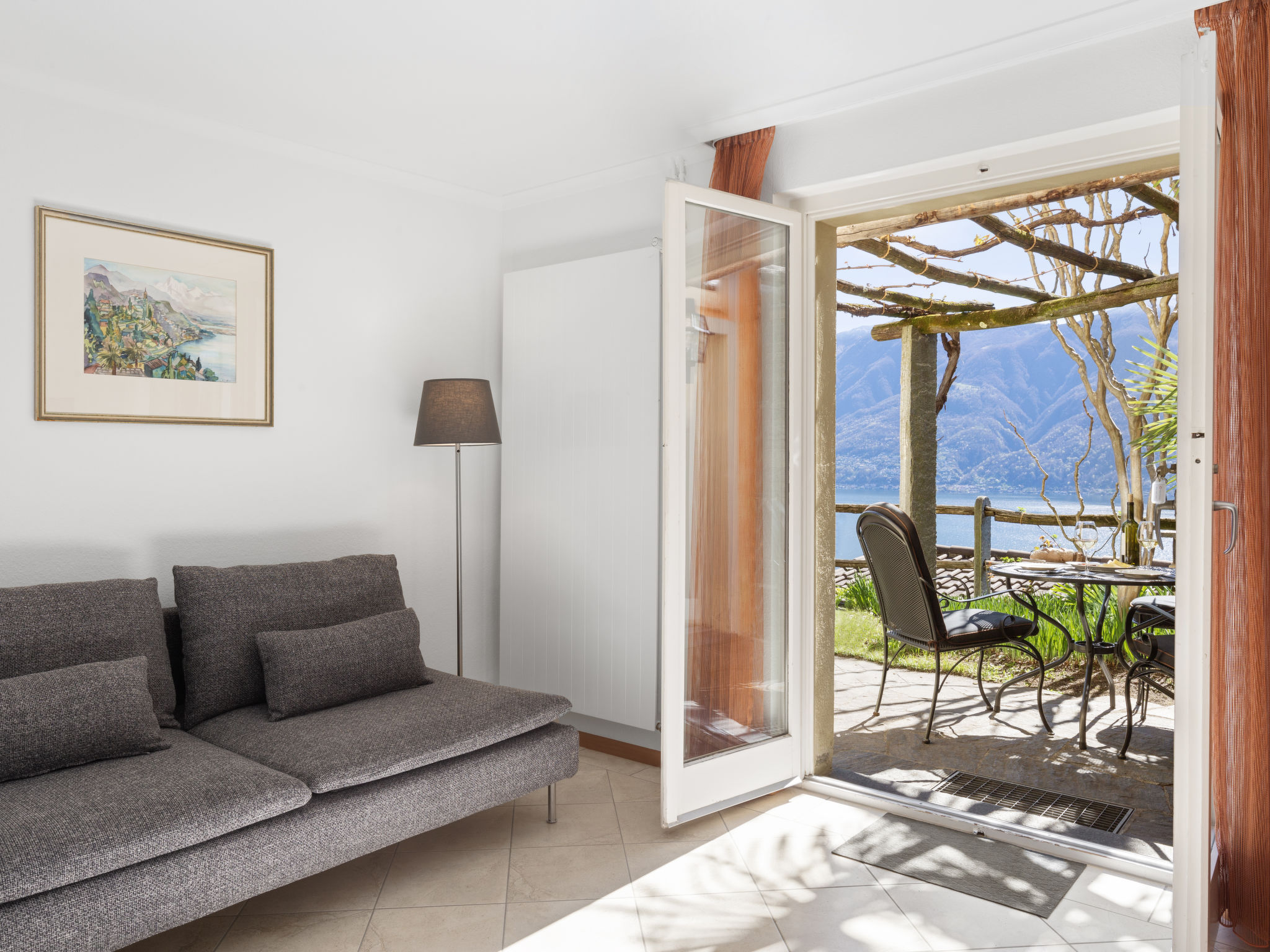 "Vista Isole di Brissago", apt. di 3 locali 58 m2, piano interrato. Spazioso e luminoso, in parte restaurato nel 2023, arredamento confortevole e accogliente: soggiorno/sala da pranzo con tavolo da pranzo, TV (via cavo) e tv con canali internazionali (schermo piatto). Uscita sul giardino, verso il patio. 1 camera matrimoniale con 1 letto doppio (2 x 100 cm, lunghezza 200 cm). Uscita sul giardino. 1 camera con 1 letto doppio (2 x 80 cm, lunghezza 200 cm). Cucina aperta (forno, lavastoviglie, 4 piastre cottura in vetroceramica, tostapane, bollitore elettrico, congelatore, macchina da caffè elettrica, capsule per la macchina da caffè (Nespresso) extra, set per raclette). Doccia/WC. Riscaldamento. Patio in parte coperto. Mobili da terrazza, sedie a sdraio (2). Magnifica vista panoramica sul lago, sulle montagne e sul paesaggio. A disposizione: ferro da stiro, seggiolone, lettino per bimbi fino 2 anni (extra), asciugacapelli. Internet (wifi, gratis). Parcheggio nr. 3. Prego notare: appartamento per non fumatori. Massimo 1 animale/cane consentito. Ingresso privato. NL-00006024