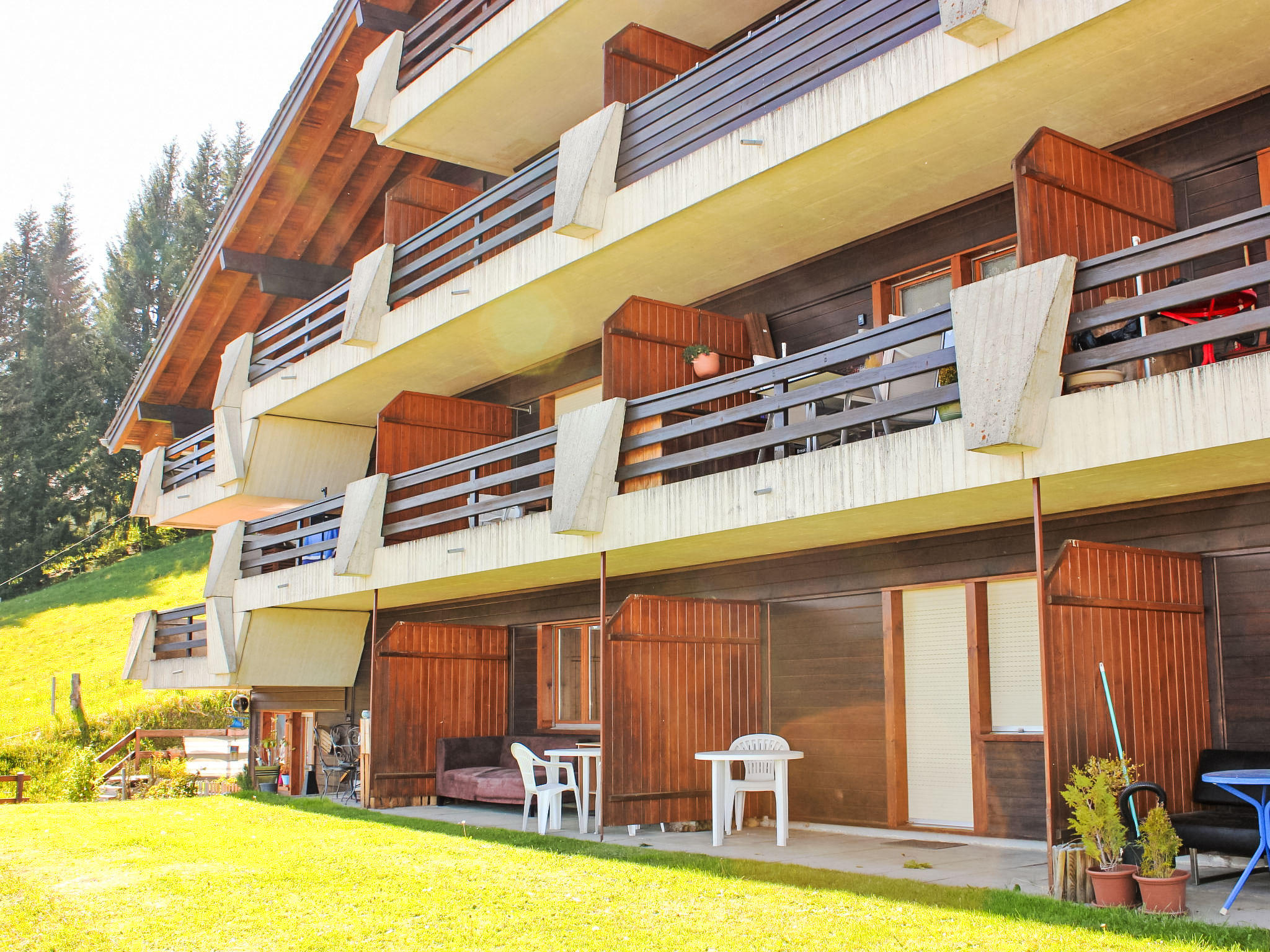 Monolocale 25 m2, al pianterreno, esposizione sud. Arredamento funzionale: soggiorno/camera con 1 divano letto (150 cm, lunghezza 190 cm), camino (solo con funzione decorativa), tavolo da pranzo. Uscita verso il patio. Angolo cottura (4 punti cottura, forno, bollitore elettrico, forno a microonde, set per fondue (formaggio)). Vasca/WC. Riscaldamento. Esposizione sud, piccolo patio. Mobili da terrazza. Bella vista sulle montagne e sulla valle. A disposizione: lettino per bimbi fino 2 anni (extra). Parcheggio.