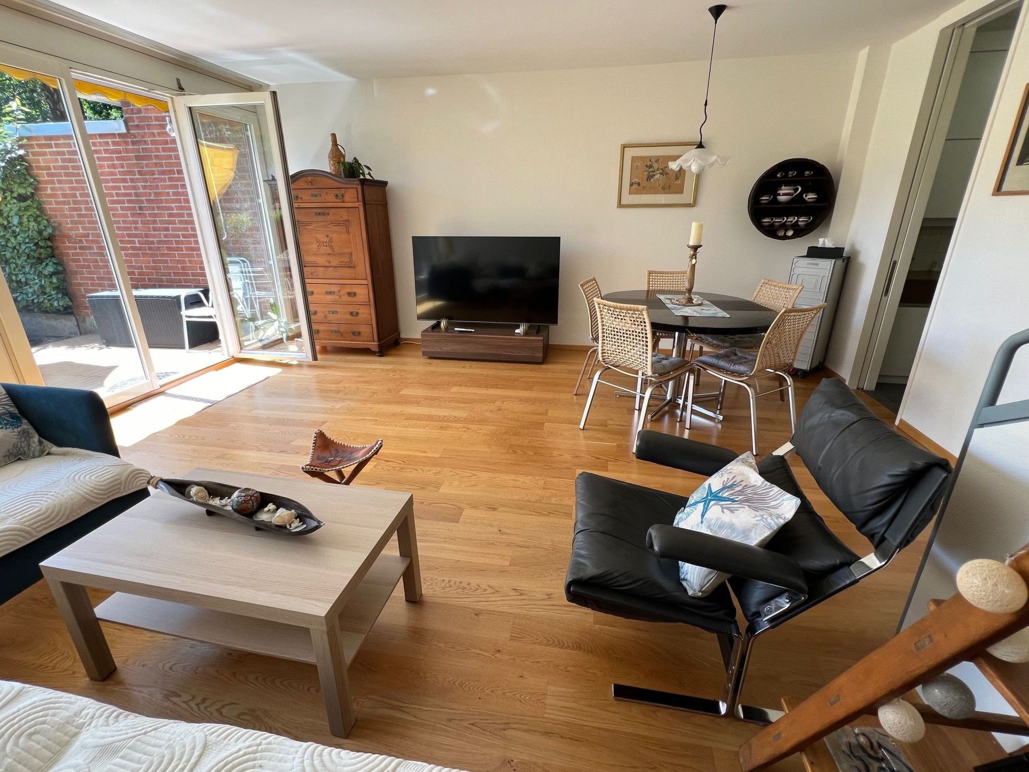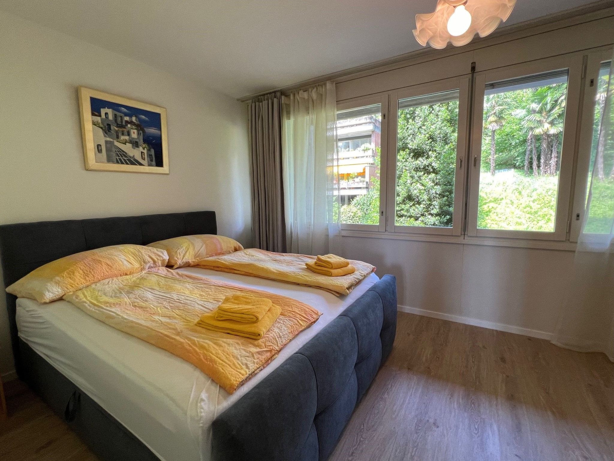 Discover our gem in Minusio - Navengana: the spacious 4.5-room duplex flat "Apt. 5" with charming garden seating area. Ideal for 4 people, this holiday flat offers the perfect base for an unforgettable time on Lake Maggiore. Let yourself be enchanted by the modern furnishings, the tranquillity and the breathtaking surroundings.The interior leaves nothing to be desired. With two bedrooms, equipped with comfortable double beds, and a further bedroom with two single beds, up to 4 guests can enjoy a relaxing night's sleep here. The bedrooms can be darkened for the comfort of your sleep. The cosy and modern living room with dining table and seating area, TV and WLAN forms the heart of the flat. A well-equipped kitchen with dishwasher, kettle and Nespresso coffee machine is at your disposal, as well as a modern bathroom with rain shower and WC, plus a separate guest WC. The entire flat benefits from pleasant underfloor heating.Outside, you will find an idyllic garden with a seating area for communal use and a large outdoor swimming pool with sunbathing lawn, which invites you to swim and sunbathe in the warmer months. The outdoor area is ideal for relaxing and enjoying time together outdoors. Please note: The pool is not accessible during the autumn/winter season.The area surrounding the holiday flat offers a wide range of opportunities to explore the region's nature and culture. A picturesque footpath along a small stream takes you directly to the shores of Lake Maggiore, which can be reached on foot in around 10 minutes without crossing a road. The shore and the nearby beach are ideal for relaxing days by the water. With the lake and numerous excursion destinations in the immediate vicinity, nothing stands in the way of a varied holiday.This holiday flat is a first-class choice for anyone looking for a break in a stylish ambience without wanting to compromise on comfort and proximity to the water. Whether for quiet days of relaxation or as a starting point for discovery tours - here you will find the perfect setting for your stay. Book now and spend unforgettable days in Minusio - Navengana: Apt. 5. NL-00009639