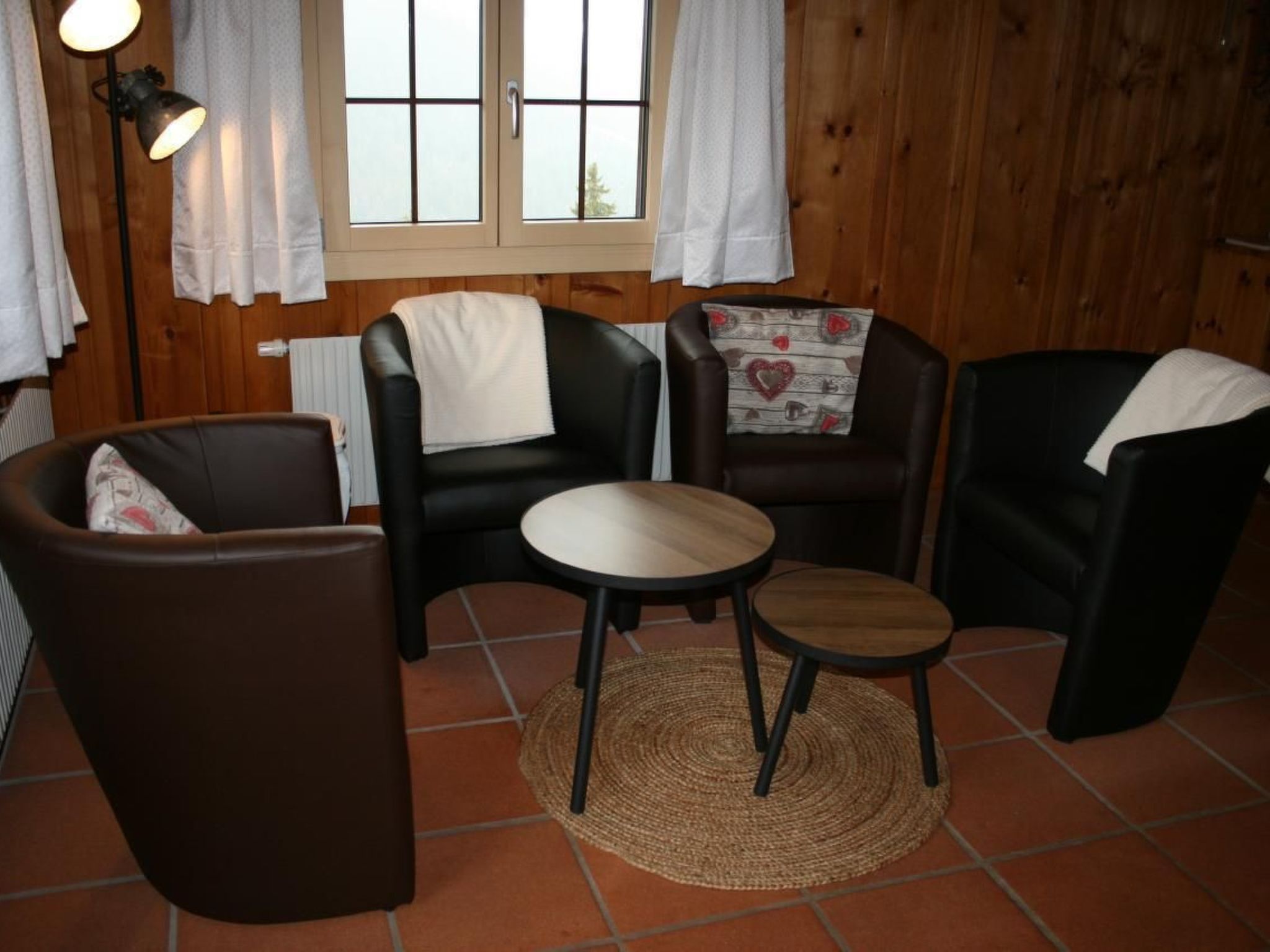 Outside, an outdoor seating area with a fireplace invites you to spend cosy evenings, and a small balcony offers the opportunity to enjoy the mountain air. The landscaped outdoor area is ideal for relaxing and keeping an eye on the impressive mountain scenery.