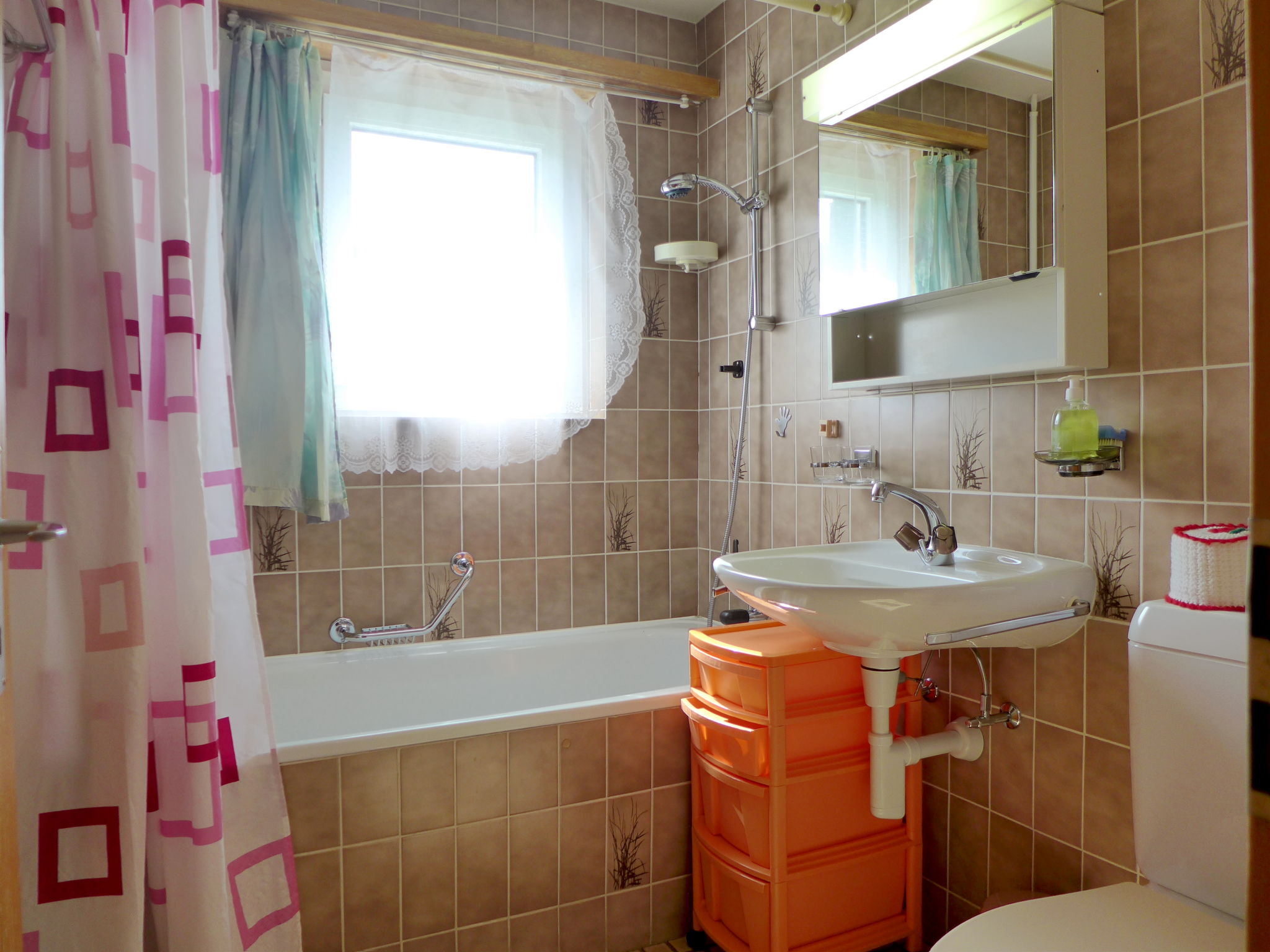 "Saskia", apt. di 3 locali 76 m2, piano rialzato. Arredamento rustico e accogliente: soggiorno/sala da pranzo aperto con camino (solo con funzione decorativa), angolo pranzo e TV (satellite) (schermo piatto), radio e DVD. Uscita sul balcone. 1 camera con 1 letto doppio (2 x 90 cm, lunghezza 200 cm). 1 camera con 2 letti. Cucina aperta (forno, 4 piastre cottura in vetroceramica, tostapane, bollitore elettrico, macchina da caffè elettrica, capsule per la macchina da caffè (Nespresso) extra, set per raclette, set per fondue (formaggio)). Vasca/WC, WC separato. Balcone 20 m2. Mobili da balcone, sedie a sdraio. Bella vista sulle montagne, sulla valle e sul paesaggio. A disposizione: asciugacapelli. Internet (wifi, gratis). Garage nr. B2. Prego notare: adatto alle famiglie. Appartamento per non fumatori. Massimo 1 animale/cane consentito.