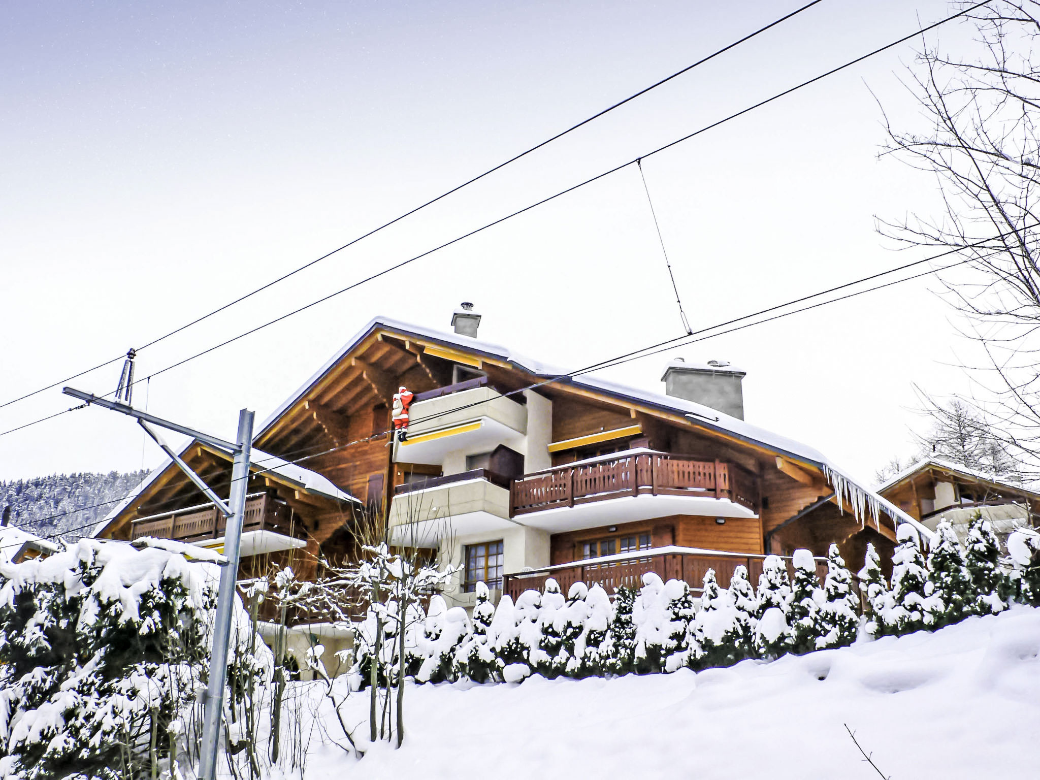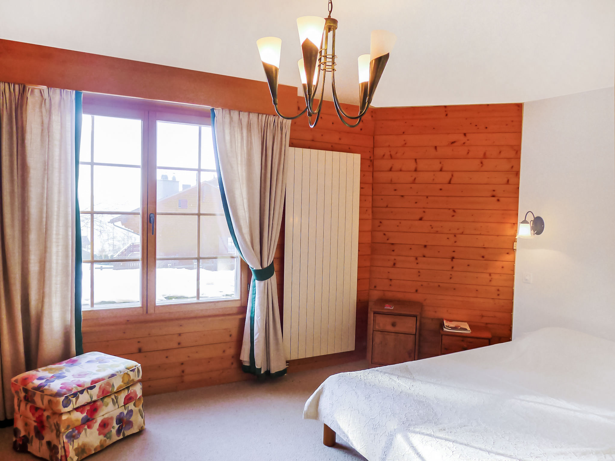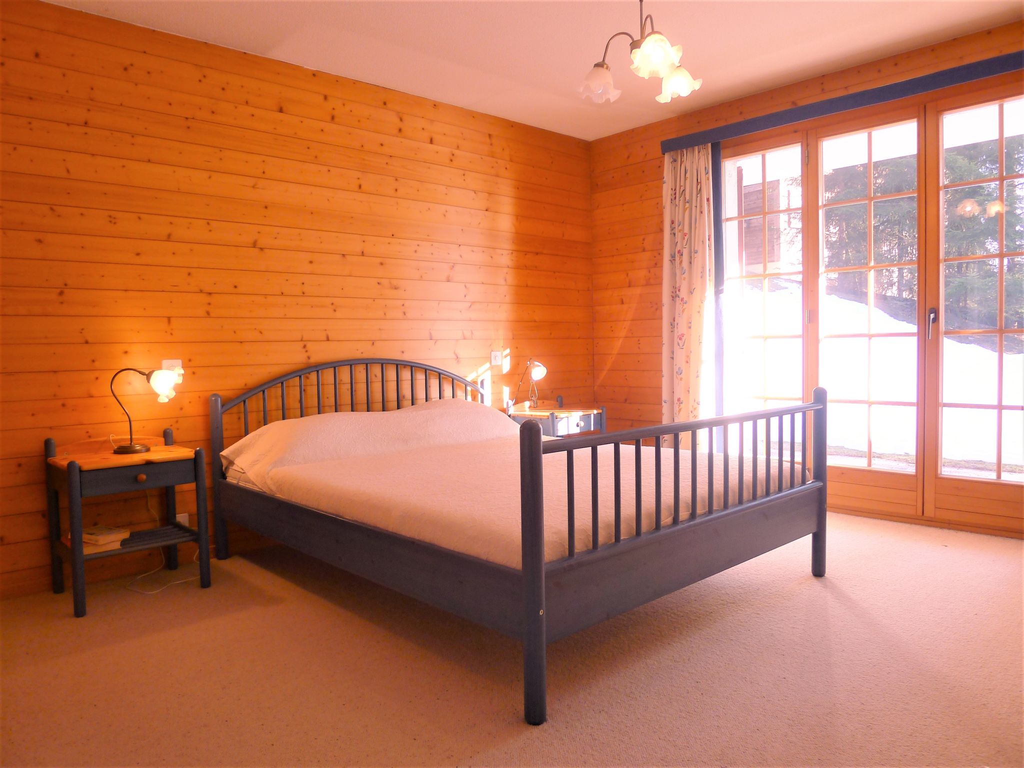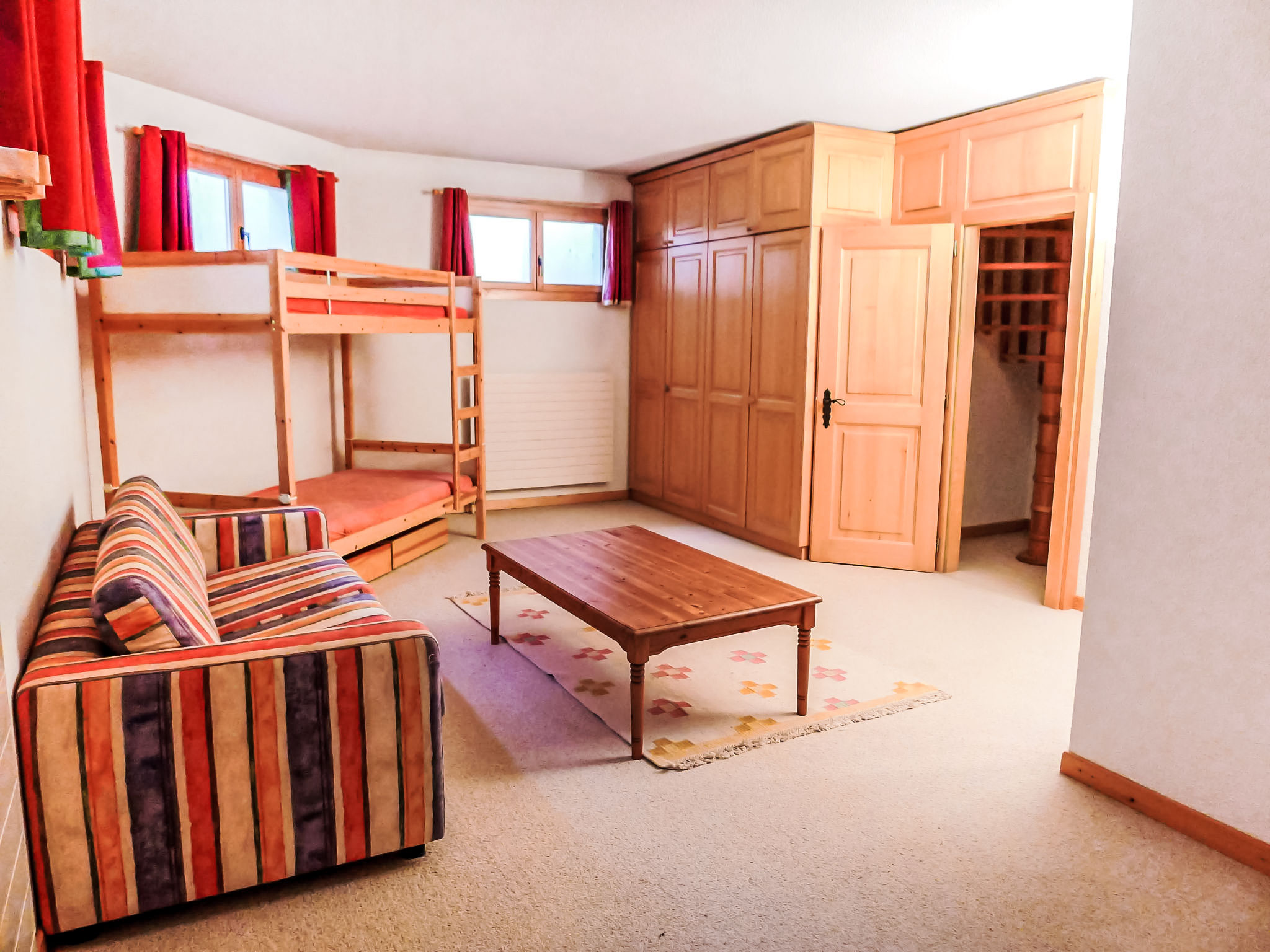 "Le Miclivier B2", appartamento su due livelli 5 locali 125 m2, al pianterreno. Spazioso e luminoso, arredamento confortevole: soggiorno/sala da pranzo con camino, tavolo da pranzo, TV, impianto stereo e DVD. Uscita sul giardino. 1 camera con 1 letto alla francese (150 cm). Uscita sul giardino. 1 camera con 2 letti (90 cm). 1 camera con 1 letto alla francese (160 cm), vasca/WC. Cucina aperta (forno, lavastoviglie, 4 piastre cottura in vetroceramica, tostapane, bollitore elettrico, forno a microonde, congelatore, macchina da caffè elettrica, set per fondue (chinoise, formaggio)). WC separato, vasca o doccia. Piano inferiore: (scala a chiocciola) grande, 1 camera con 1 divano letto e 1 x 2 letti a castello (90 cm). Doccia/WC. Giardino, esposizione sud. Mobili da terrazza. Bella vista panoramica sulle montagne. A disposizione: ferro da stiro, asciugacapelli. Internet (wifi, gratis). Garage nr. 51.
