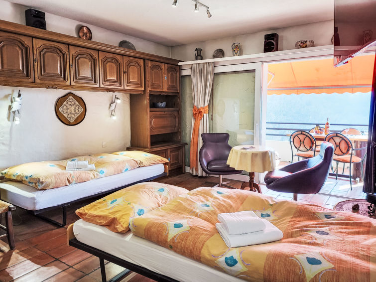 "Villaggio Sureggio C10A mit TicinoTicket", apt. di 2 locali 47 m2 al 1. piano, esposizione sud-est. Oggetto adatto a 4 adulti + 1 bambino. Luminoso, arredamento confortevole: soggiorno/camera aperto con porta scorrevole, finestra panoramica con 3 letti (90 cm, lunghezza 200 cm), camino, tavolo da pranzo, TV (via cavo) e schermo piatto. Uscita sul balcone, esposizione sud e esposizione est. 1 camera con 1 letto doppio (2 x 90 cm, lunghezza 200 cm). Cucina aperta (forno, 4 piastre cottura in vetroceramica, tostapane, bollitore elettrico, forno a microonde, congelatore, macchina da caffè elettrica, capsule per la macchina da caffè (Nespresso) extra, set per raclette, set per fondue (chinoise)) con tavolo da pranzo. Uscita sul balcone. Doccia/WC. Riscaldamento. Piccolo balcone 6 m2, esposizione sud. Mobili da balcone. Magnifica vista panoramica sulle montagne e sulla località. A disposizione: Internet (wifi). Parcheggio nr. 04 (coperto). Prego notare: adatto alle famiglie. Appartamento per non fumatori. Massimo 1 animale/cane di piccola taglia consentito. Ingresso privato. NL-00012002