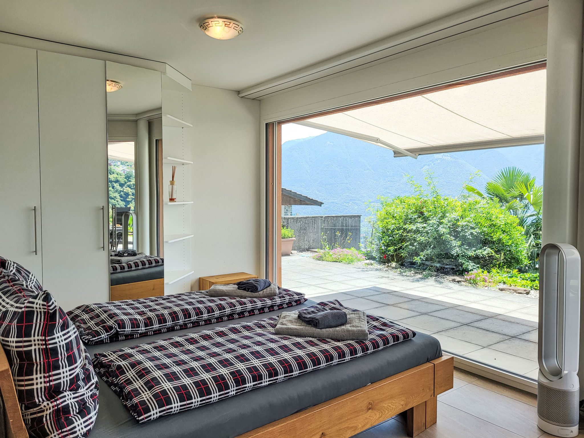 "Residenza Solaria Endless View", apt. di 3 locali al pianterreno. Oggetto adatto a 2 adulti + 2 bambini. Spazioso e luminoso, arredamento confortevole e moderno: soggiorno/sala da pranzo aperto con finestra panoramica con TV e tv con canali internazionali. Uscita sulla terrazza. 1 camera matrimoniale con finestra panoramica con 1 letto doppio (2 x 90 cm, lunghezza 200 cm). Uscita sulla terrazza. 1 camera matrimoniale con 2 letti (90 cm, lunghezza 200 cm). Cucina aperta (forno, lavastoviglie, 4 piastre cottura in vetroceramica, tostapane, bollitore elettrico, macchina da caffè elettrica, capsule per la macchina da caffè (Nespresso) extra). Vasca/doccia/WC. Riscaldamento a pavimento. Pavimenti in pietra. Grande patio. Mobili da terrazza, posto a sedere. Magnifica vista panoramica sul lago, sulle montagne e sul paesaggio. A disposizione: lavatrice, asciugatrice, asciugacapelli. Internet (wifi, gratis). Parcheggio nr. Interhome vicino alla casa. Prego notare: adatto alle famiglie. Appartamento per non fumatori. Massimo 1 animale/cane consentito. NL-00012460