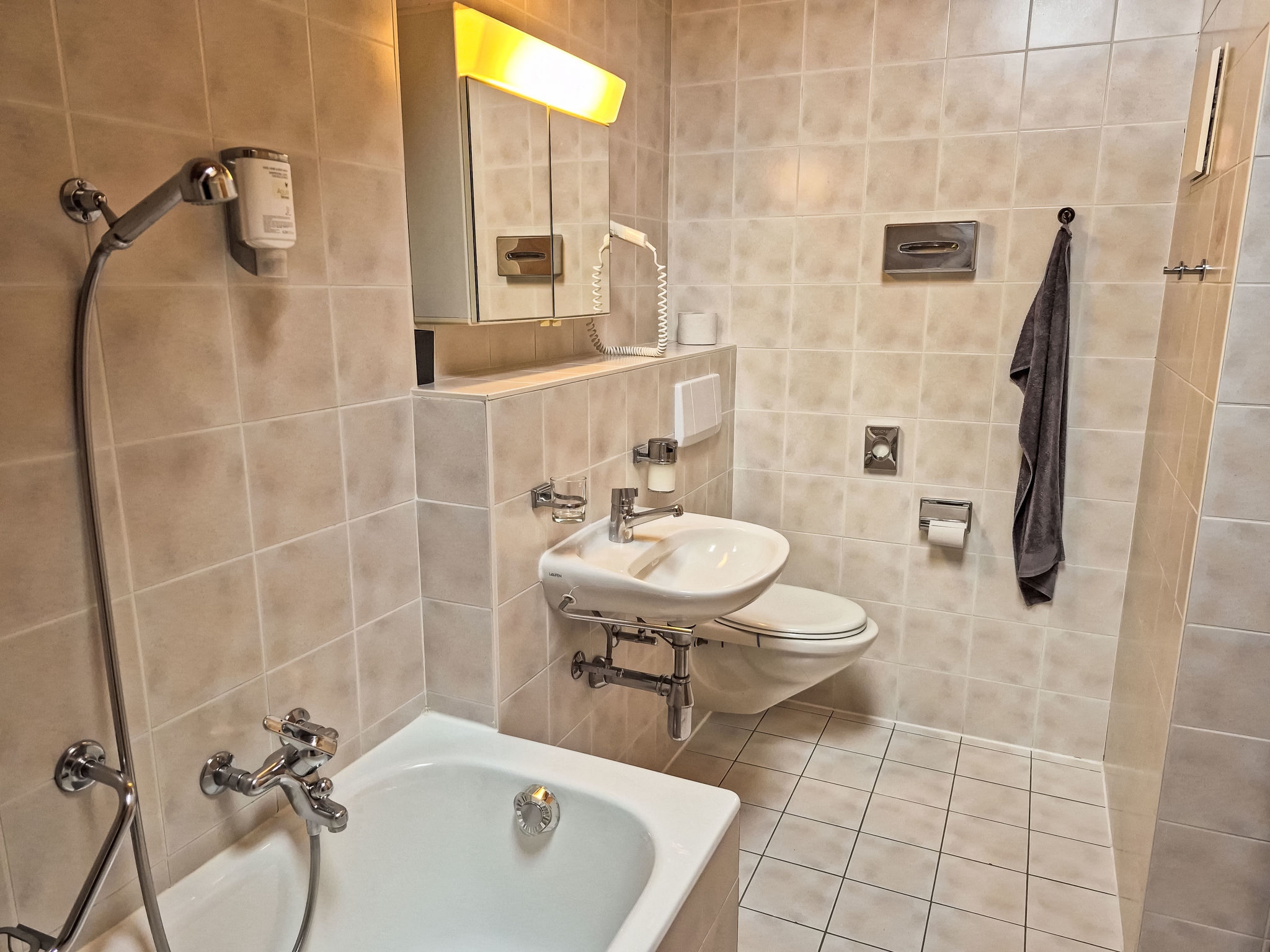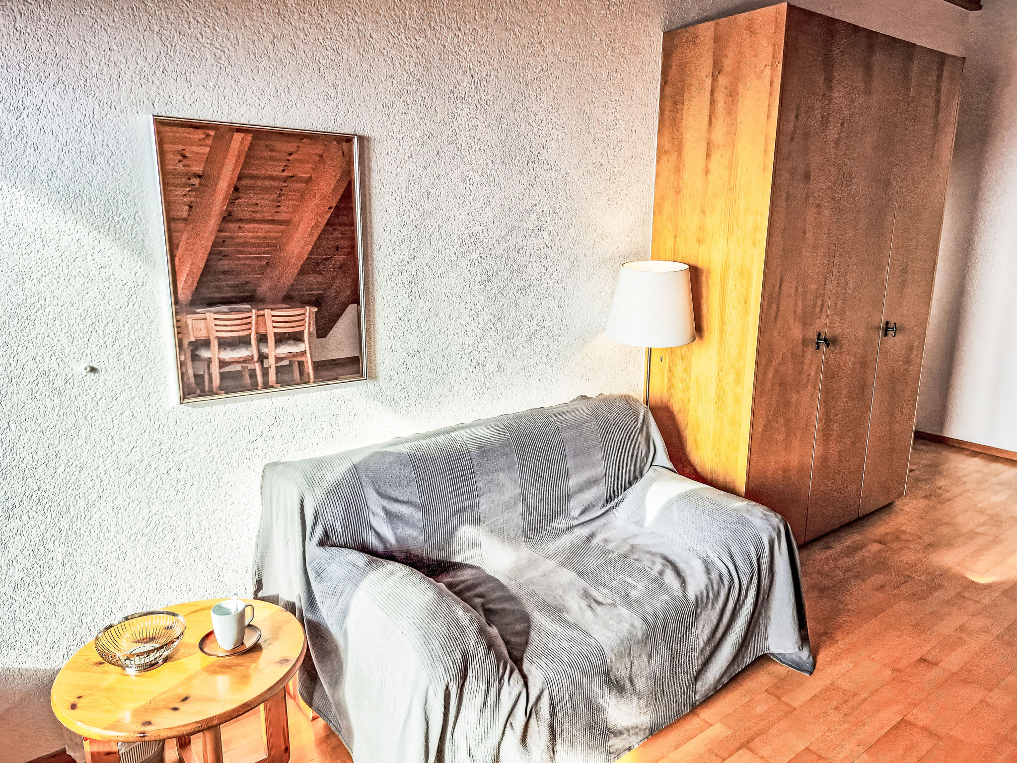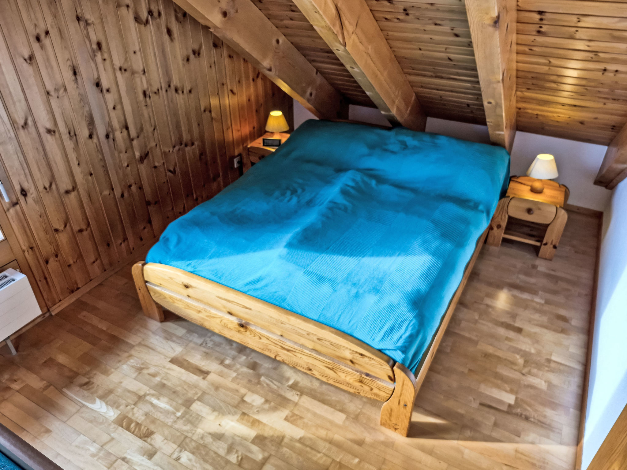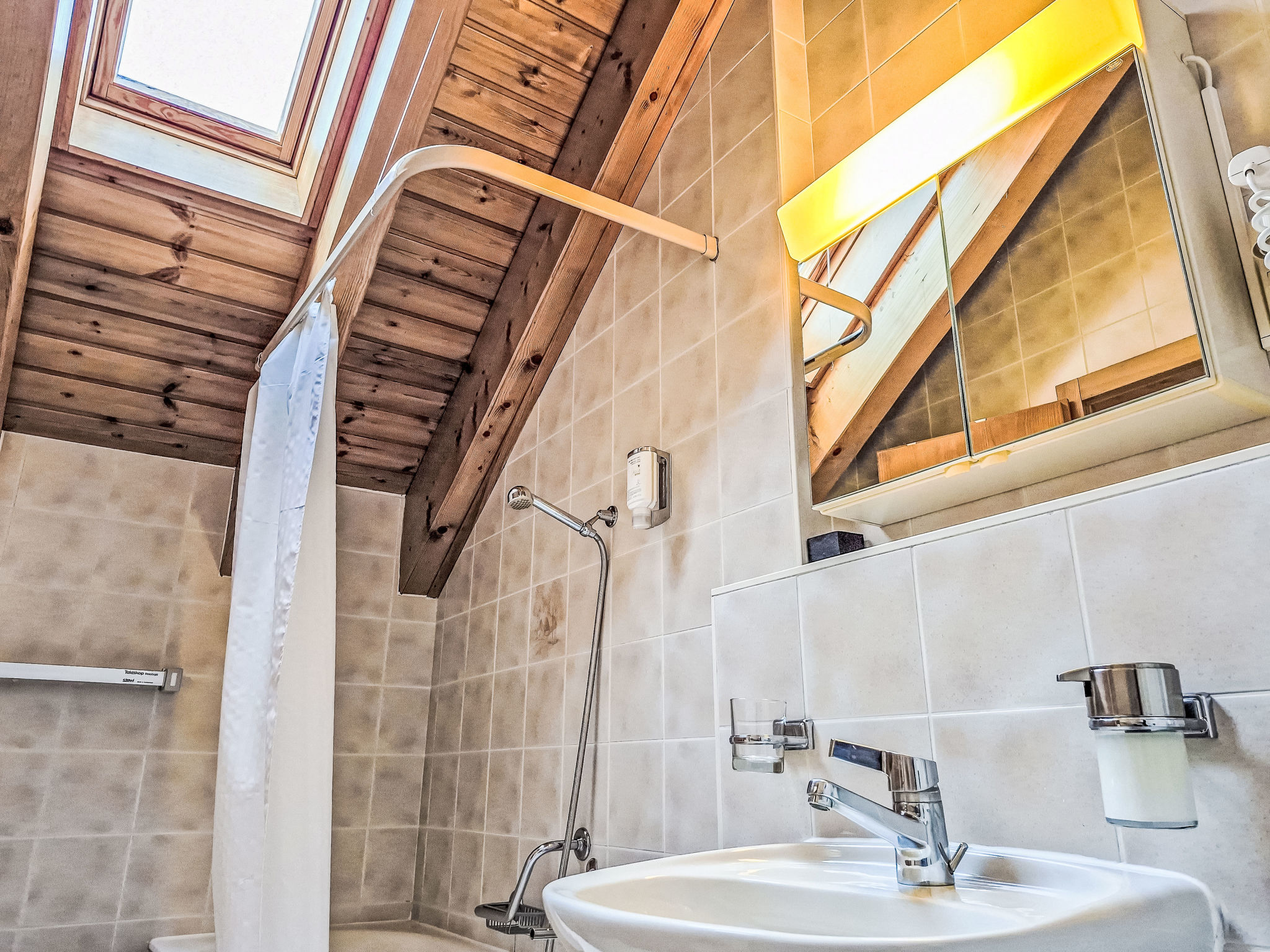 "Les Thermalies 202", apt. di 3 locali 79 m2 su 2 piani al 2. piano, esposizione sud. Luminoso, in parte restaurato nel 2025, arredamento confortevole e di buon gusto: soggiorno/sala da pranzo con TV (via cavo). Uscita sul balcone. Cucina aperta (forno, lavastoviglie, 4 piastre cottura in vetroceramica, tostapane, bollitore elettrico, macchina da caffè elettrica, capsule per la macchina da caffè (Nespresso) extra, set per raclette, set per fondue (chinoise, formaggio)). WC separato. Piano superiore: 1 camera mansardata grande con 1 letto alla francese (180 cm, lunghezza 200 cm). Uscita sul balcone. 1 camera mansardata con 1 x 2 letti a castello (90 cm, lunghezza 200 cm), 1 letto alla francese (160 cm, lunghezza 200 cm). Uscita sul balcone. Vasca/WC. 2 balconi 15 m2, esposizione sud-ovest. Mobili da balcone, sedie a sdraio (6), posto a sedere. Magnifica vista sulle montagne, sulla piscina e sul bosco. A disposizione: ferro da stiro, seggiolone, lettino per bimbi, asciugacapelli. Internet (wifi, gratis). Garage nr. 202 (1 Auto), altezza 215 cm, larghezza 250 cm. Prego notare: adatto alle famiglie. Frigorifero senza congelatore, appartamento per non fumatori.