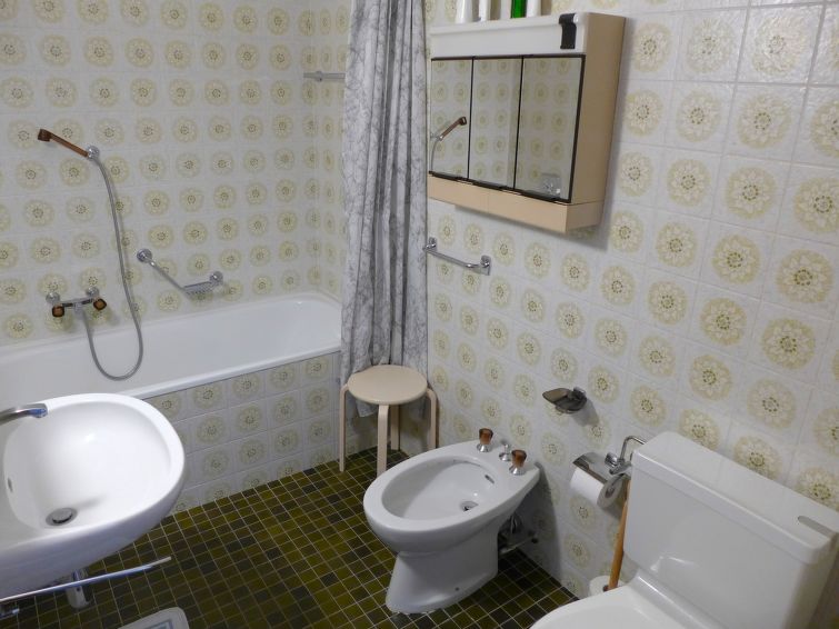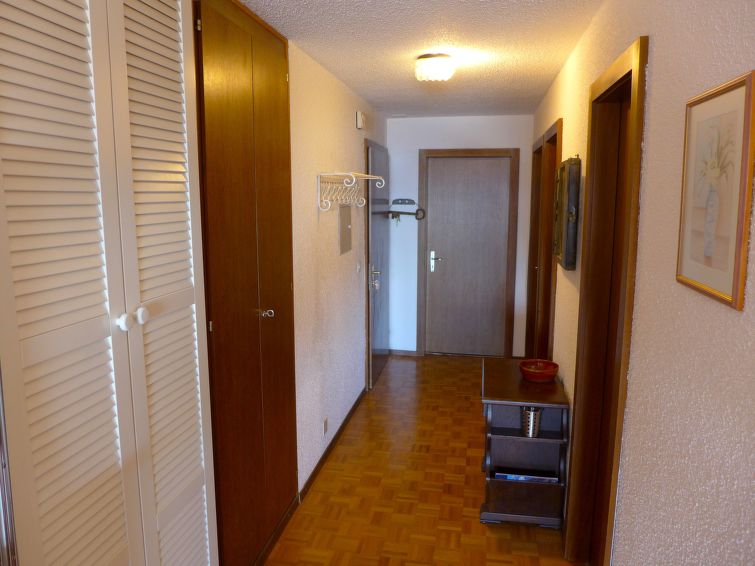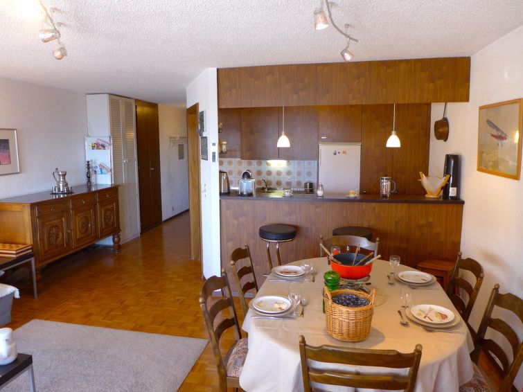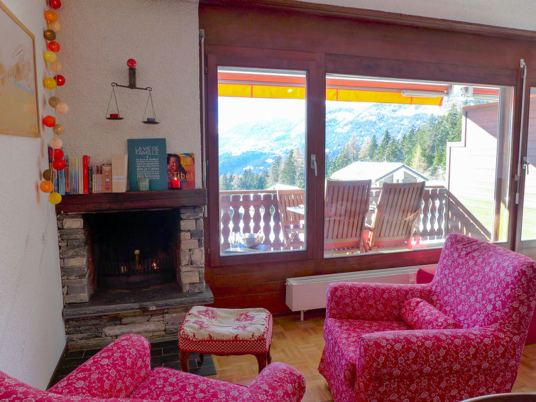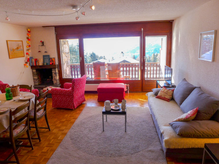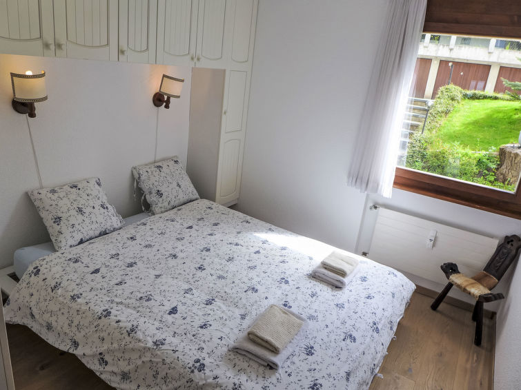 "Robin des Bois B 15", apt. di 3 locali 75 m2 al 1. piano. Arredamento gradevole e accogliente: soggiorno/sala da pranzo con 1 divano letto (140 cm, lunghezza 190 cm), TV (via cavo), schermo piatto e DVD. Uscita sul balcone, esposizione sud-ovest. 1 camera con 1 letto alla francese (160 cm, lunghezza 200 cm). 1 camera con 2 letti (90 cm, lunghezza 200 cm). Cucina aperta (3 punti cottura, forno, lavastoviglie, tostapane, bollitore elettrico, macchina da caffè elettrica, capsule per la macchina da caffè (Nespresso) extra, set per raclette, set per fondue (chinoise, formaggio)) con bancone. Vasca/bidet/WC, doccia/WC. Balcone 8 m2. Mobili da balcone. Splendida vista sulle montagne, sul paesaggio e sul bosco. A disposizione: asciugacapelli. Internet (wifi, gratis). Garage nr. 15, altezza 198 cm, larghezza 235 cm. Prego notare: appartamento per non fumatori.