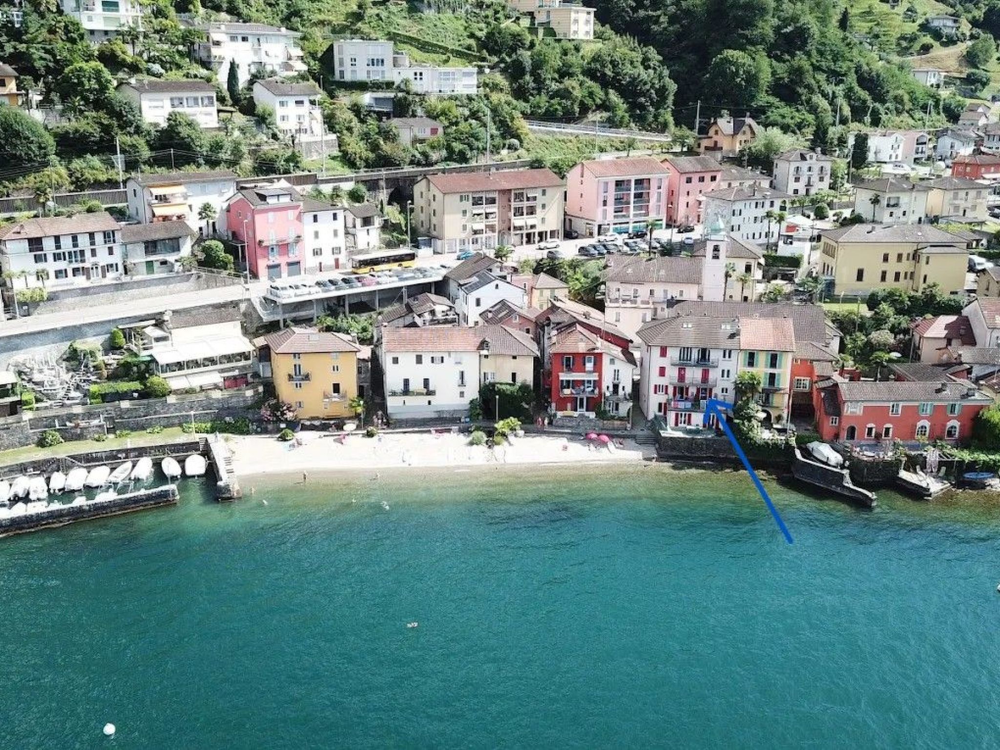 This flat is located on Lake Maggiore in Gerra Gambarogno.Gerra is located about 3 km north of the border to Italy, visavis Ascona.The flat is on the first floor with lake view. There is a pebble beach around the corner.The house is ring-fenced, but this is more than compensated for by the view of Lake Maggiore and the foothills of the Alps.The flat has a new kitchen (2024), two bedrooms and is suitable for a maximum of 4 people.Parking spaces are available at the Badi or on the cantonal road. Case Giuseppe is located on a car-free street next to the church. NL-00003286