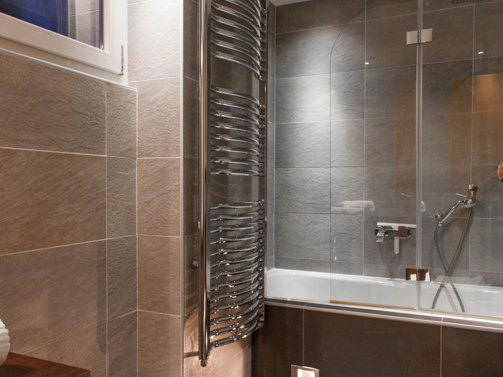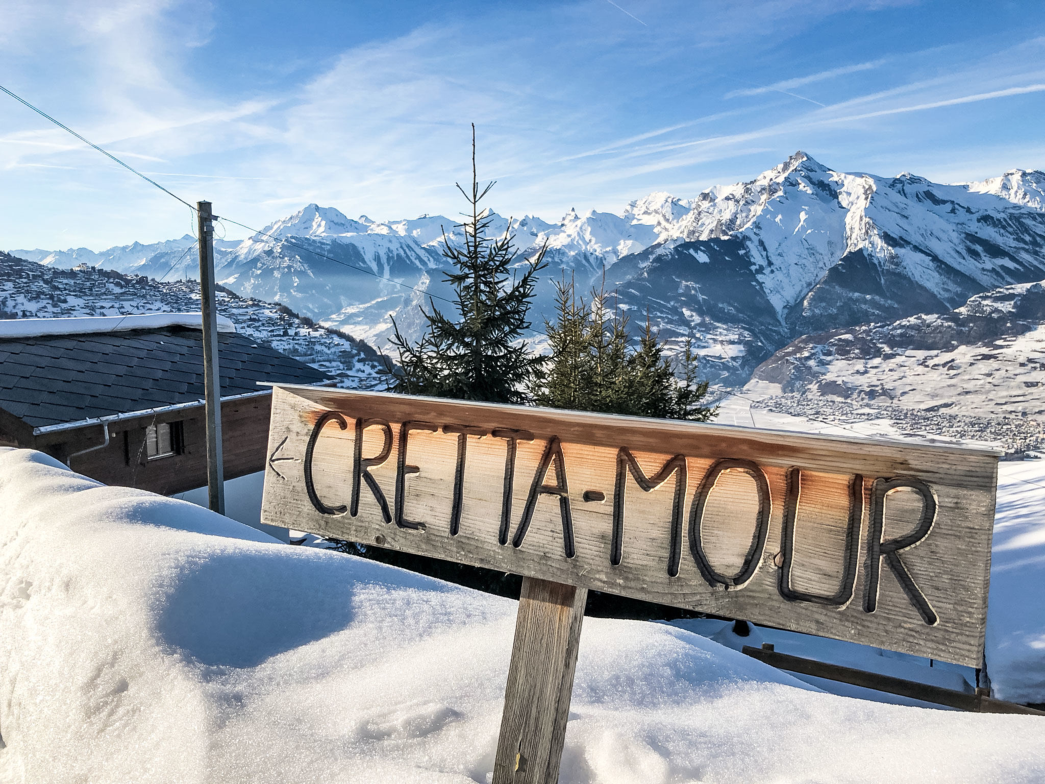 "Crettamour", chalet 5 locali 170 m2 su 3 piani. Arredamento confortevole e di buon gusto: ingresso. Soggiorno/sala da pranzo con camino, TV (via cavo) e DVD. Uscita sulla terrazza. Cucina aperta (forno, lavastoviglie, 4 piastre cottura in vetroceramica, tostapane, bollitore elettrico, forno a microonde, macchina da caffè elettrica, capsule per la macchina da caffè (Nespresso) extra, set per raclette, set per fondue (formaggio)). Doccia/WC. Riscaldamento. Piano inferiore: 1 camera con 2 letti (75 cm, lunghezza 190 cm). 1 camera con 1 letto alla francese (1 x 160 cm, lunghezza 200 cm). 1 camera con 2 letti (90 cm, lunghezza 190 cm). Vasca/WC. Piano superiore: 1 camera con 2 letti (90 cm, lunghezza 190 cm). Balcone, esposizione nord, grande terrazza, esposizione ovest. Mobili da terrazza, barbecue. Splendida vista sulle montagne e sulla valle. A disposizione: lavatrice, asciugatrice, seggiolone, lettino per bimbi fino 2 anni. Internet (wifi, gratis). Parcheggio (2 Auto) a 50 m. Prego notare: appartamento per non fumatori.