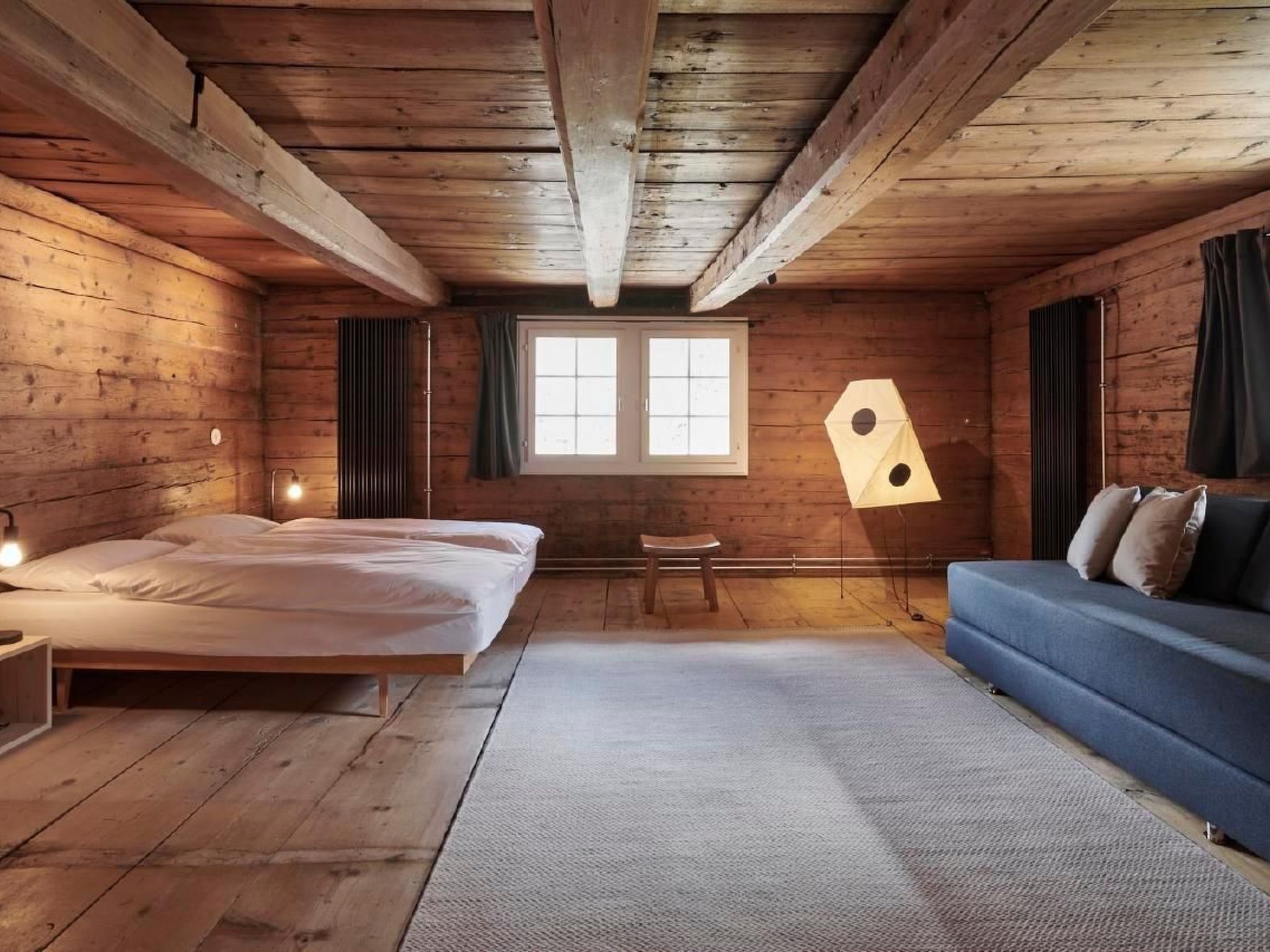 Vacation in architectural monuments combines heritage conservation and tourism. Historically valuable buildings are taken over, gently renovated and rented out as holiday flats. The model provides a double benefit: the monuments are given a new future and the holiday guests experience a stay in an exceptional building. The idea is being realised by the foundation Vacation in architectural monuments (FiB), which was founded in 2005 by the Swiss Heritage Society.Public transport: SBB train from Ziegelbrücke to Schwanden/Glarus Süd, change there and take the bus to Elm village (24 minutes), 3 minutes on foot to the Grosshaus.By car: The village of Elm lies in the Sernftal valley. Access to the Sernftal is only possible via Schwanden/Glarus Süd. From the motorway A3 Zurich-Sargans, exit Niederurnen, it is approx. 30km on a steadily ascending road to Elm.Parking: In the town hall car park 50m from the house (free of charge). For loading/unloading you can drive directly to the house and park there temporarily.Bicycles: Can be parked in the barn.Number of persons 4-6: The house offers space for four to six guests. (1 double room, 1 double room with additional sofa bed). Baby cot on request. The floors are made of wood and stone, so we recommend good slippers.Season: All year roundShort holidays: None, except Easter, Ascension and Whitsun.Garden: Garden with seating area and furniture.Heating: Central heating (heat pump), heat distribution via radiators in all rooms.Stove / fireplace: Stove and a wood-burning cooker in the kitchen.WLAN: Is available. Reception is not good in all rooms.Open: The house is open all year round.Pets: Are not allowed.Altitude: 977 metres above sea level.IMPORTANT ADDITIONThe large house is a listed building that has been renovated with great respect for the existing substance. The tenant is aware of this and treats the property with care. Although the technical equipment is modern, certain functional details do not meet current standards and are a potential source of danger. The tenant is aware of these circumstances. The owner, e-domizil and the foundation Vacation in architectural monuments disclaim any liability.Further information on the website of the Vacation in architectural monument foundation. 2907441