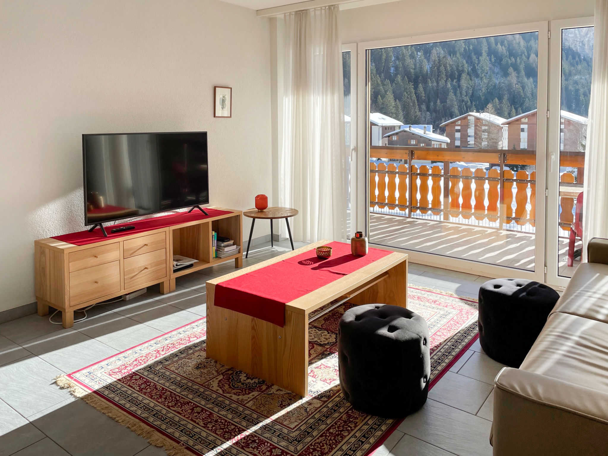 "Wohnung 13", apt. di 2 locali 49 m2 al 1. piano. Arredamento moderno e accogliente: soggiorno/sala da pranzo con 1 divano letto doppio e TV (via cavo) (schermo piatto). Uscita sul balcone. 1 camera matrimoniale. Uscita sul balcone. Cucina aperta (forno, lavastoviglie, 4 piastre cottura in vetroceramica, forno a microonde). Doccia/WC, WC separato. Balcone 18 m2. Mobili da balcone. Bella vista sulle montagne e sul paesaggio. A disposizione: Internet (wifi, gratis). Garage nr. 13. Prego notare: appartamento per non fumatori.