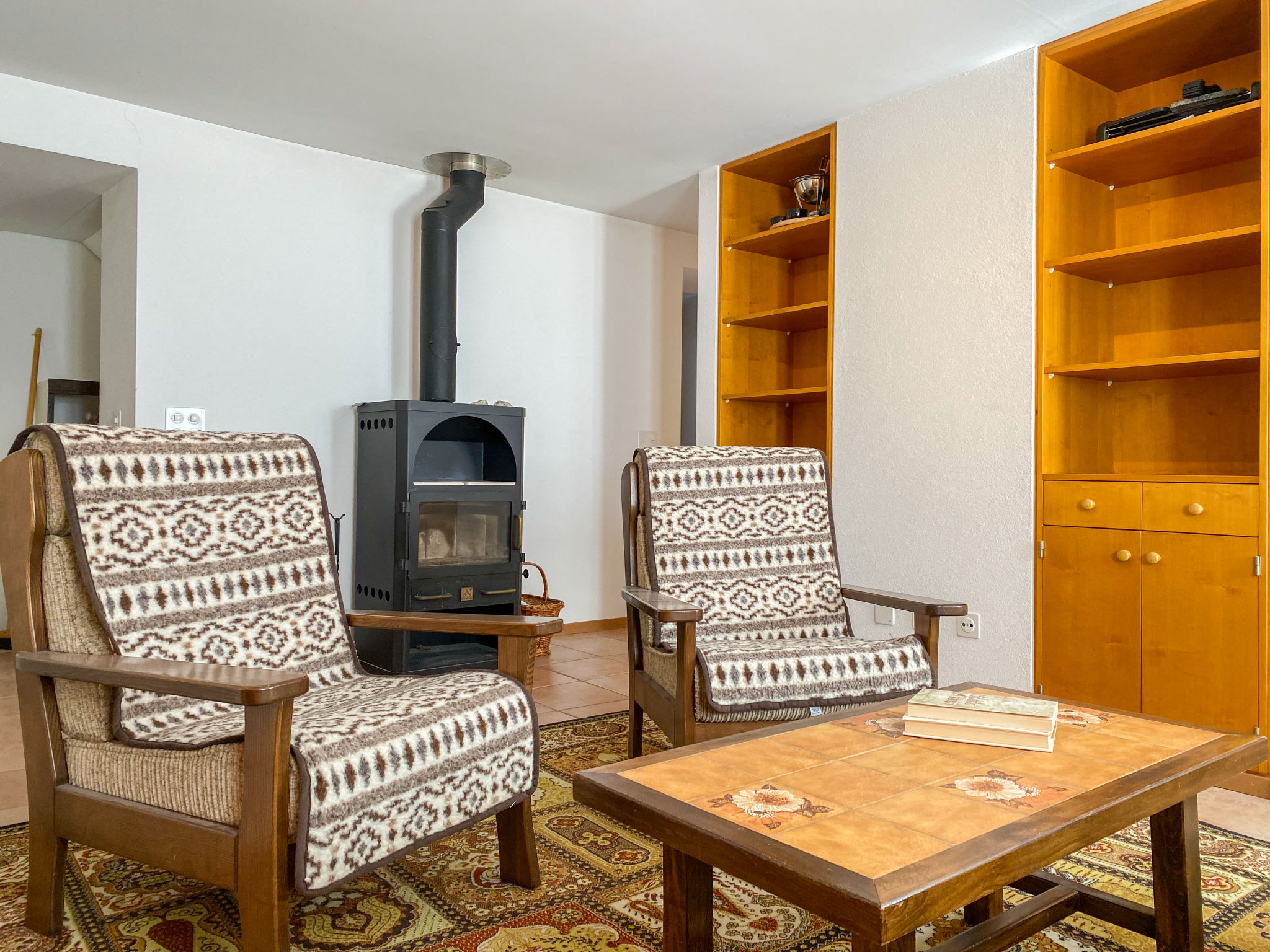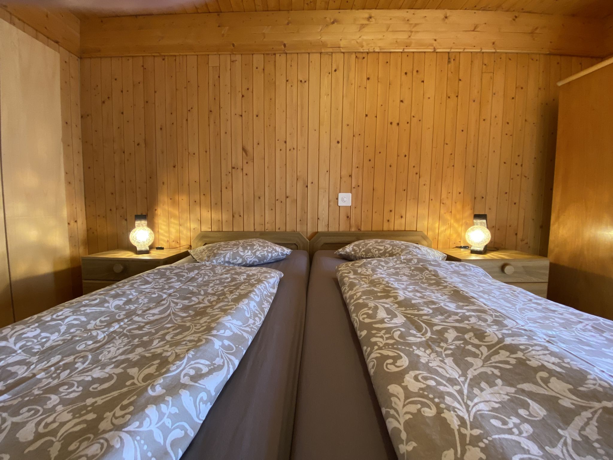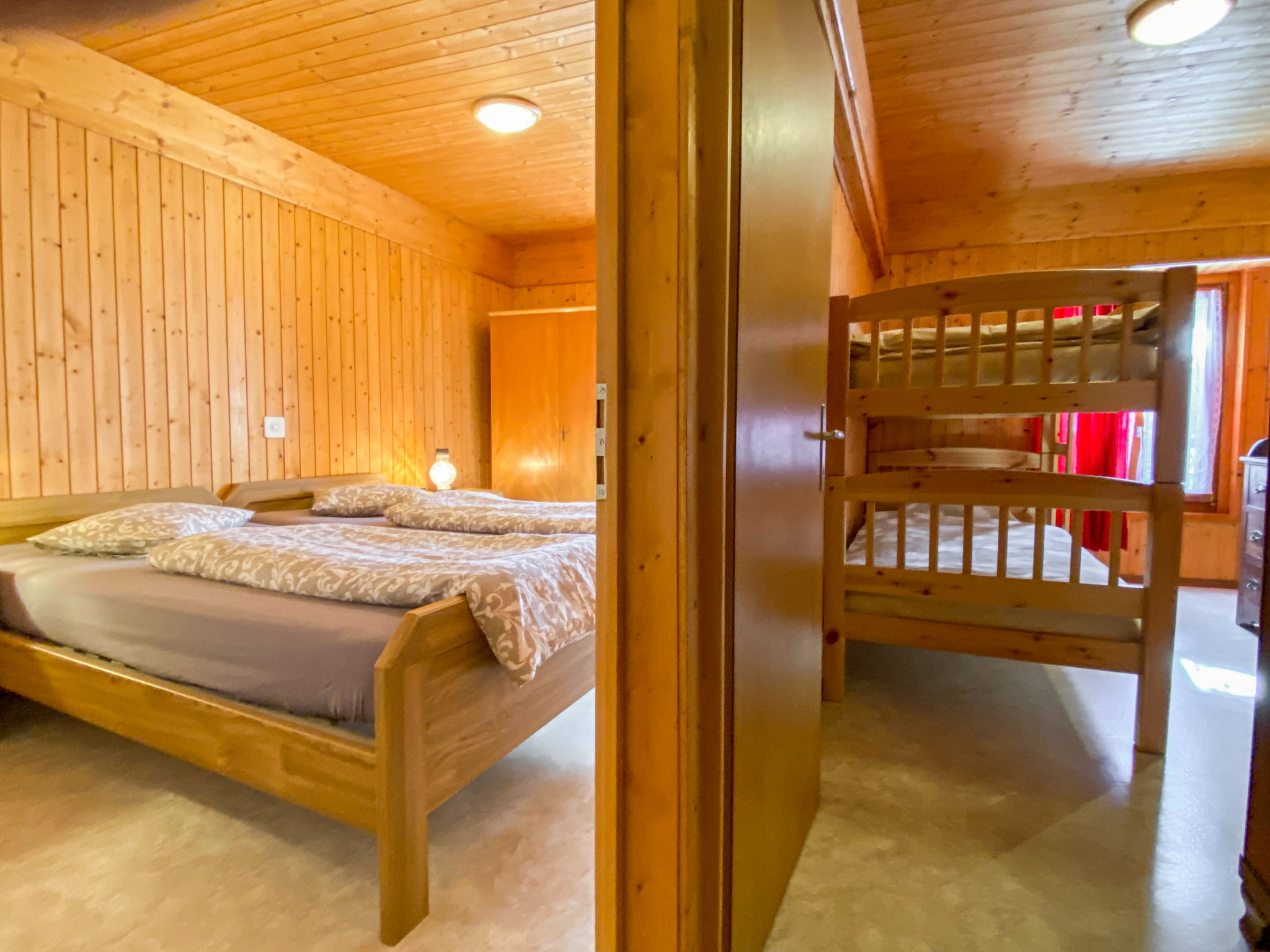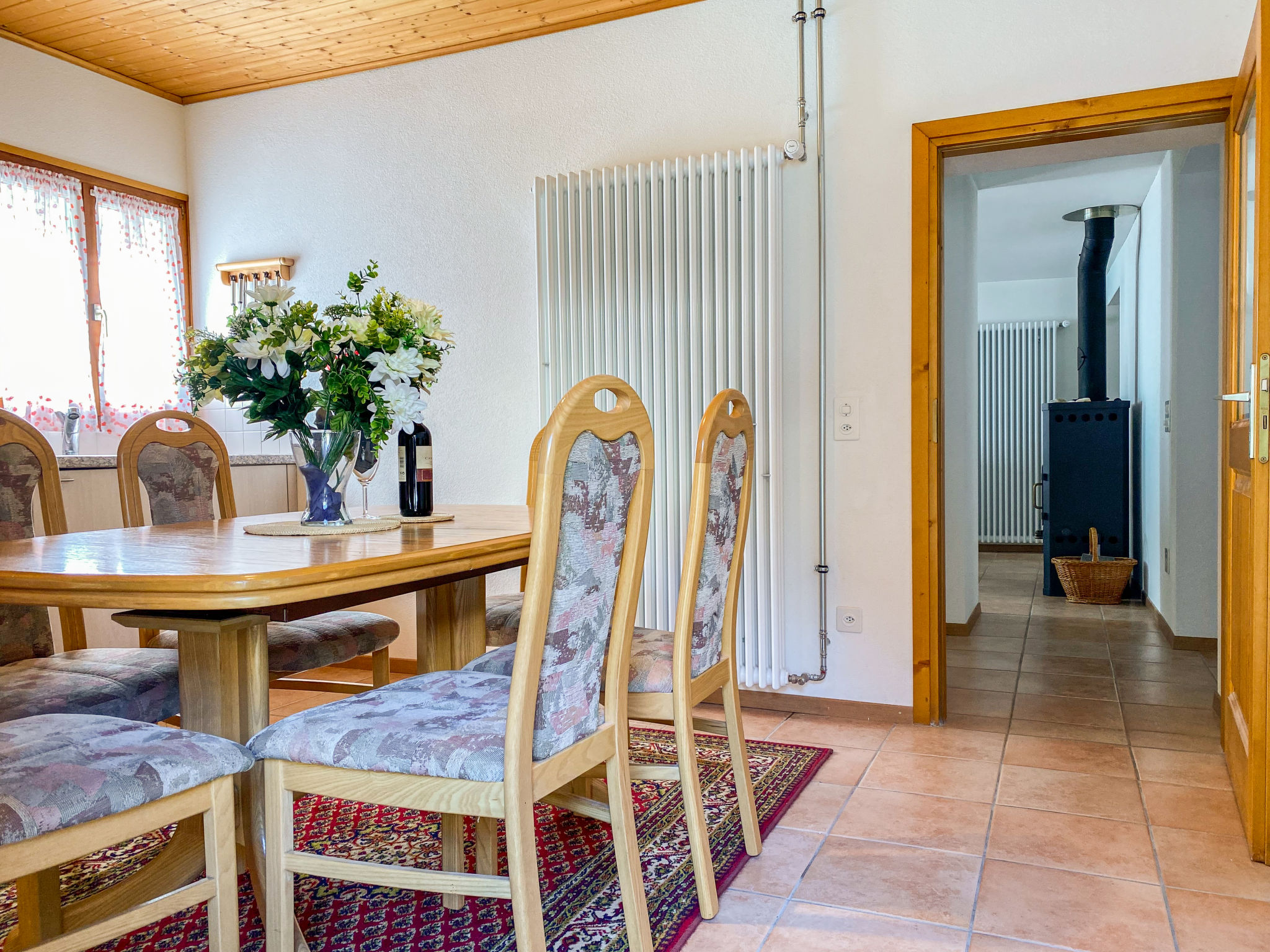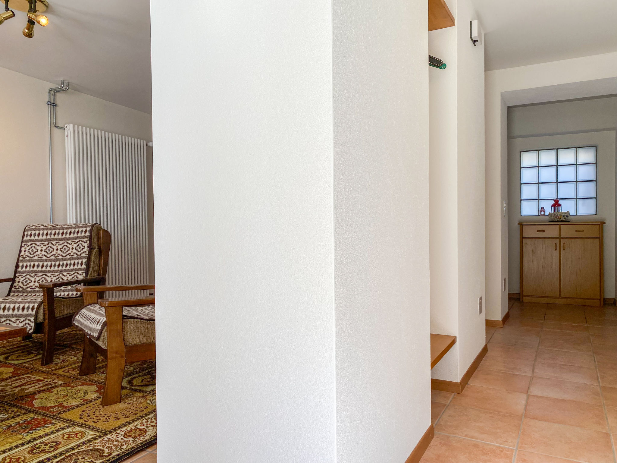 "Della Posta Cervo Giardino", apt. di 3 locali 70 m2. Spazioso, arredamento semplice e rustico: soggiorno con stufa svedese e TV (via cavo) (schermo piatto). Grande cucina abitabile (forno, 4 piastre cottura in vetroceramica, tostapane, bollitore elettrico, set per raclette, set per fondue (formaggio)) con tavolo da pranzo. Uscita sul giardino, verso il patio. Vasca/WC. Riscaldamento elettrico, boiler (200 litri). Piano superiore: 1 camera matrimoniale con 1 letto doppio (2 x 90 cm, lunghezza 200 cm). 1 camera con 1 x 2 letti a castello (90 cm, lunghezza 200 cm). Piccolo patio. Mobili da terrazza. Vista sul paesaggio e sulla località. A disposizione: seggiolone, lettino per bimbi fino 2 anni, asciugacapelli. Internet (wifi, gratis). Prego notare: appartamento per non fumatori. Massimo 1 animale/cane consentito.