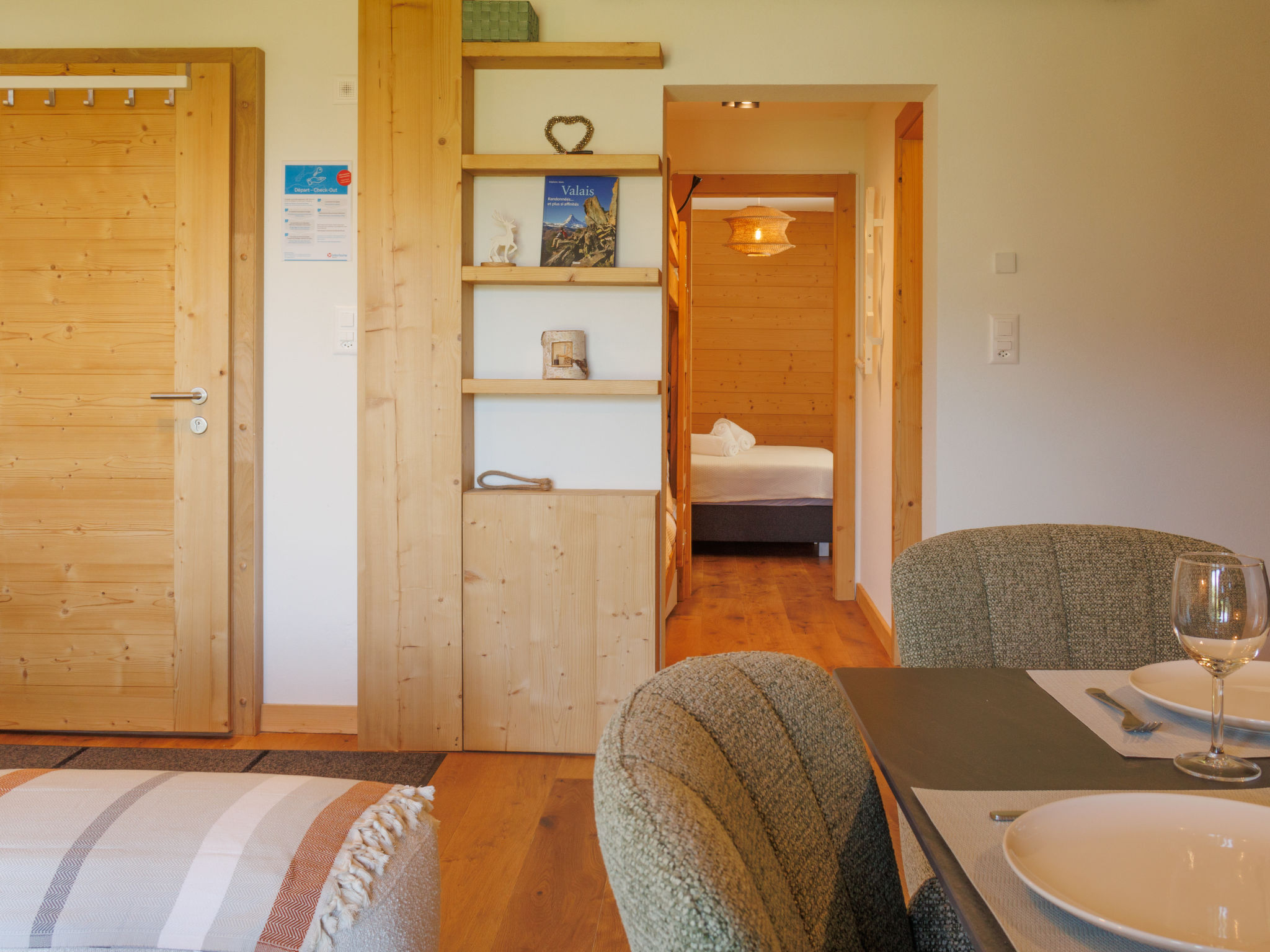 "Beauregard 1", apt. di 2 locali 46 m2, al pianterreno, esposizione est. Oggetto adatto a 2 adulti + 2 bambini. Completamente restaurato nel 2025, arredamento confortevole e gradevole: soggiorno/sala da pranzo con TV (via cavo). Uscita sulla terrazza, esposizione est. Angolo notte aperto con 1 x 2 letti a castello (90 cm, lunghezza 200 cm). 1 camera con 1 letto (160 cm, lunghezza 200 cm). Cucina aperta (forno, lavastoviglie, 4 piastre ad induzione, tostapane, bollitore elettrico, macchina da caffè elettrica, capsule per la macchina da caffè (Nespresso) extra, set per raclette, set per fondue (formaggio)). Doccia/WC. Riscaldamento a pavimento. Pavimenti in parquet. Terrazza, esposizione est. Mobili da terrazza. Bella vista sulle montagne e sulla valle. A disposizione: lavatrice, asciugatrice, asciugacapelli. Internet (wifi, gratis). Parcheggio (1 Auto). Prego notare: appartamento per non fumatori. Uno o più posti letto adibiti a zona notte si trovano in area aperta o di passaggio (come soppalco, corridoio, alcova e simili).
