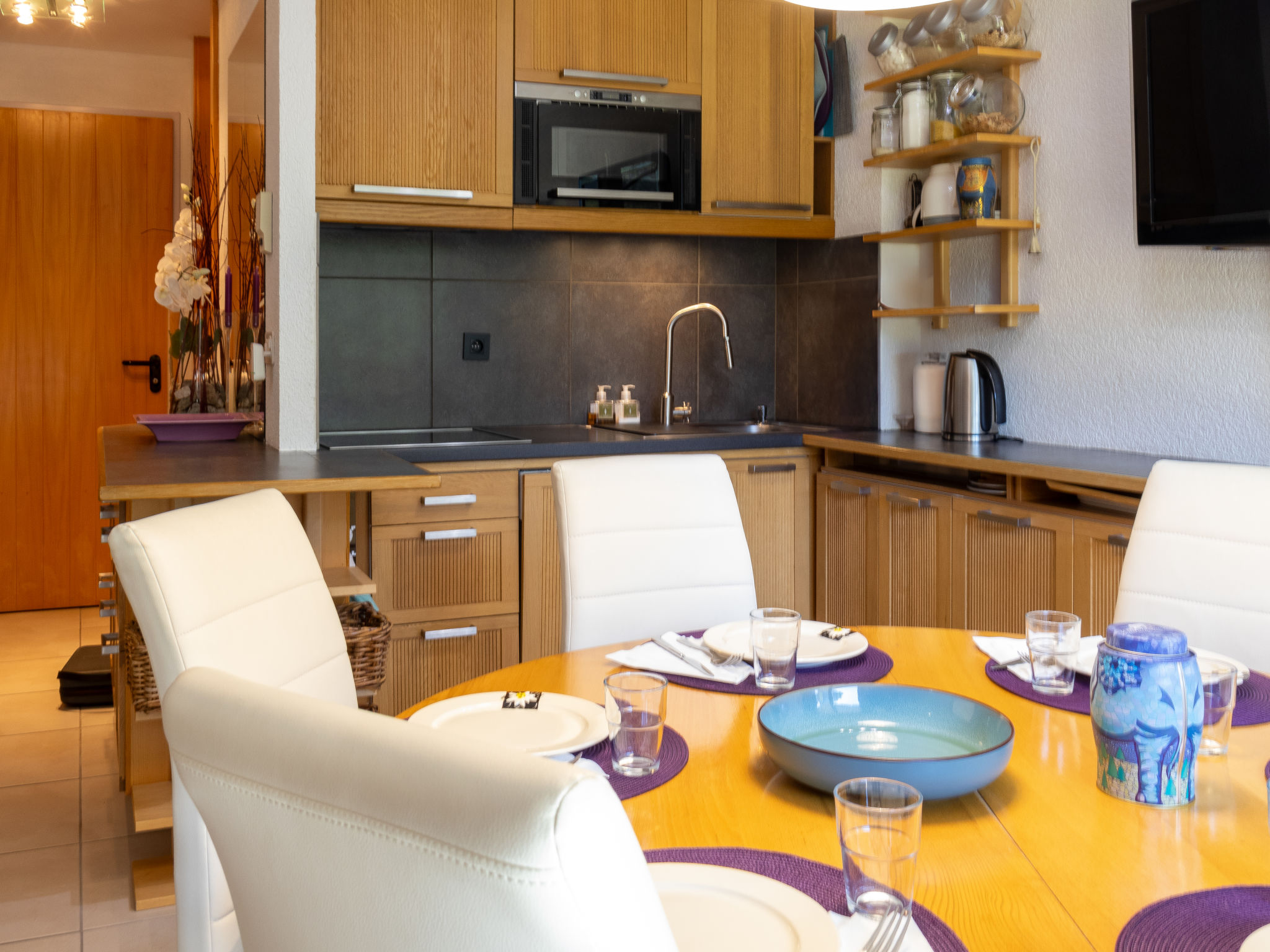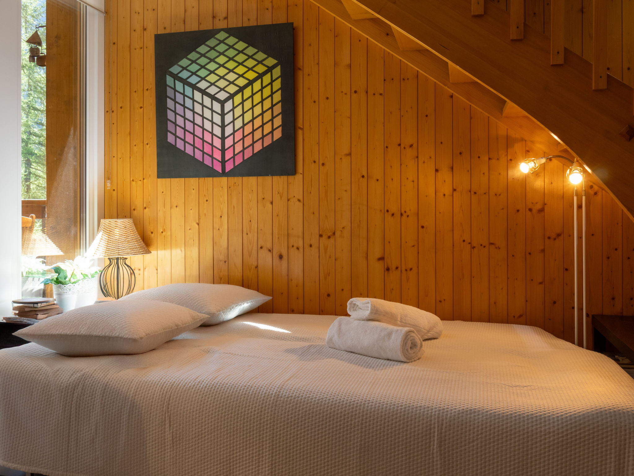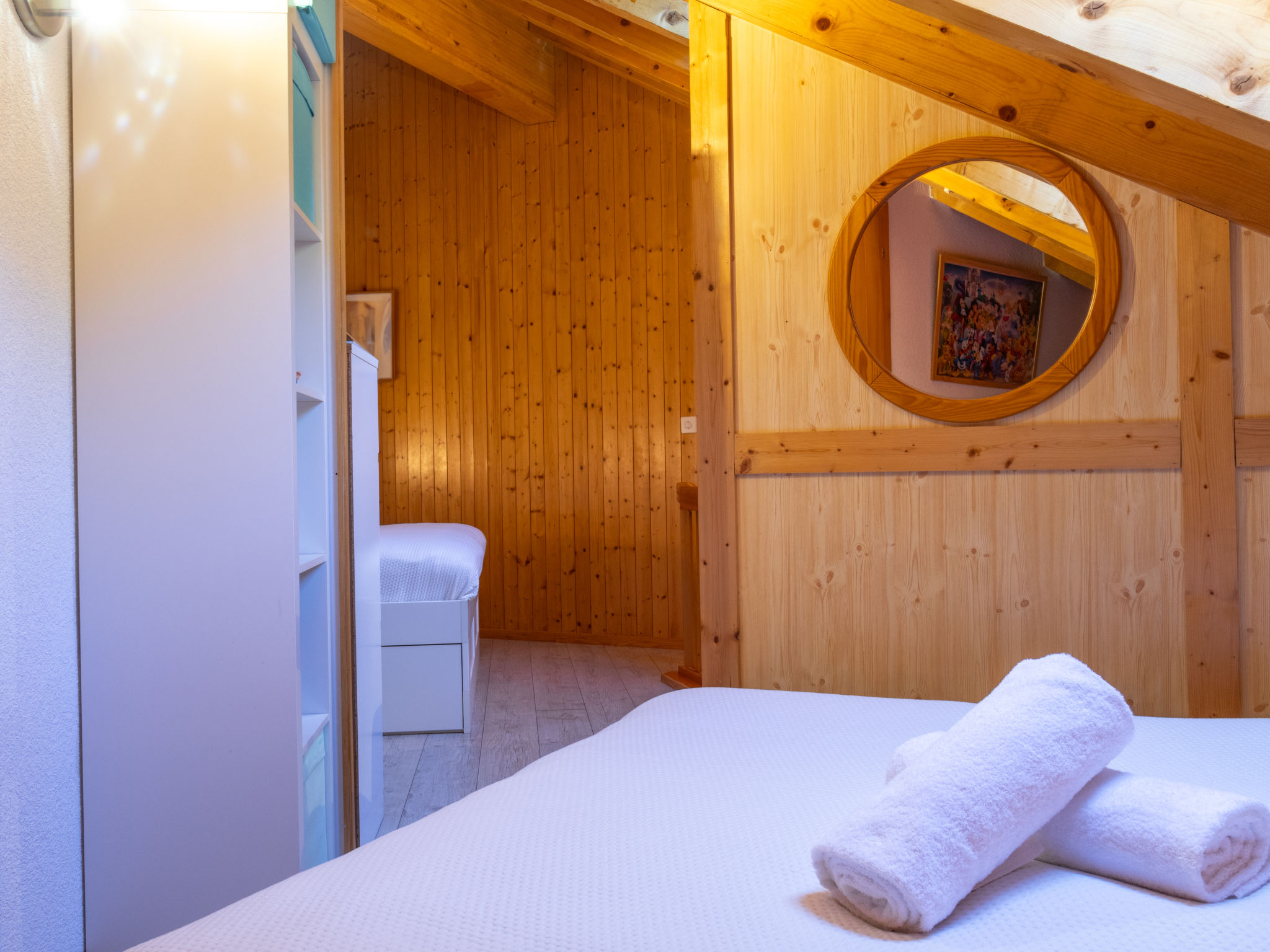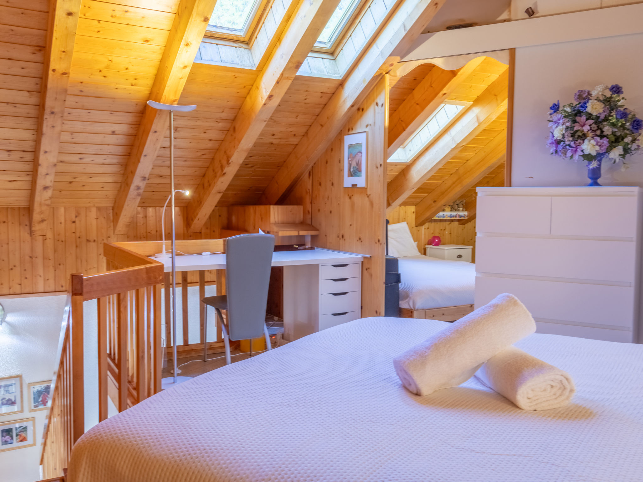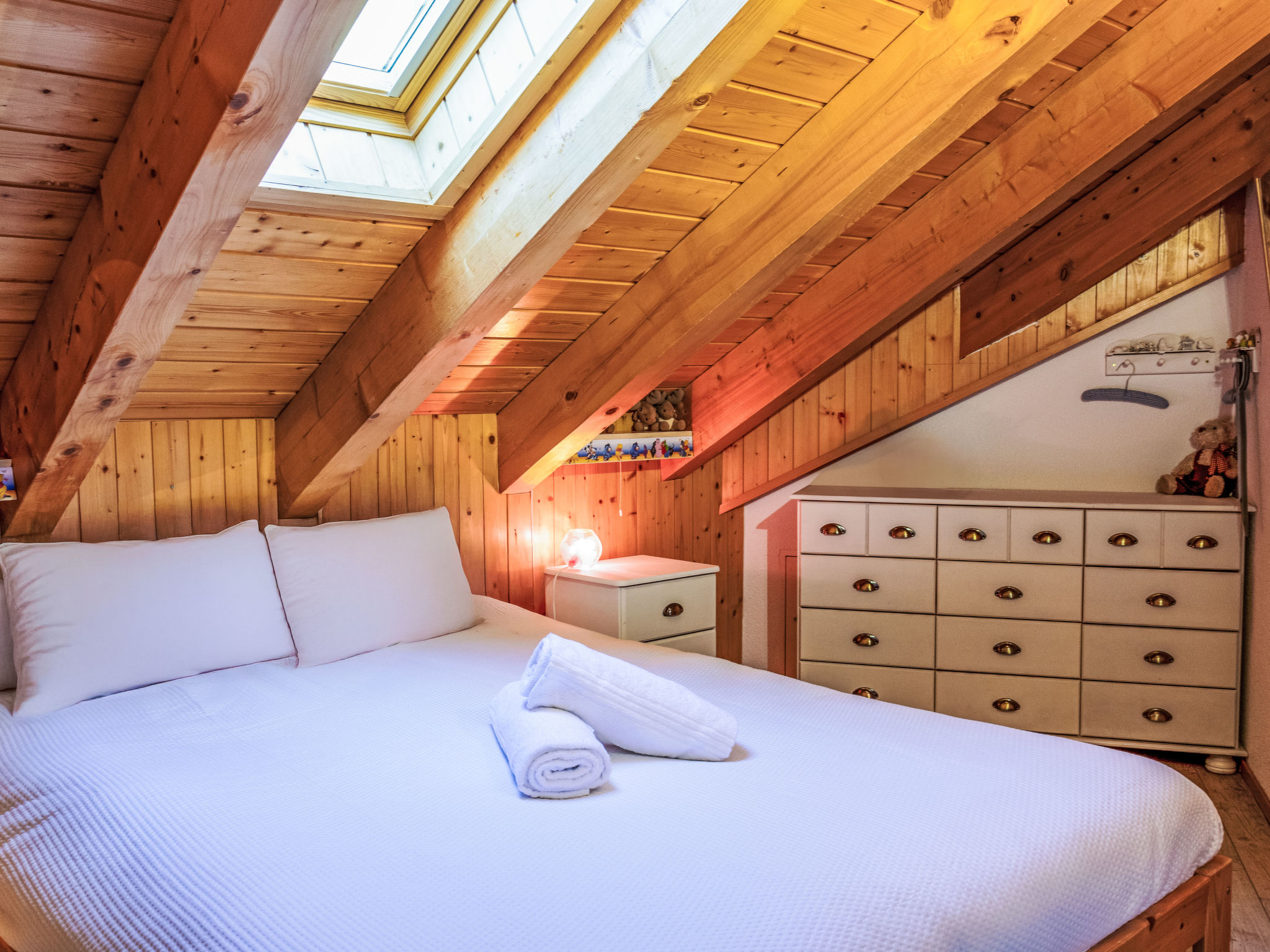 "Mont-Fort 70", attico di 3 locali 65 m2 su 2 piani al 7. piano. In parte mansardato, arredamento gradevole e con arredo in legno: soggiorno/sala da pranzo con 1 divano letto (140 cm, lunghezza 190 cm), TV (via cavo). Uscita sul balcone. Cucina aperta (lavastoviglie, 4 piastre cottura in vetroceramica, tostapane, bollitore elettrico, forno a microonde, congelatore, macchina da caffè elettrica, capsule per la macchina da caffè (Nespresso) extra, set per raclette, set per fondue (formaggio)). Vasca/WC. Piano attico: camera comunicante aperta con 1 letto doppio (2 x 80 cm, lunghezza 200 cm). 1 camera mansardata piccola, altezza del soffitto 80 - 250 cm con doccia/WC. Piccolo balcone, esposizione sud. Mobili da balcone. Splendida, sulle montagne. A disposizione: Internet (wifi). Prego notare: appartamento per non fumatori, senza parcheggio.