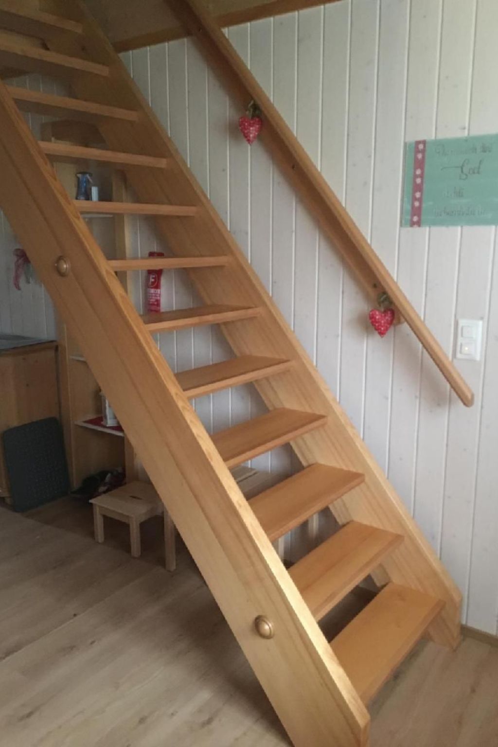 All'interno della casa vacanze troverete un arredamento progettato con cura che promette una vita accogliente in un ambiente rustico. La mansarda al 2° piano è dotata di due letti singoli ed è accessibile tramite una ripida scala; se necessario, la zona notte può essere ampliata con altri due letti. Un divano letto estraibile nel soggiorno offre ulteriore spazio per dormire. La cucina è completamente attrezzata con comfort moderni come lavastoviglie, forno/vapore e piano cottura a 4 fuochi. Un altro punto di forza è il bagno con finestra, dotato di doccia con schermo scorrevole, armadietto a specchio e asciugacapelli.
