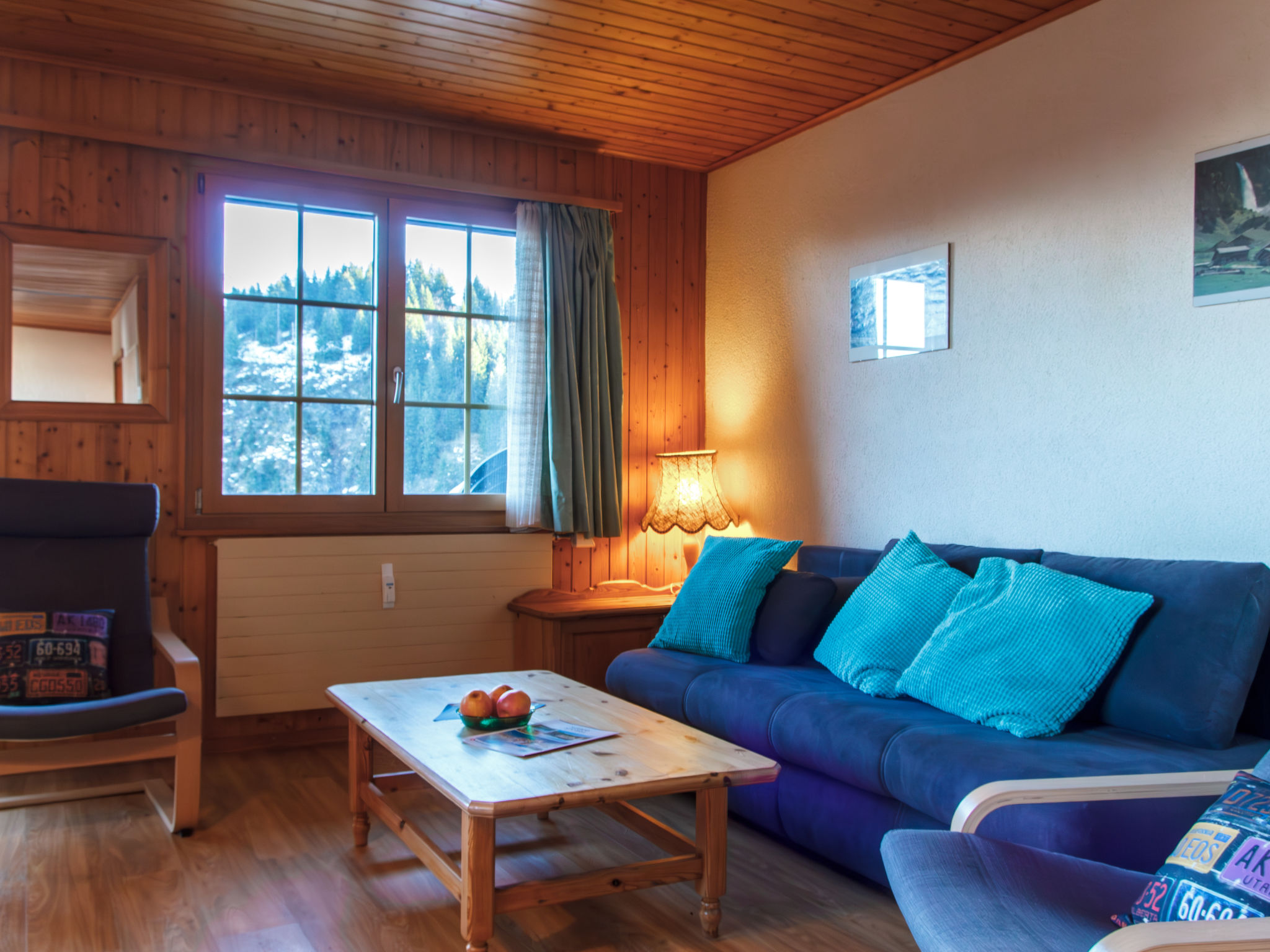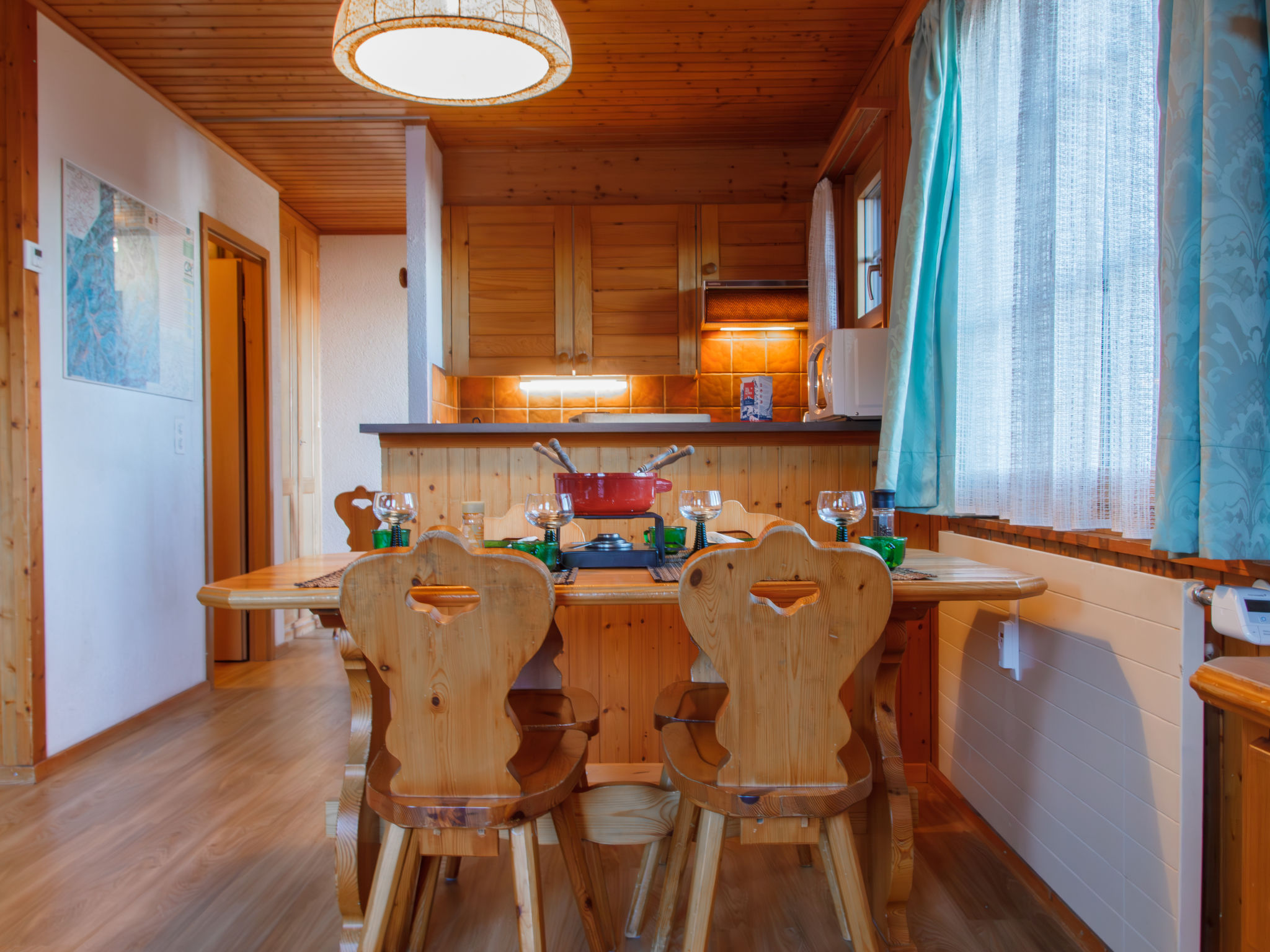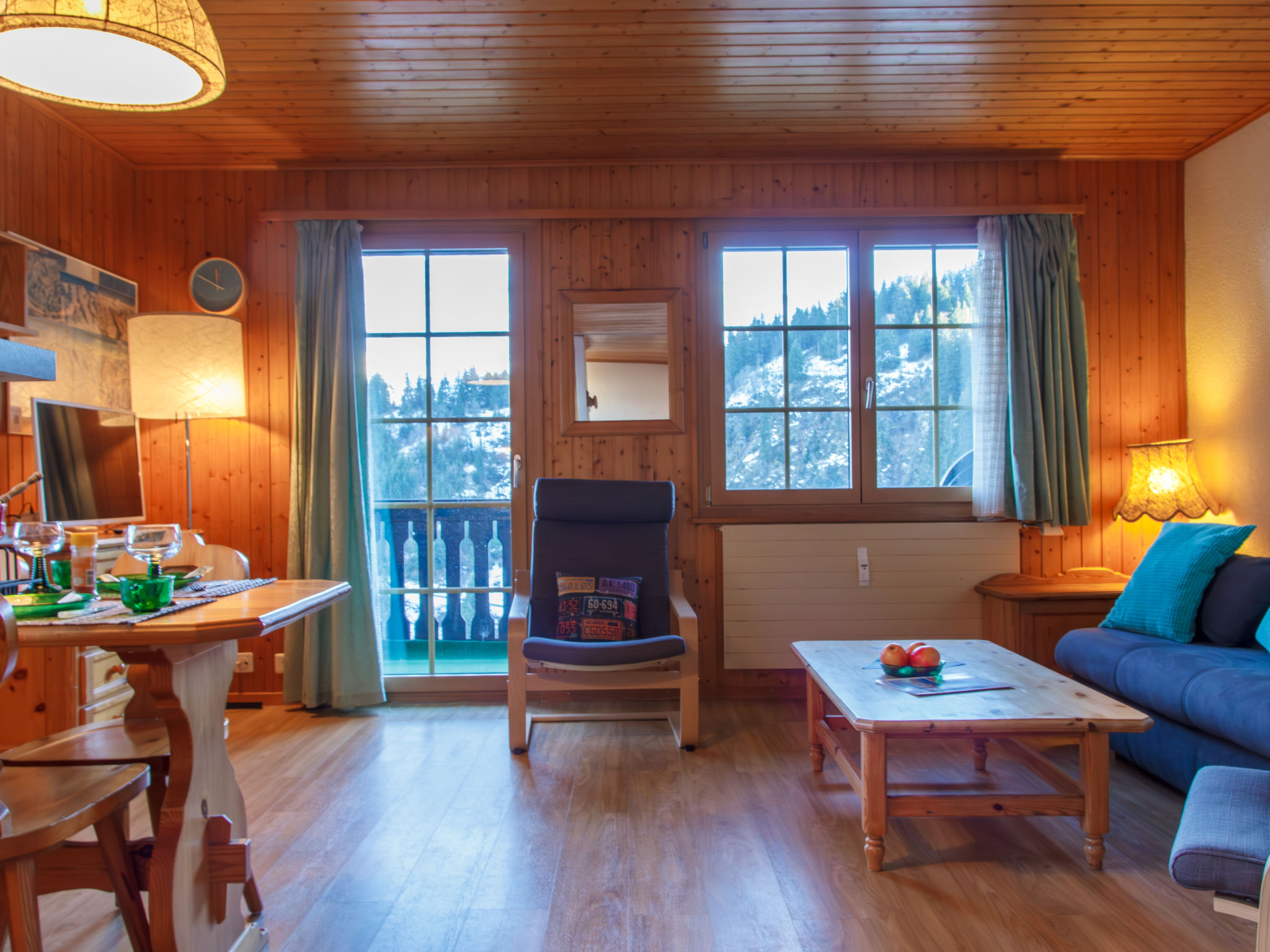 "Edelweiss", apt. di 2 locali. Oggetto adatto a 2 adulti + 2 bambini. Arredamento confortevole e di buon gusto: soggiorno/sala da pranzo con 1 divano letto doppio (140 cm, lunghezza 200 cm). Uscita sul balcone. 1 camera con 2 letti (90 cm, lunghezza 200 cm). Piccola cucina aperta (3 punti cottura, forno, lavastoviglie, forno a microonde, macchina da caffè elettrica, capsule per la macchina da caffè (Nespresso), set per fondue (chinoise, formaggio)) con passavivande. Vasca/WC. Grande balcone. Mobili da balcone. Magnifica vista sulle montagne e sul paesaggio. A disposizione: Internet (wifi, gratis). Garage (1 Auto) a 50 m. Prego notare: appartamento per non fumatori.