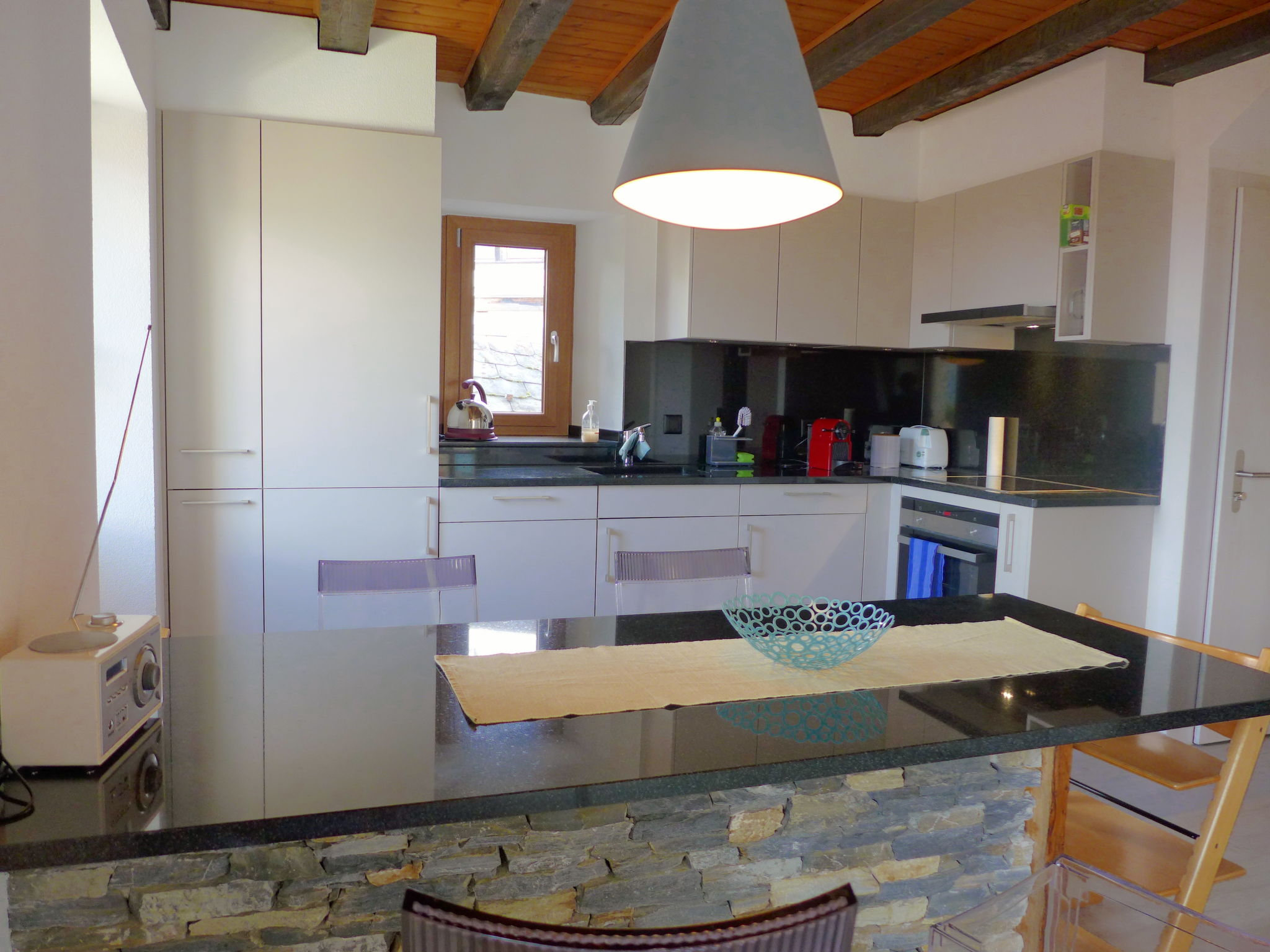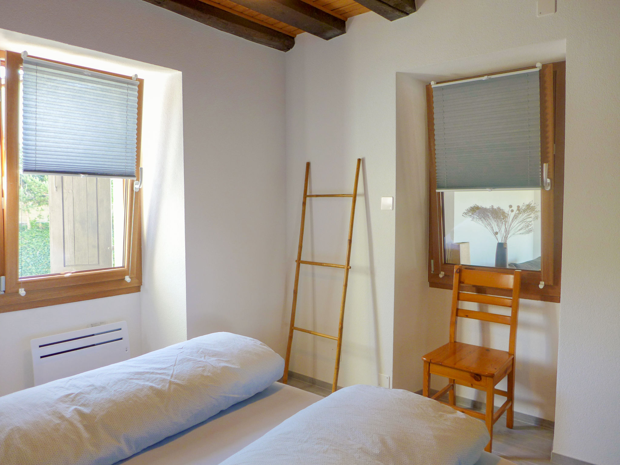 "Tilleul", apt. di 5 locali 85 m2 su 2 piani al 1. piano. Completamente restaurato nel 2019, arredamento di buon gusto e accogliente: soggiorno con TV (via cavo) e radio. Uscita sulla terrazza, esposizione sud. 1 camera con 1 letto alla francese (160 cm, lunghezza 200 cm). Cucina aperta (forno, 4 piastre ad induzione, tostapane, bollitore elettrico, forno a microonde, congelatore, macchina da caffè elettrica, capsule per la macchina da caffè (Nespresso) extra, set per raclette, set per fondue (chinoise, formaggio)). WC separato. Riscaldamento elettrico. Piano superiore: 1 camera mansardata con 1 letto doppio (2 x 80 cm, lunghezza 200 cm). 1 camera mansardata con 1 letto (90 cm, lunghezza 190 cm). 1 camera mansardata con 1 letto (90 cm, lunghezza 190 cm). Doccia/WC. Grande terrazza 10 m2. Mobili da terrazza, sedie a sdraio (2). Splendida vista sulle montagne. A disposizione: ferro da stiro, seggiolone, lettino per bimbi, asciugacapelli. Internet (wifi, gratis). Parcheggio (2 Auto) vicino alla casa. Prego notare: appartamento per non fumatori.