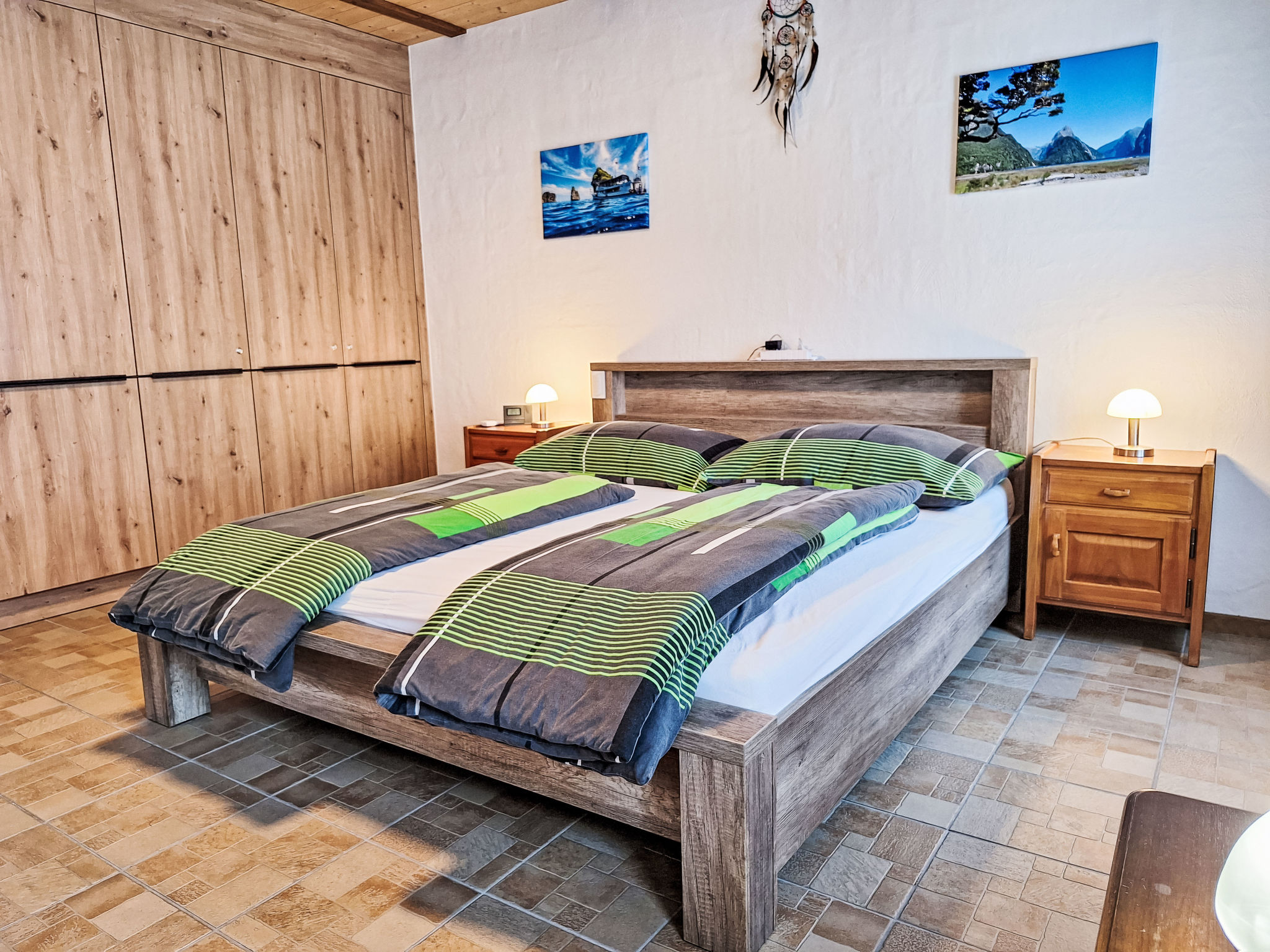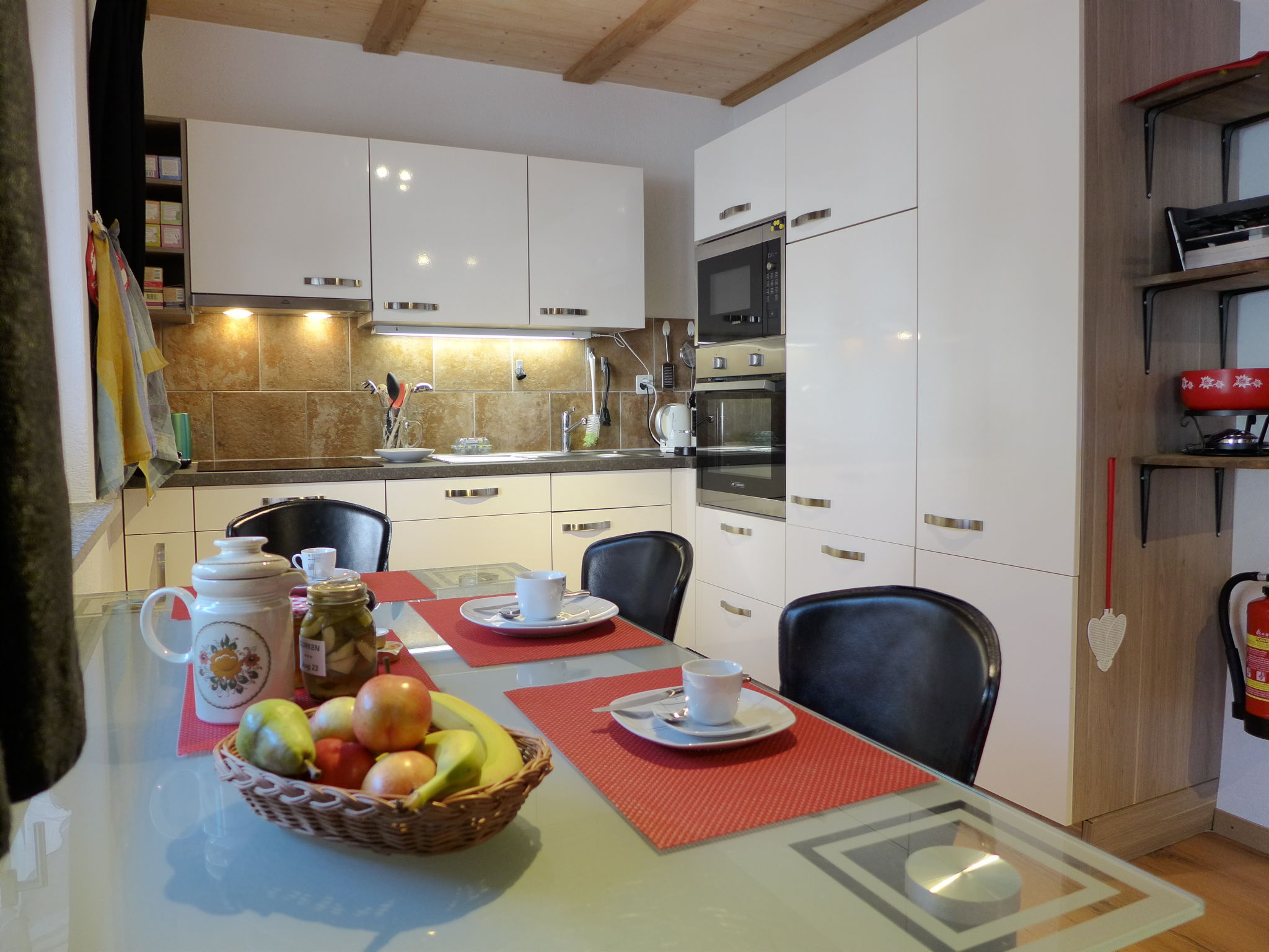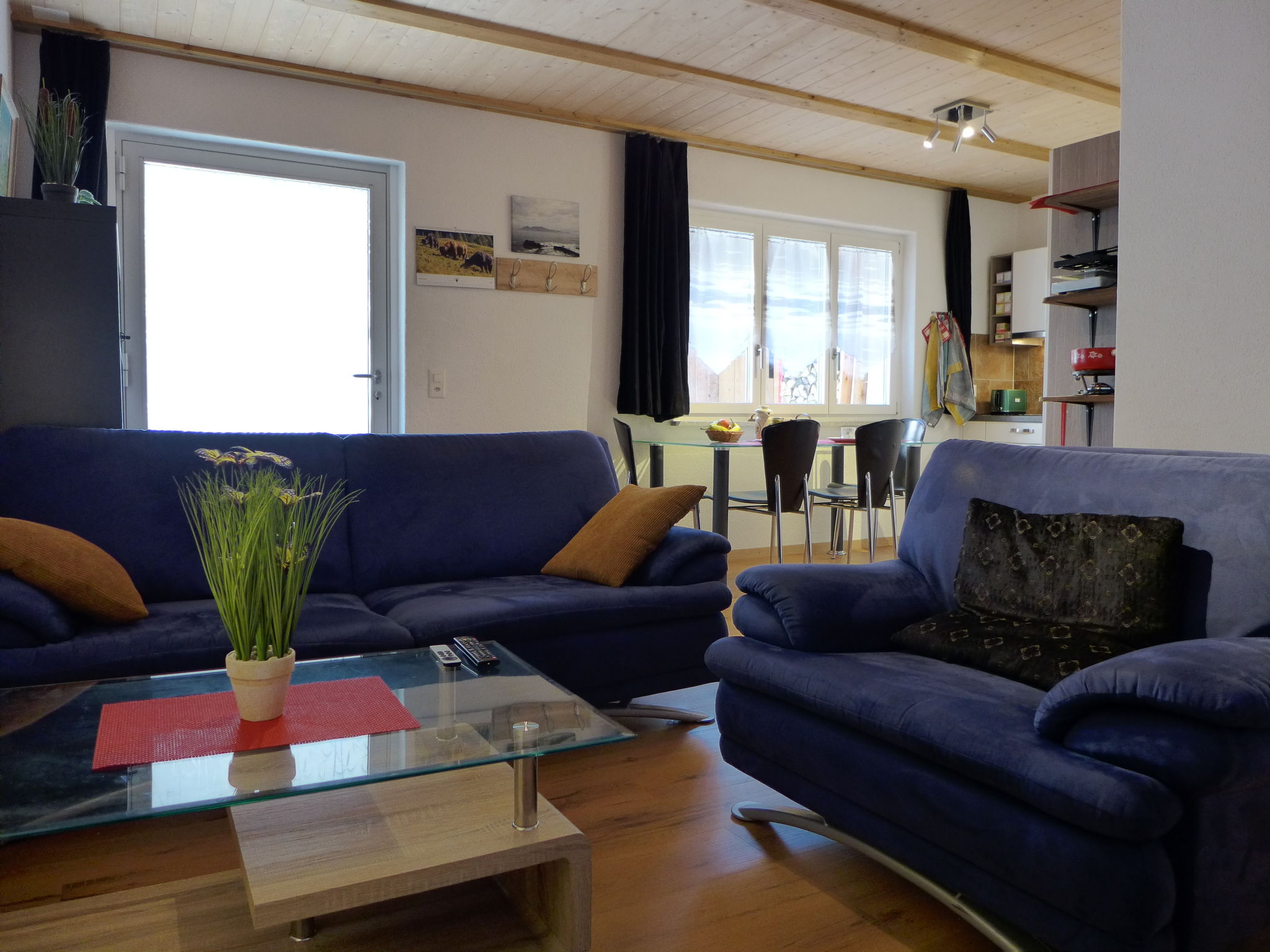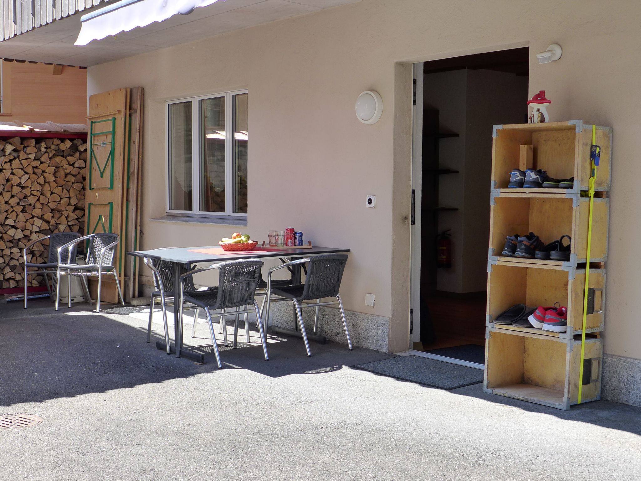 "Tilia", apt. di 2 locali 53 m2, al pianterreno, esposizione sud. Spazioso, arredamento confortevole e accogliente: soggiorno/sala da pranzo aperto con tavolo da pranzo, TV (via cavo) e radio. Uscita sulla terrazza. 1 camera grande con 1 letto (90 cm, lunghezza 200 cm), 1 letto doppio (180 cm, lunghezza 200 cm), climatizzazione e tapparelle elettriche. Cucina aperta (forno, lavastoviglie, 4 piastre cottura in vetroceramica, tostapane, bollitore elettrico, forno a microonde, macchina da caffè elettrica, capsule per la macchina da caffè (Nespresso) extra, set per raclette, set per fondue (formaggio)). Vasca/doccia/WC. Riscaldamento a pavimento. Terrazza, esposizione sud. Mobili da terrazza. Parziale vista sulle montagne. A disposizione: lavatrice, asciugatrice. Internet (wifi, gratis). Parcheggio (1 Auto) vicino alla casa. Prego notare: appartamento per non fumatori. Allarme antifumo, estintore.