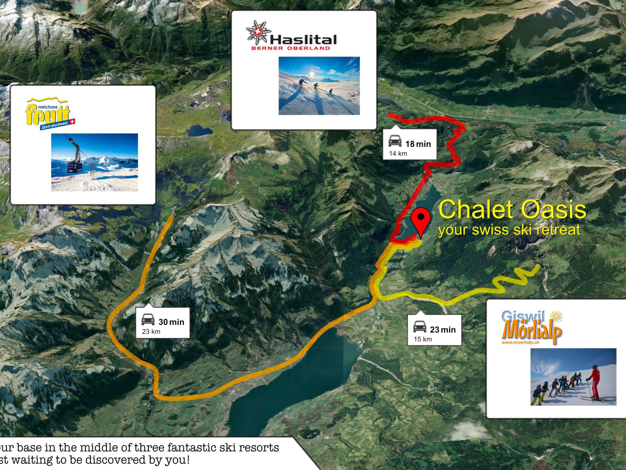 La regione offre inoltre un facile accesso alle principali destinazioni: Interlaken, Harder Kulm, Jungfraujoch, Titlis, Lucerna con il Ponte della Cappella e naturalmente le stazioni sciistiche. In auto si raggiunge Lucerna in 30 minuti, Interlaken in 38 minuti e Grindelwald in 1 ora. La rete di trasporti pubblici è eccellente: la stazione ferroviaria di Kaiserstuhl OW dista 15 minuti a piedi. Da qui è possibile raggiungere rapidamente Lungern (6 minuti), Lucerna (1 ora), Interlaken (1 ora) o Grindelwald (2 ore).
