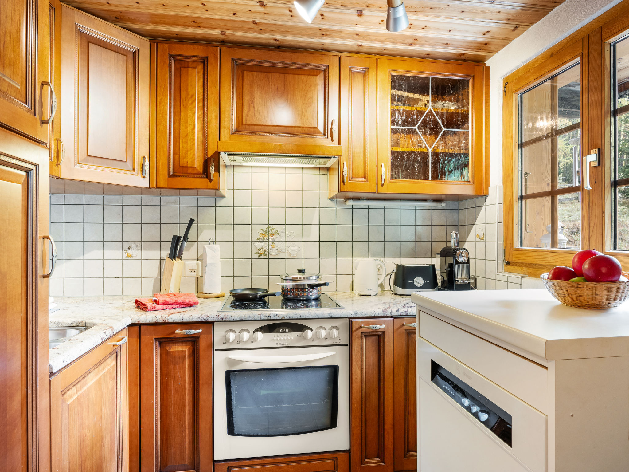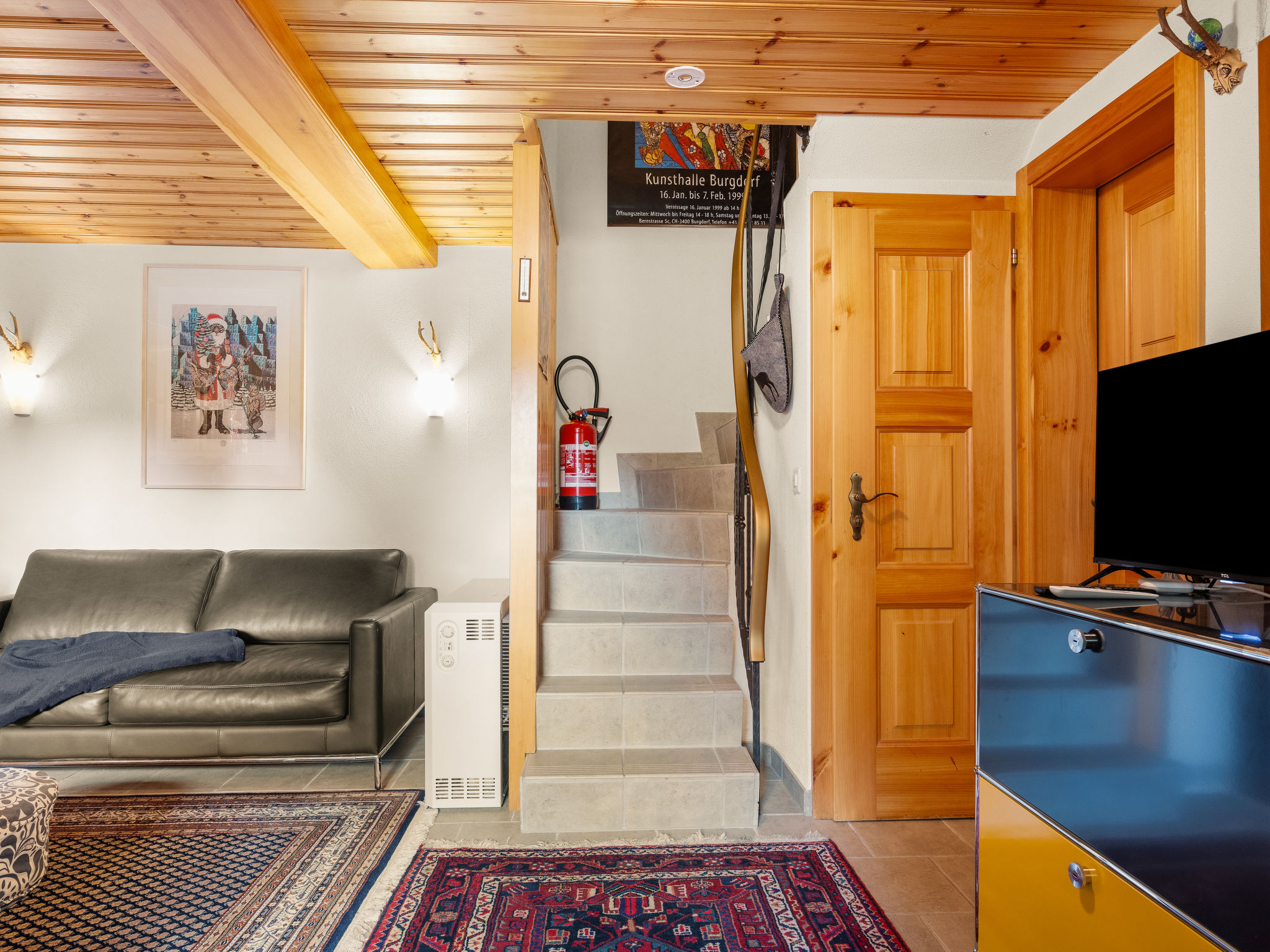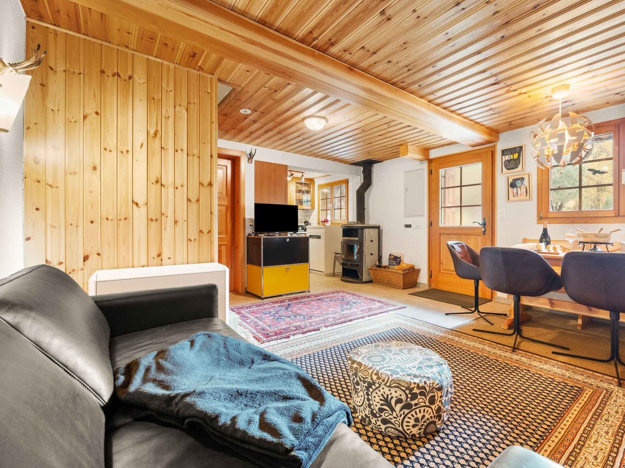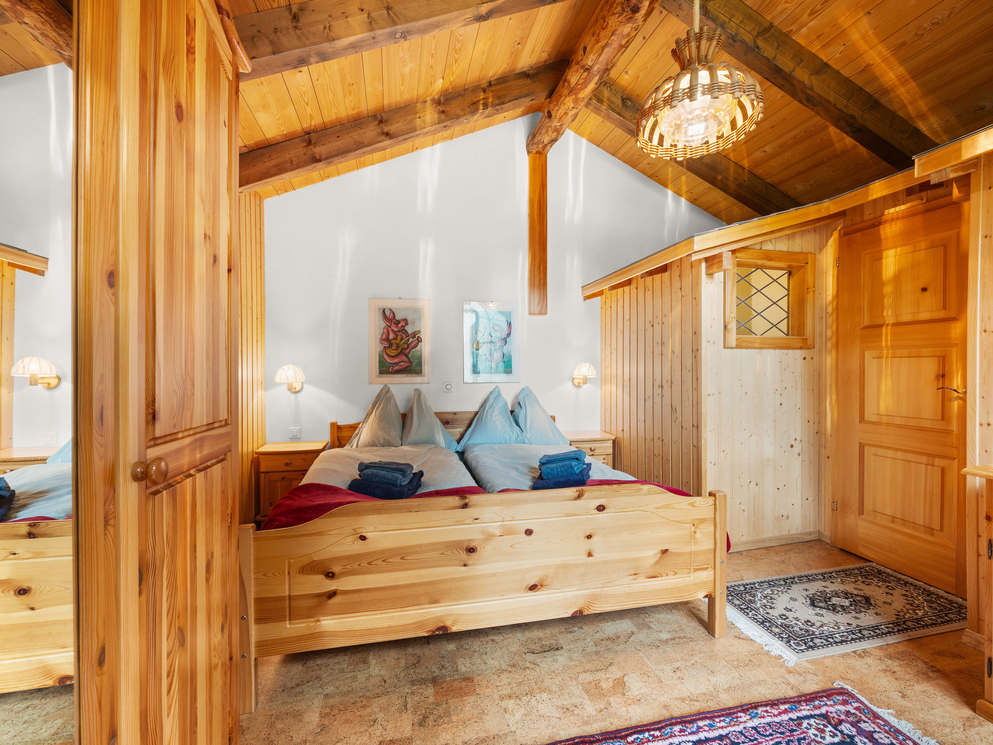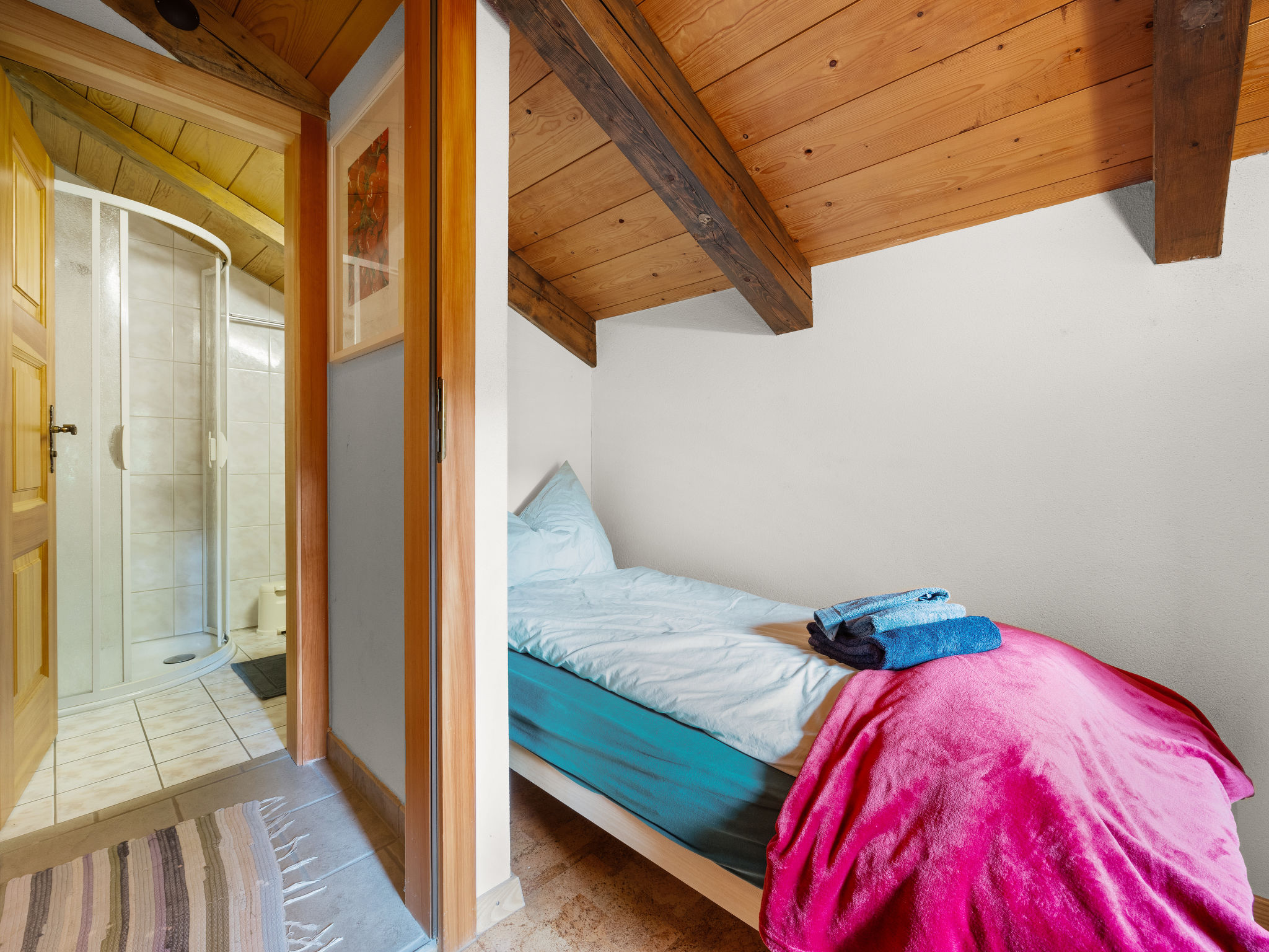 "Lätthaus Rot", casa 3 locali 75 m2 su 2 piani. Arredamento semplice e confortevole: soggiorno/sala da pranzo con stufa svedese, tavolo da pranzo, tv digitale, riscaldamento elettrico e boiler. Uscita sul giardino, sulla terrazza. Cucina aperta (forno, lavastoviglie, 4 piastre cottura in vetroceramica, tostapane, bollitore elettrico, macchina da caffè elettrica, set per raclette, set per fondue (formaggio)). WC separato. Riscaldamento elettrico. Piano superiore: (scala a chiocciola) 1 camera matrimoniale con 1 letto doppio (180 cm, lunghezza 200 cm). 1 camera con 1 letto (90 cm, lunghezza 200 cm). Doccia/WC. Pavimenti in pietra. Mobili da terrazza, barbecue, sedie a sdraio. Vista sul paesaggio. A disposizione: lavatrice. Internet (wifi, gratis). Parcheggio vicino alla casa, in inverno a 100 m. Prego notare: casa per non fumatori.
