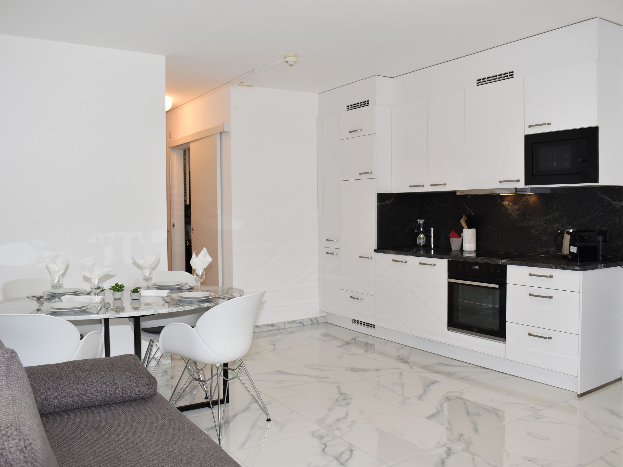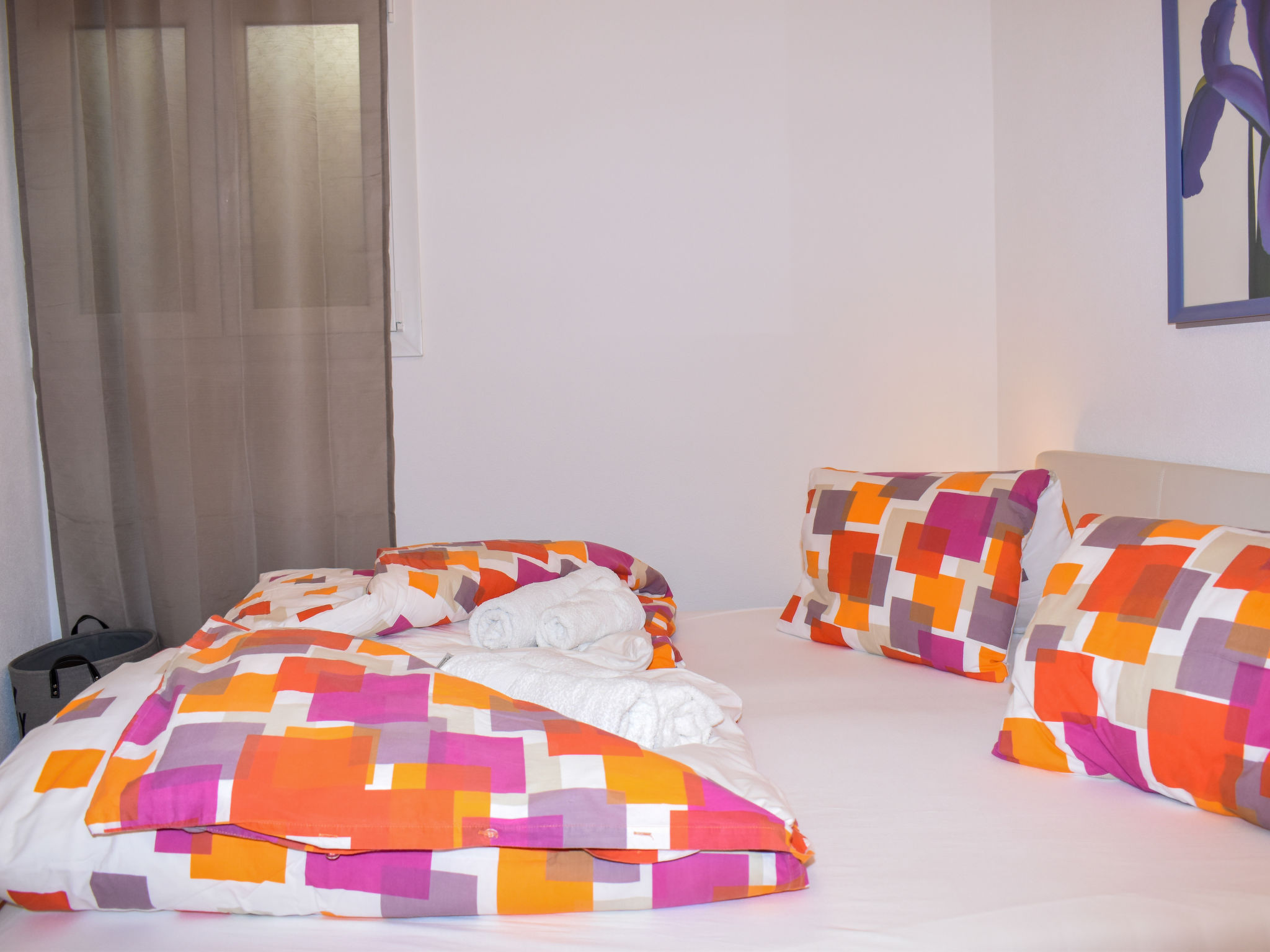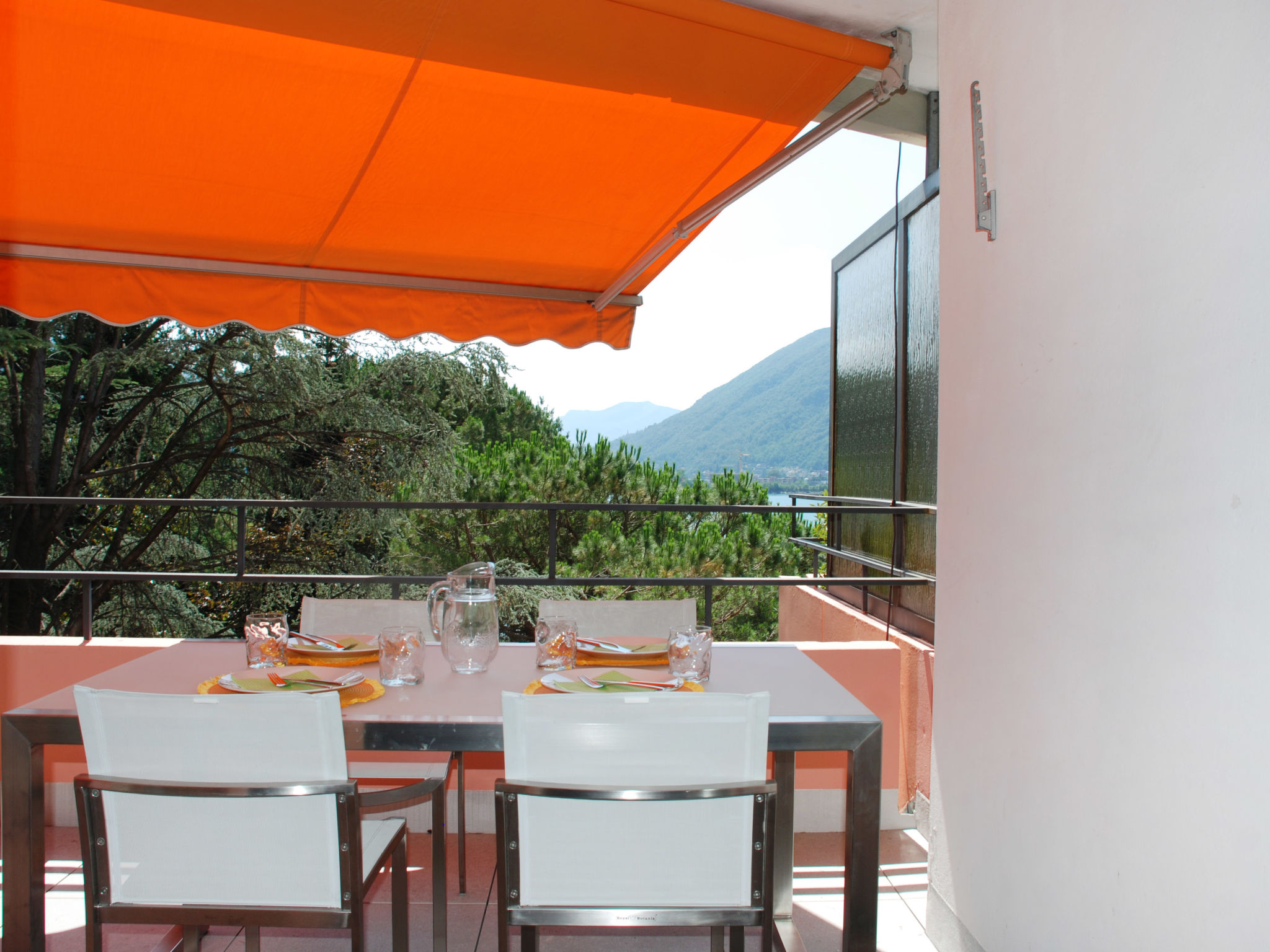 "App. 704", apt. di 2 locali 52 m2 al 7. piano, esposizione sud. Completamente restaurato nel 2022, arredamento lussuoso e elegante: soggiorno/sala da pranzo grande, aperto con 1 divano letto (160 cm, lunghezza 200 cm), TV (via cavo) e tv con canali internazionali (schermo piatto), climatizzazione. Uscita sul balcone. 1 camera matrimoniale piccola con 1 letto doppio (2 x 90 cm, lunghezza 200 cm). Grande cucina aperta (forno, lavastoviglie, 4 piastre cottura in vetroceramica, tostapane, bollitore elettrico, congelatore, macchina da caffè elettrica, capsule per la macchina da caffè (Nespresso) extra, set per raclette) con tavolo da pranzo. Doccia/WC. Balcone 10 m2, esposizione sud. Mobili da balcone. Splendida vista sul lago, sulle montagne e sul paesaggio. A disposizione: lavatrice (extra). Seggiolone, lettino per bimbi fino 2 anni (extra), asciugacapelli. Internet (wifi, gratis). Parcheggio vicino alla casa. Prego notare: appartamento per non fumatori. Attenzione: la finestra della camera da letto si apre sul pozzo di ventilazione. NL-00001926