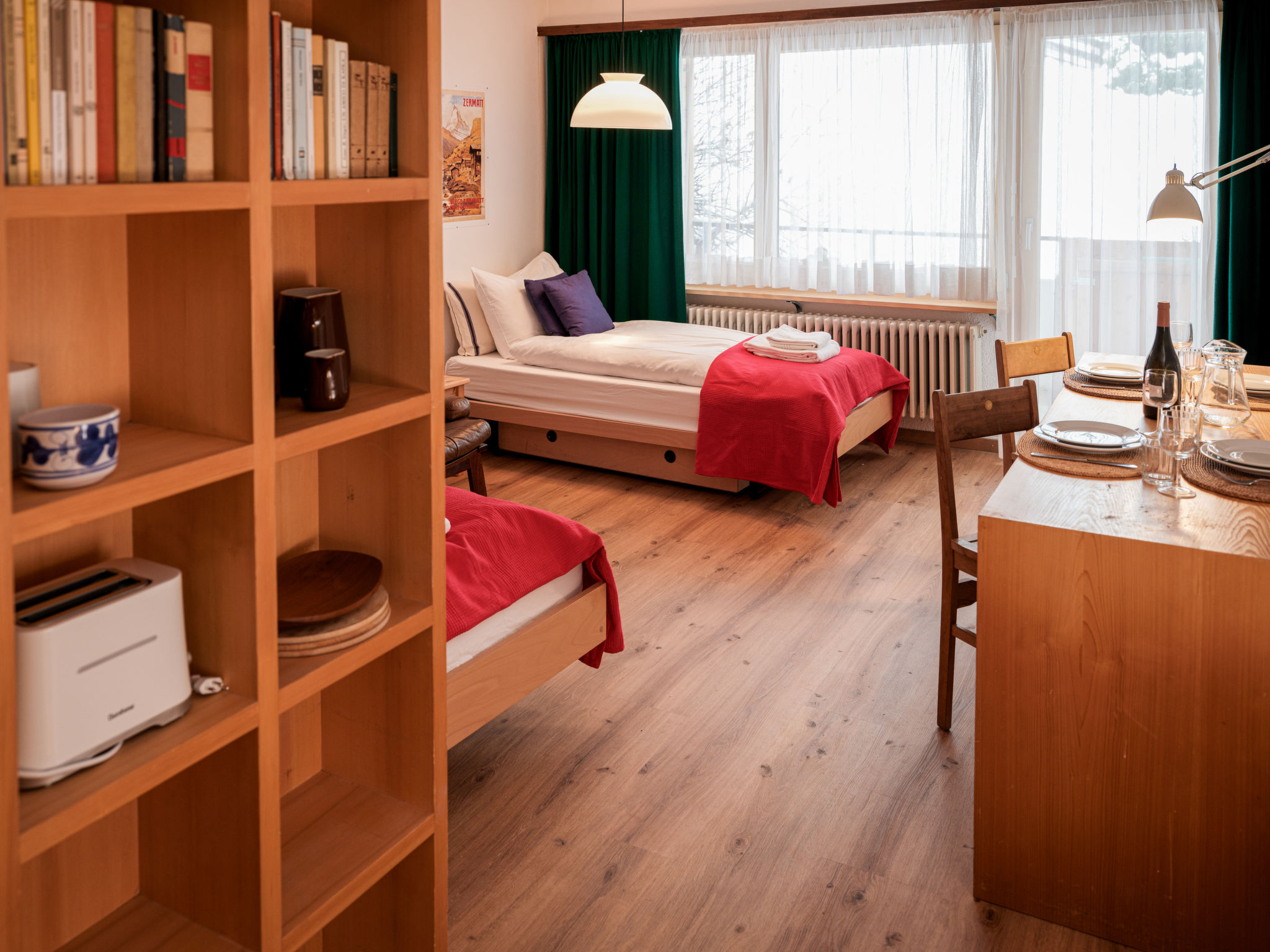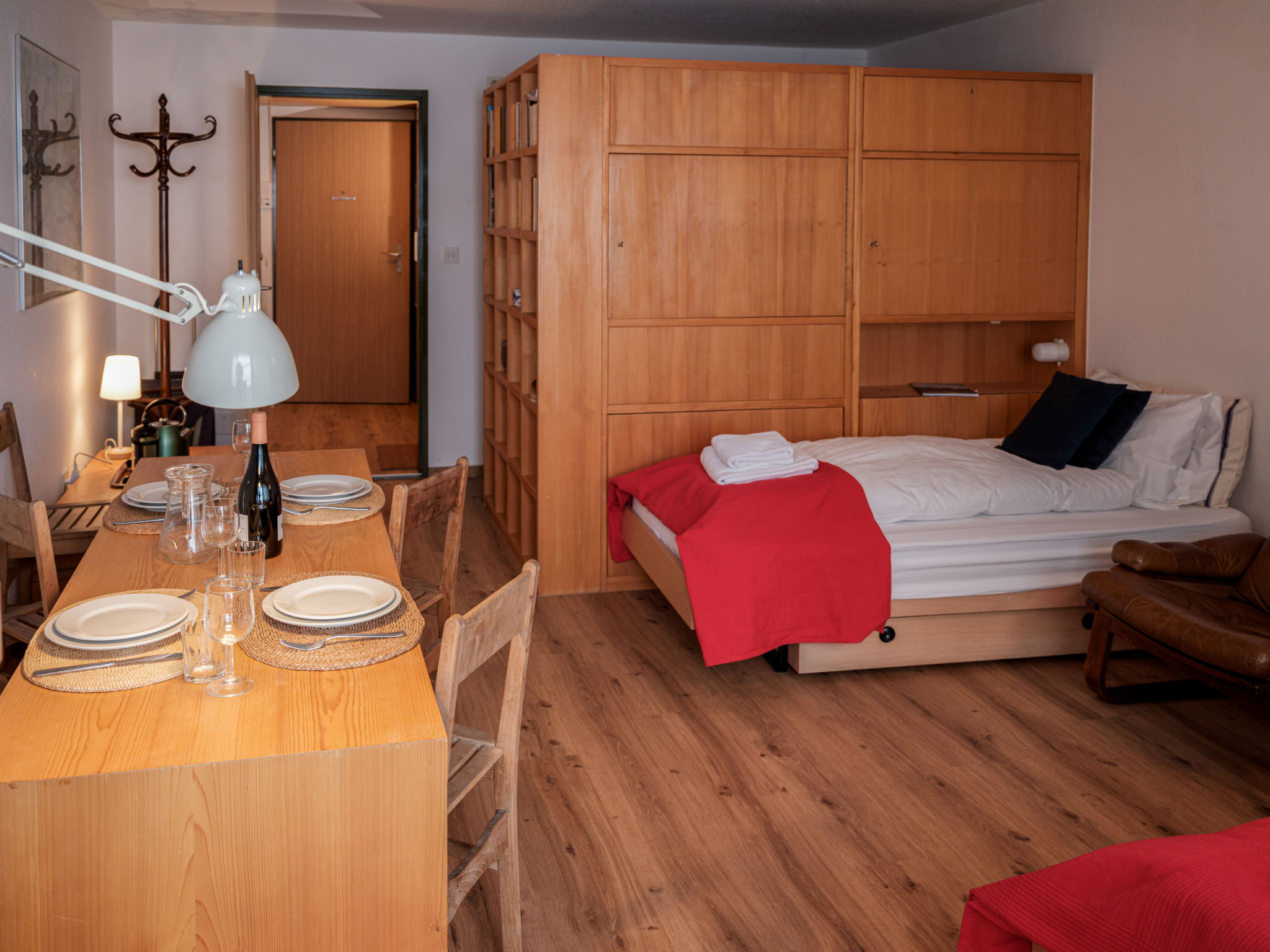 "Silence" monolocale 40 m2, al pianterreno. Spazioso, arredamento semplice e confortevole: soggiorno/camera con 2 letti (90 cm, lunghezza 190 cm), TV. Uscita sul balcone. Cucina (3 punti cottura, forno, lavastoviglie, tostapane, bollitore elettrico, congelatore, macchina da caffè elettrica). Vasca/WC. Balcone. Splendida vista il Cervino. A disposizione: Internet (wifi, gratis). Prego notare: appartamento per non fumatori.