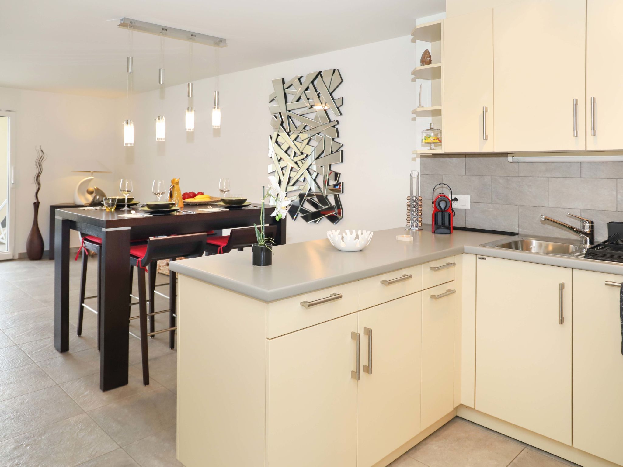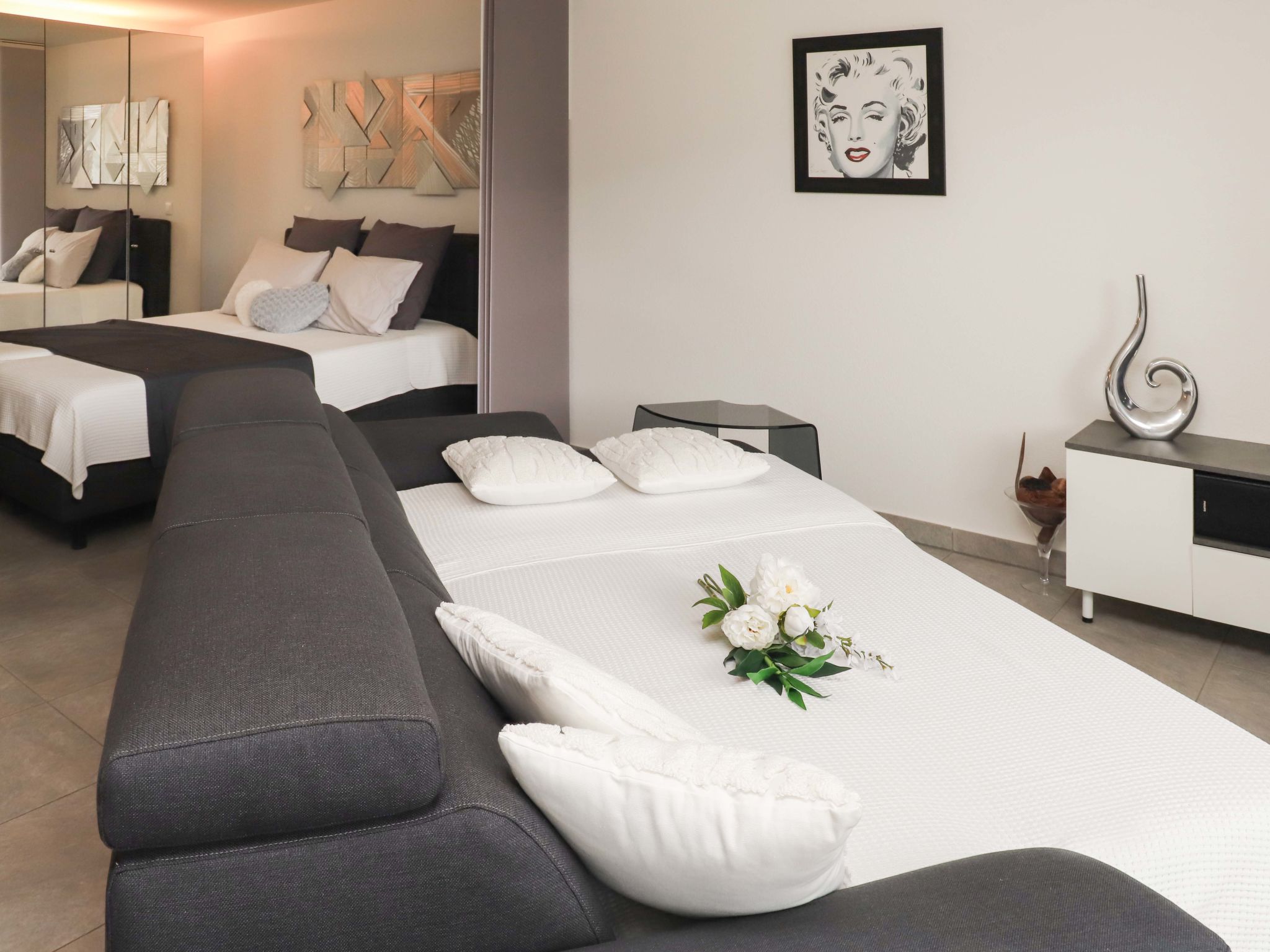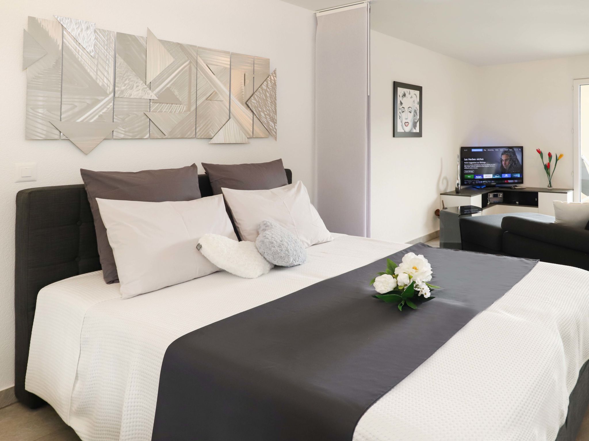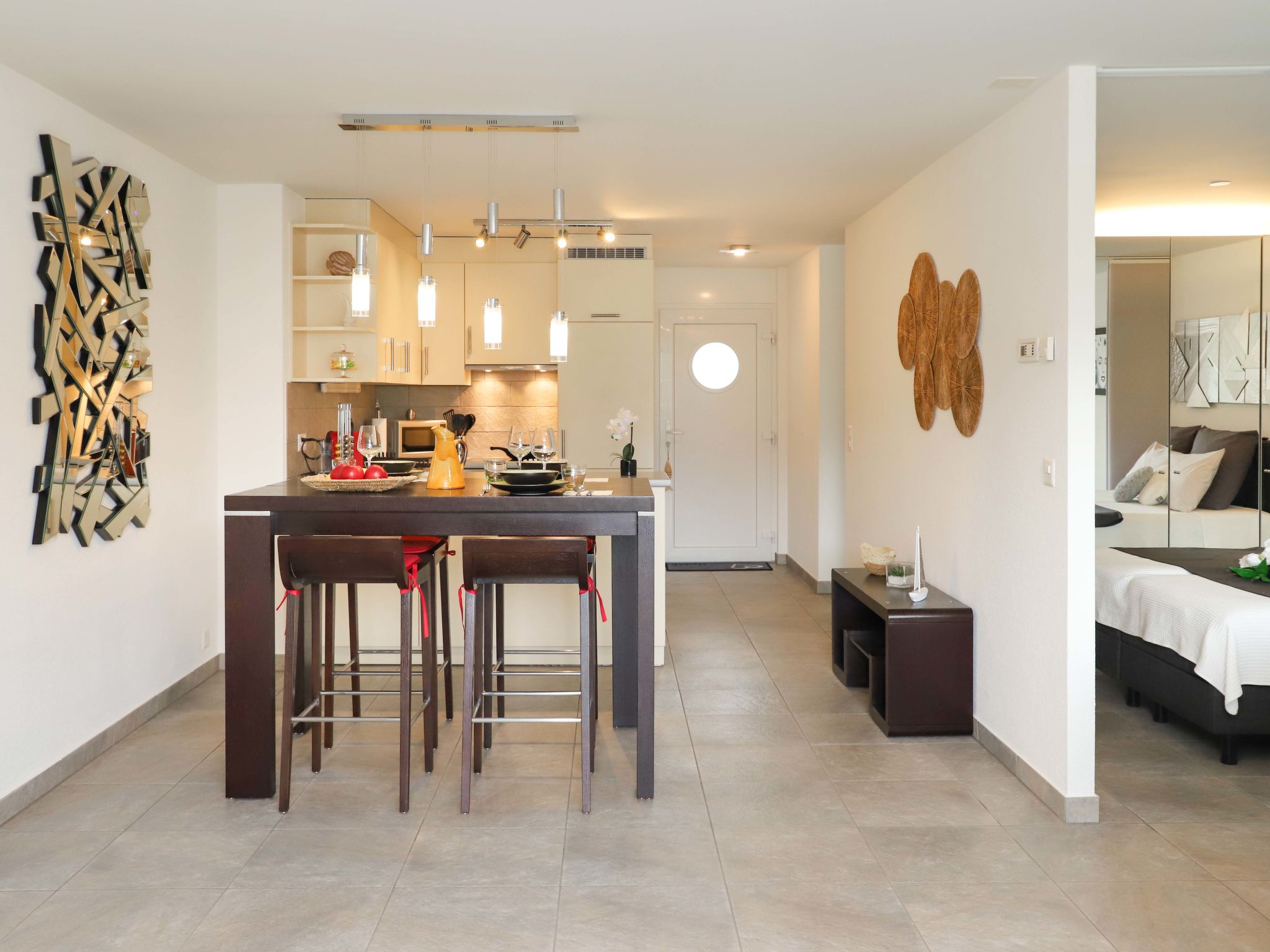 "Cook P9/3", monolocale Loft 60 m2 al 3. piano. Oggetto adatto a 2 adulti + 1 bambino. Luminoso, arredamento confortevole e di buon gusto: soggiorno/camera con 2 letti (90 cm, lunghezza 200 cm), 1 divano letto (120 cm, lunghezza 190 cm), TV (satellite) e impianto stereo. Uscita sul balcone. Cucina aperta (4 piastre cottura in vetroceramica, tostapane, bollitore elettrico, forno a microonde, macchina da caffè elettrica, capsule per la macchina da caffè (Nespresso), set per raclette). Vasca/WC. Balcone. Mobili da balcone, sedie a sdraio (2). Bella vista sul paesaggio. A disposizione: lavatrice, asciugatrice, asciugacapelli. Internet (wifi). Parcheggio nr. 169. Prego notare: appartamento per non fumatori.