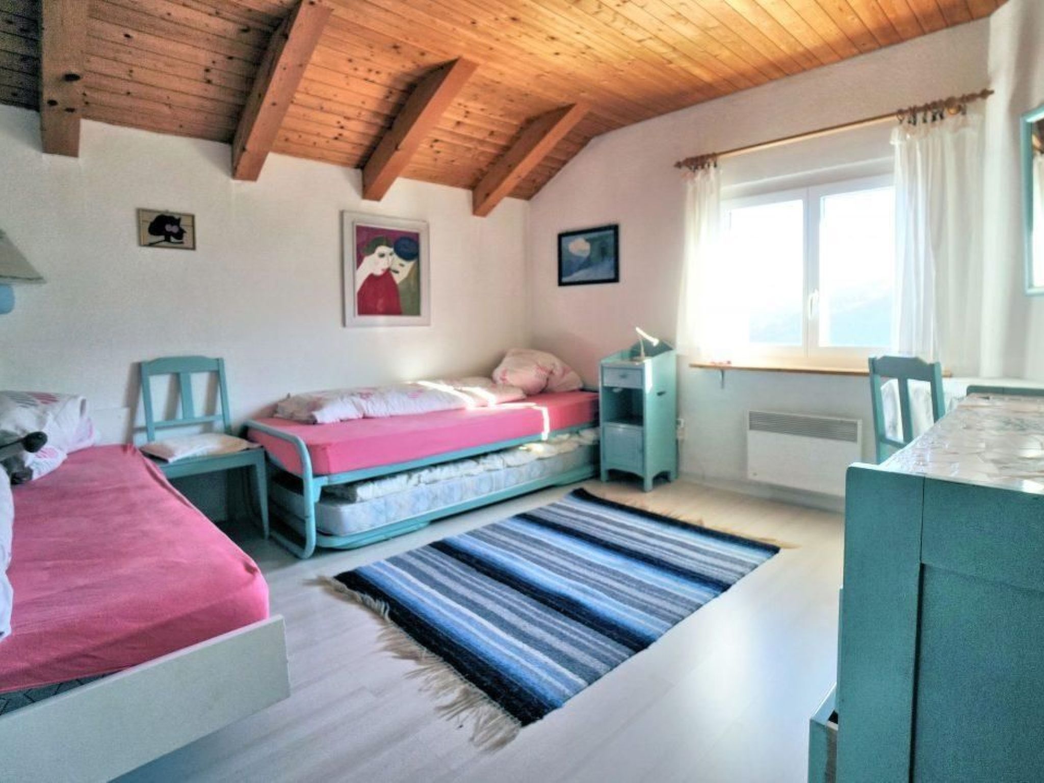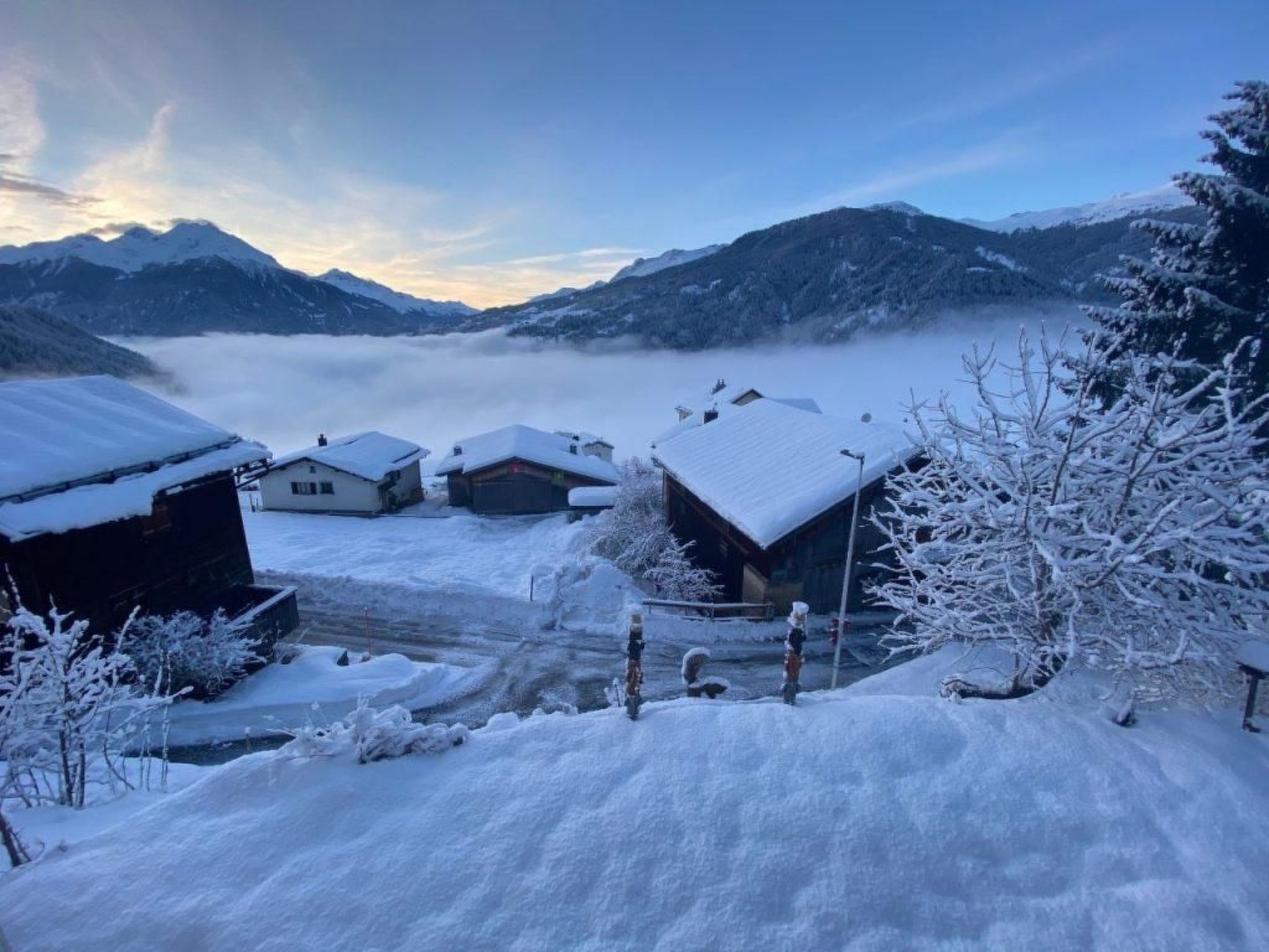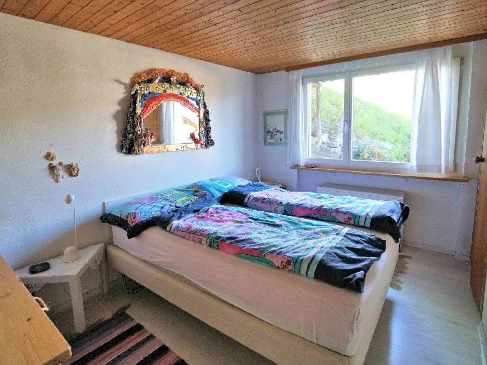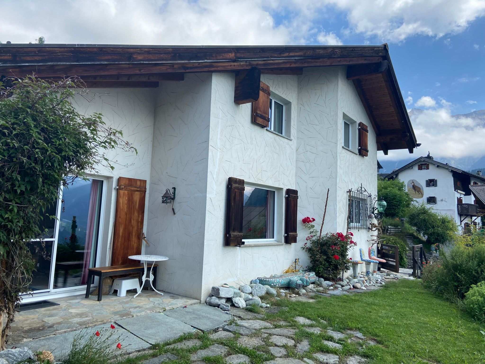 Enjoy a relaxing holiday in the idyllically situated holiday home in Muldain, a quiet farming village on the sunny side of Lenzerheide. With its fantastic views over the village and into the valley, nestled in the picturesque mountains opposite, this detached 5.5-room house for up to 9 people offers the perfect retreat for unforgettable holidays in the heart of Graubünden.Inside the house, you will find a large and cosy living room with an impressive gabled wooden ceiling, a gallery and a fireplace that creates a cosy atmosphere. The open-plan kitchen is fully equipped, including a dishwasher. The accommodation also has four cosy bedrooms, two with double beds, and two bathrooms - one with bath/WC and another with shower/WC, which will make your stay comfortable.The outdoor area of the house is characterised by its small seating area by the entrance, which catches the morning sun, as well as a spacious, sunny garden on the south side with barbecue facilities. This offers an enchanting view of the surrounding mountain landscape and invites you to spend cosy hours outdoors. The property is also in a very quiet location, with no through traffic, and offers a garage space for one car as well as parking for two further vehicles.The dreamlike surroundings of the house offer suitable activities for every season: The Arosa/Lenzerheide snow sports paradise can be reached within 10 minutes on the (seasonally free) sports bus. In summer, the region is transformed into a trail paradise for mountain bikers and hiking enthusiasts. Sports activities such as ice skating, golf, paragliding, cycling tours, tobogganing, skiing (alpine and cross-country) and tennis are also available nearby.Leave everyday life behind you and immerse yourself in the idyllic ambience of the holiday home in Muldain. With its inviting interior, picturesque outdoor area and the wealth of activities in the surrounding area, it offers the ideal conditions for an unforgettable holiday in the mountains.
