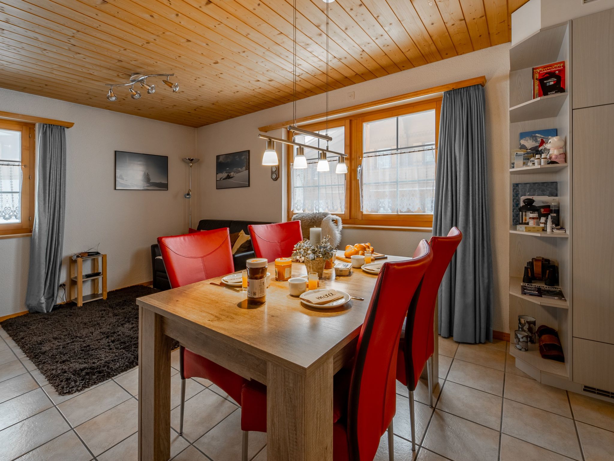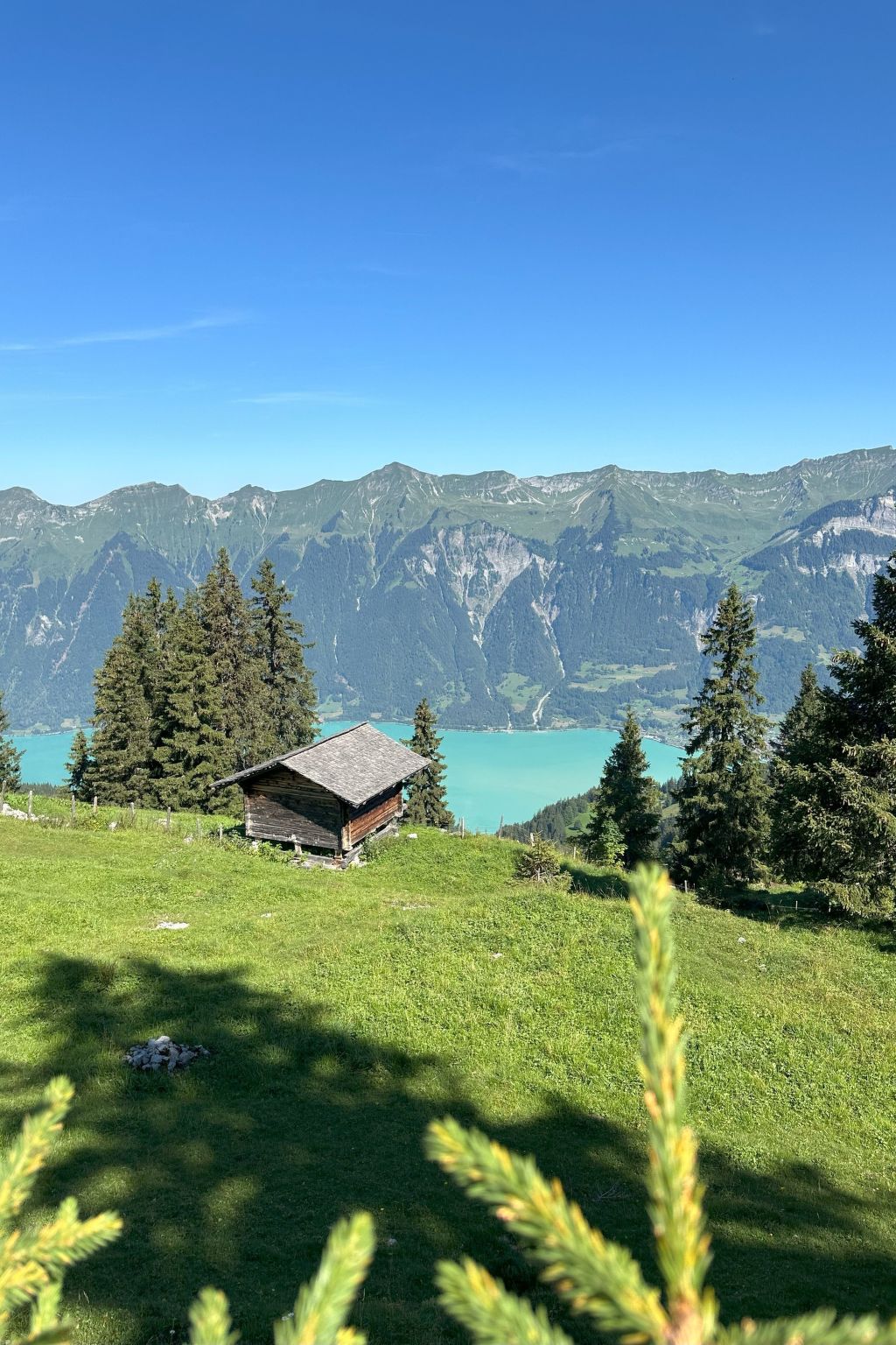 Our cosy flat is located in a 4-family chalet on the ground floor above Lake Brienz at around 1,500 m above sea level on the family-friendly Axalp, surrounded by greenery with lake and mountain views. The Axalp can also be reached by public transport - however, it is highly recommended that you bring your own vehicle, as public transport is only available from 09:00 to 17:00. From May to October, the Axalp Windegg AG chairlift also operates in summer.Our holiday flat is regularly occupied by ourselves and therefore has everything you need to feel good and relax in everyday life.Do you want to relax in the mountains or spend a few unforgettable days with your family? Hike to the Hinterburgsee or use the Axalp as a starting point for hiking routes. You can reach Axalp in just over an hour from Bern or Lucerne. Down in the valley, the Schnitzler village of Brienz awaits you on the lake of the same name. The Ballenberg Open-Air Museum and the Rothorn railway are other attractive day trip destinations in the immediate vicinity. You are renting a furnished 3.5 room holiday flat (non-smoking / no pets) on the Axalp.- 1 bedroom with double bunk bed (180 x 200 cm)- 1 room remains private but locked!- 1 bathroom with shower cubicle, WC and washbasin- 1 living room with Swedish stove and TV- 1 kitchen with dining table open to the living room- 1 entrance hall with wardrobe- 1 outdoor seating area with table and 2 benches, 1 parasol and 2 deckchairsThe kitchen is fully equipped with microwave, coffee machine (Nespresso), toaster, mixer, kettle, fondue caquelon, raclette oven, fridge incl. freezer compartment, ceramic hob with 4 hotplates, crockery and cutlery. The most common spices and washing-up liquid are available. Bed linen, bath towels and kitchen towels are provided.Other sports and leisure activities: Fishing, hiking, mountaineering, mountain biking, paragliding, water skiing, cross-country skiing, alpine skiing, tennis, water skiing, sailingExcursion possibilities: Schnitzler village Brienz, Giessbach Falls, Schnitzler Trail to Lake Hinderburg (Axalp), Ballenberg Open-Air Museum (Brienz) Brienzer Rothorn Railway (Brienz) Aare Gorge (Meiringen), Interlaken, Jungfraujoch, Hasliberg (Muggenstutzweg), Grimsel and Susten Pass, Grindelwald, Bern, LucernePlease noteThe information on additional costs and deposit in the property description and the general terms and conditions of the contractual partner apply.House informationQuiet times: 22:00 to 08:00hNon-smoking houseNo pets allowedView from the property: mountains, garden, forest, meadow, valley