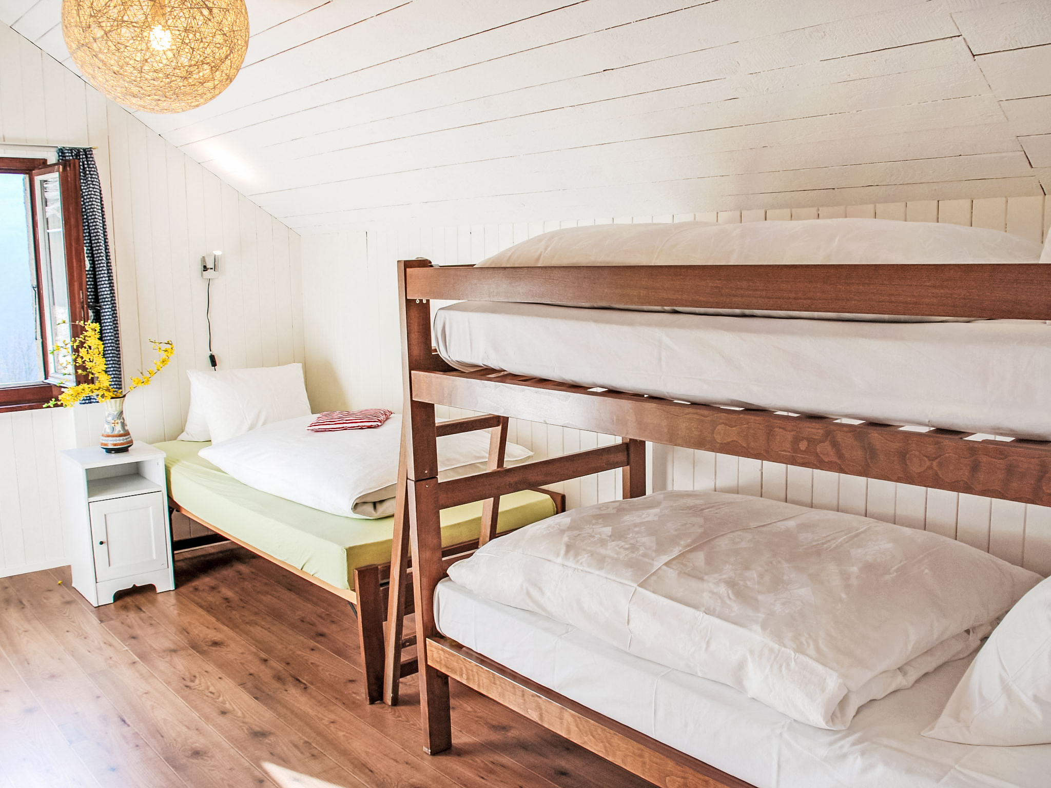 "Marianne Plus", casa 3 locali 100 m2 su 2 piani, esposizione sud. In parte mansardata, in parte restaurata nel 2017, arredamento confortevole e accogliente: soggiorno/sala da pranzo aperto con 1 divano letto (140 cm, lunghezza 190 cm), camino, TV (satellite), schermo piatto e radio. Uscita verso il patio. Cucina aperta (forno, lavastoviglie, 4 piastre cottura in vetroceramica, macchina da caffè elettrica, set per raclette, set per fondue (formaggio)). Uscita sulla terrazza. Piano superiore: (scala ripida) 1 camera matrimoniale mansardata con 2 letti (90 cm, lunghezza 200 cm). 1 camera mansardata con 1 letto (90 cm, lunghezza 200 cm), 1 x 2 letti a castello (90 cm, lunghezza 200 cm). Doccia/WC. Riscaldamento elettrico. Pavimenti in pietra. Piccolo patio 10 m2, in parte coperto. Barbecue, posto a sedere. Parziale vista sulle montagne e sul paesaggio. A disposizione: seggiolone, lettino per bimbi fino 3 anni (extra), asciugacapelli, legna (extra). Prego notare: casa per non fumatori. Massimo 3 animali/cani consentiti. Fantastico in mezzo alla natura, per gli amanti della natura e ideale per lunghe passeggiate con i cani. Puro riposo! Rilassati e divertiti. NL-00003835