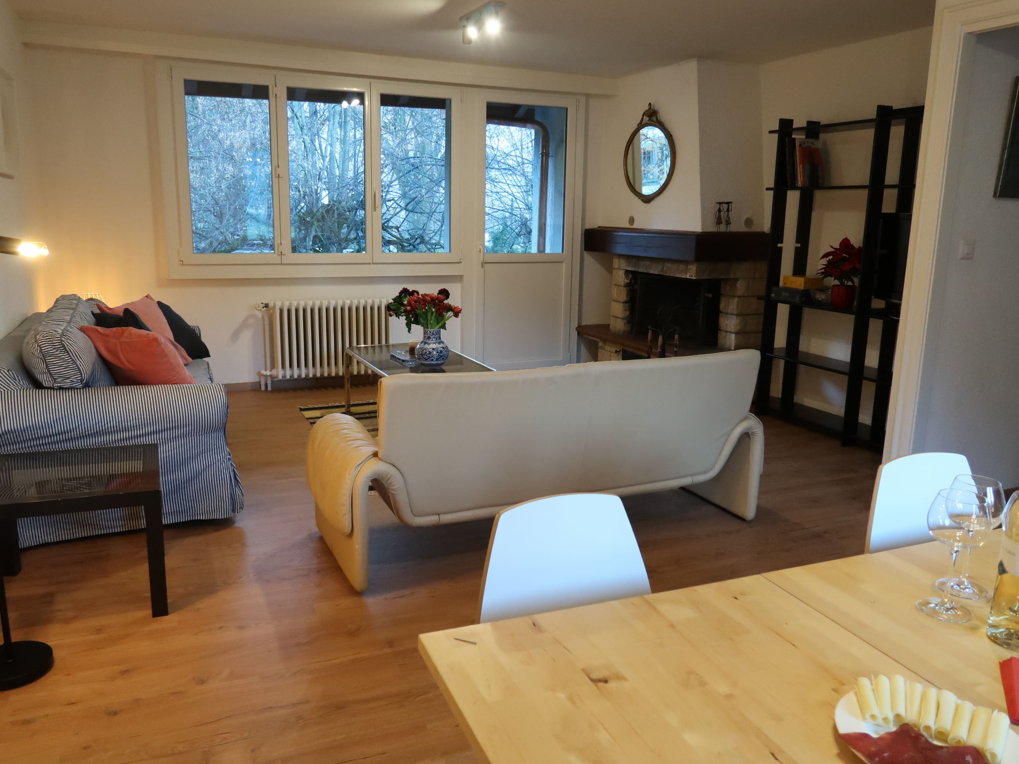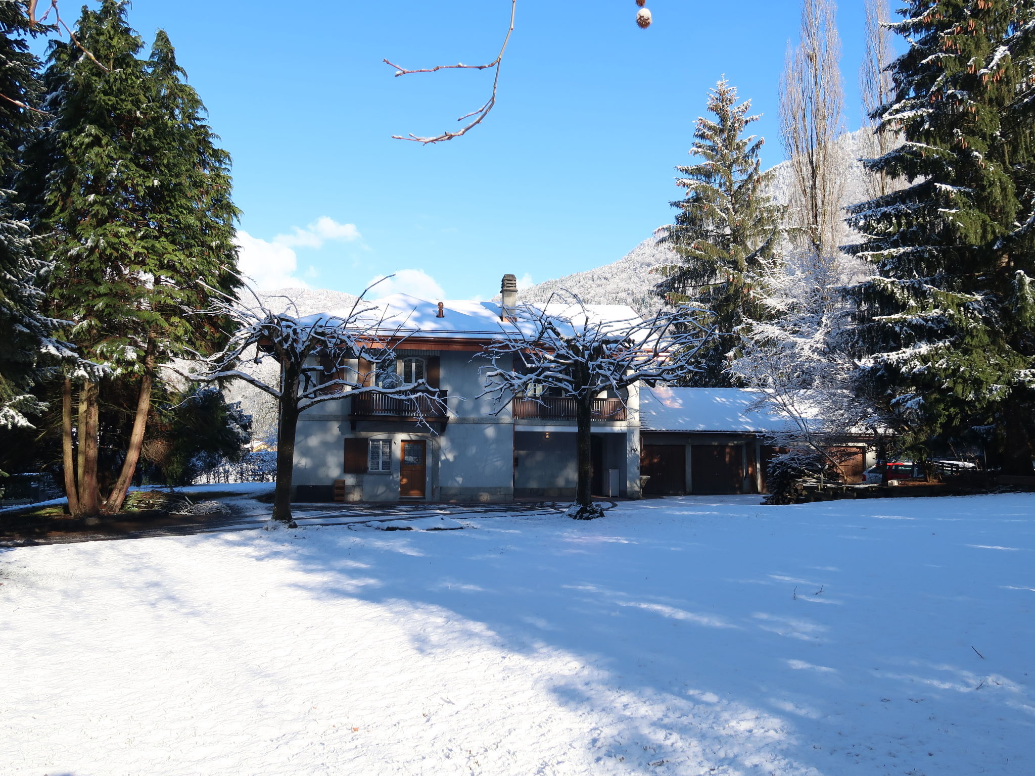 "Le Verger", apt. di 3 locali 90 m2 al 1. piano. Arredamento confortevole e di buon gusto: soggiorno/sala da pranzo con camino, TV (via cavo) e riscaldamento elettrico. Uscita sul balcone. 1 camera con 1 letto doppio (160 cm, lunghezza 200 cm). Uscita sul balcone. 1 camera con 2 letti (90 cm, lunghezza 200 cm). Grande cucina (forno, lavastoviglie, 4 piastre cottura in vetroceramica, tostapane, bollitore elettrico, forno a microonde, macchina da caffè elettrica, capsule per la macchina da caffè (Nespresso) extra, set per raclette, set per fondue (chinoise, formaggio)) con tavolo da pranzo. Uscita sul balcone. Bagno, WC separato. Riscaldamento elettrico. Pavimenti in parquet. 2 balconi. Bella vista sulle montagne e sul paesaggio. A disposizione: lavatrice, asciugatrice, asciugacapelli. Internet (wifi). Parcheggio. Prego notare: appartamento per non fumatori.