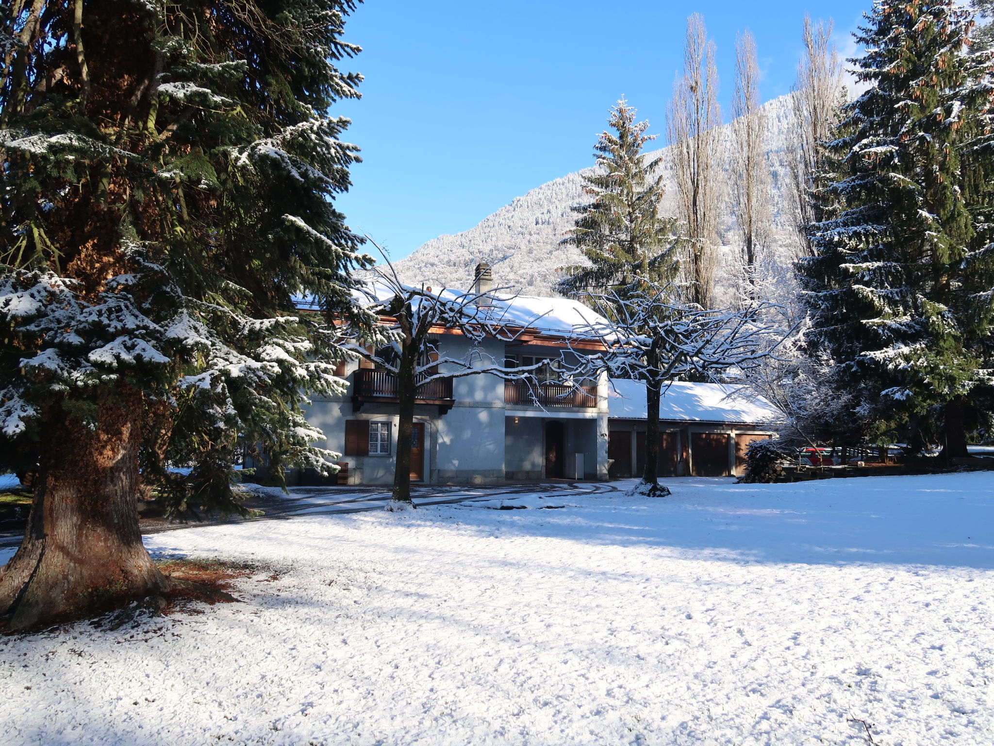 Casa bifamiliare "Le Verger", circondata da alberi e prati. Nella località, a 300 m dal centro di Bex, posizione tranquilla, posizione eccellente: centrale e nel contempo tranquilla, a 21 km dal lago, in una strada senza uscita. Supermercato 500 m, ristorante 400 m, panetteria 500 m, 5 minuti a piedi dal centro, fermata bus "Bex Pont Neuf" 170 m, stazione ferroviaria 200 m, piscina 5.6 km, piscina termale "Lavey les Bains" 6 km, laghetto naturale balneabile 10 km, laguna 21 km lago Lac Léman. Campo da golf (18 buche) 12 km, funivia 11 km, impianti di risalita 11 km, noleggio sci 11 km, pattinaggio 10 km. Attrazioni nelle vicinanze: Mine de Sel de Bex 5 km, Château d'Aigle (Musée de vin) 12 km, Grotte aux fées à Saint-Maurice 4.5 km, Château de Chillon 23 km, Montreux 27 km. Rinomate località sciistiche: Gryon/Villars/Les Diablerets 11 km, Leysin 27 km, Portes du Soleil 24 km. Laghi famosi: Lac Léman. Sentieri escursionistici: Bex, Gryon.