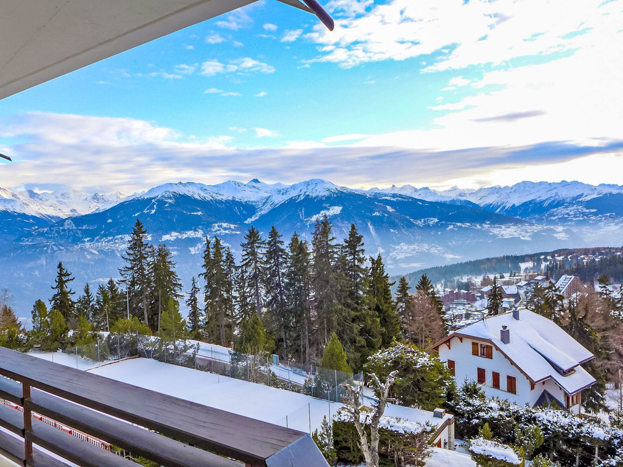 "Cransalpin Apt. 11 / Secteur 1", apt. di 4 locali 76 m2 al 4. piano. Arredamento gradevole e accogliente: soggiorno/sala da pranzo con TV (via cavo) (schermo piatto), DVD. 1 camera con 2 letti (90 cm, lunghezza 200 cm). 1 camera per bambini con 1 x 2 letti a castello (90 cm, lunghezza 190 cm). 1 camera con 1 letto alla francese (180 cm, lunghezza 200 cm). Cucina (4 punti cottura, forno, lavastoviglie, tostapane, bollitore elettrico, forno a microonde, macchina da caffè elettrica, capsule per la macchina da caffè (NESPRESSO) extra, set per raclette, set per fondue (formaggio)). Vasca/WC, doccia, WC separato. 3 balconi 30 m2, esposizione sud e esposizione ovest, esposizione nord. Mobili da terrazza. Splendida vista sulle montagne, sulla valle e sulla località. A disposizione: ferro da stiro, asciugacapelli. Internet (wifi, gratis). Prego notare: appartamento per non fumatori.