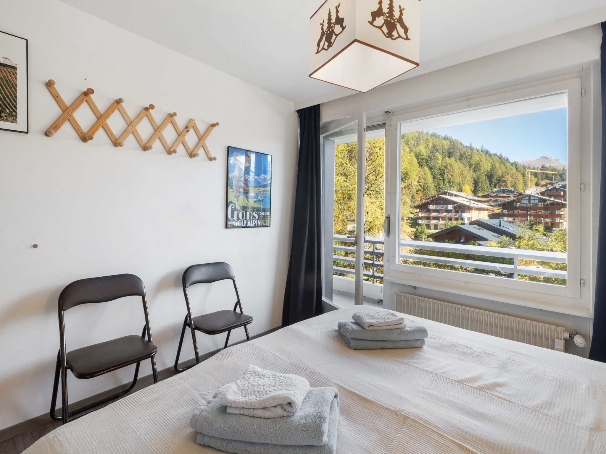 The sauna (16:00-20:00) is not available in low season. Swimming pool closed in November. Residence "Cransalpin", grande. Sopra Montana, a 1.2 km dal centro di Montana, posizione soleggiata, elevata, a 1.1 km dal lago, a 800 m dall'area sciistica, esposizione sud-ovest. In comune: giardino con prato, piscina coperta riscaldata (13 x 8 m, profondità 50 - 200 cm, disponibilità stagionale: 01.Dic. - 31.Ott. orari di apertura piscina: 08:00-20:00). Tennis. Nella casa: sauna, ascensore, deposito sci, riscaldamento centralizzato, lavatrice, asciugatrice (in comune, extra). Parcheggio (numero posti limitato). Negozio 1.2 km, supermercato 1.3 km, ristorante 1 km, panetteria 1.4 km, fermata bus "Vermala Soleil" 200 m, stazione ferroviaria "Funiculaire Montana Gare" 1.5 km, lago balneabile "Moubra" 2.2 km, lago Grenon 1.1 km. Campo da golf (18 buche) 2.3 km, impianti di risalita 800 m, pattinaggio 1.4 km. Prego notare: skibus gratuito. Ulteriori alloggi prenotabili.