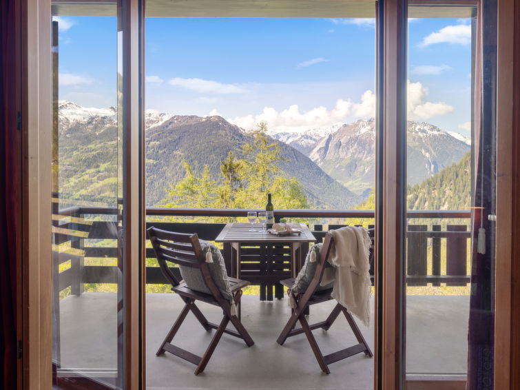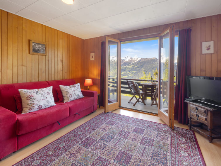 "Beausoleil 14", apt. di 2 locali 37 m2 al 4. piano, esposizione sud. Arredamento semplice e funzionale: soggiorno/sala da pranzo con 1 divano letto doppio (1 x 140 cm, lunghezza 200 cm), TV (via cavo). Uscita sul balcone. 1 camera piccola con 2 letti (90 cm, lunghezza 200 cm). Angolo cottura (forno, tostapane, bollitore elettrico, forno a microonde, set per fondue (formaggio)) con bancone. Vasca/WC. Grande balcone, esposizione sud. Mobili da balcone. Splendida vista sulle montagne e sul paesaggio. A disposizione: asciugacapelli. Internet (wifi, gratis). Parcheggio nr. 14 vicino alla casa. Prego notare: appartamento per non fumatori.
