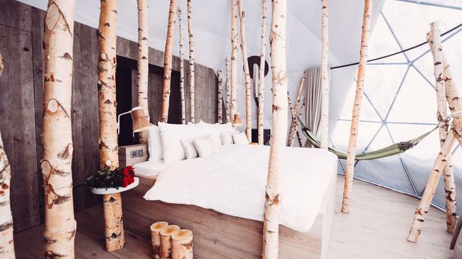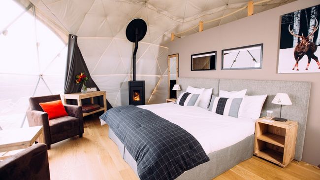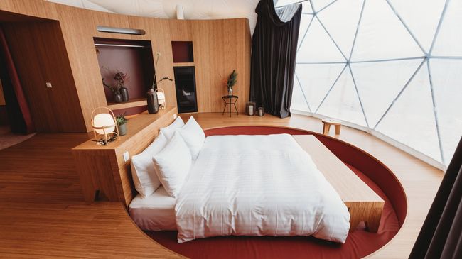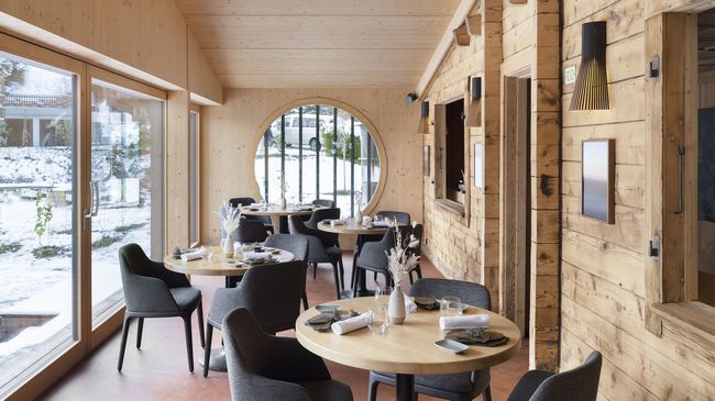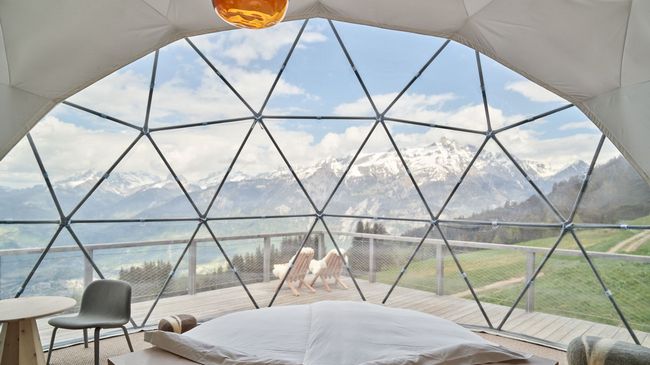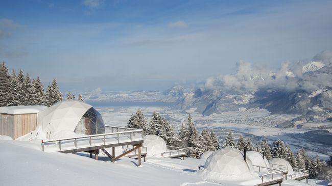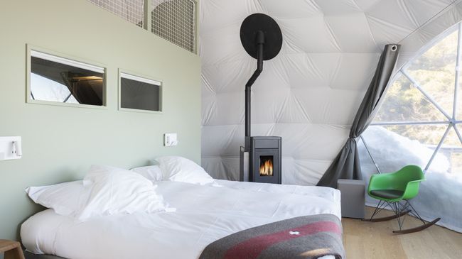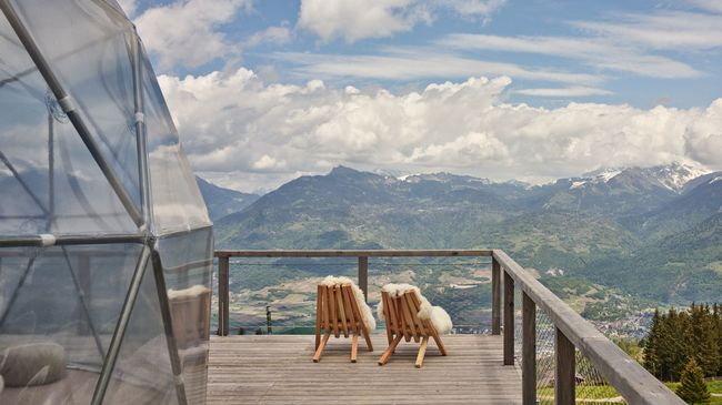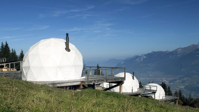 Ogni pod ha una vetrata panoramica sulla valle e una piccola terrazza.