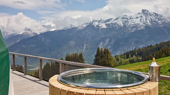 Situato a 1.400 metri sopra il livello del mare, l'hotel Whitepod Eco-Luxury offre pod su piattaforme in legno. Ogni alloggio è dotato di una stufa a pellet e di un bagno privato.