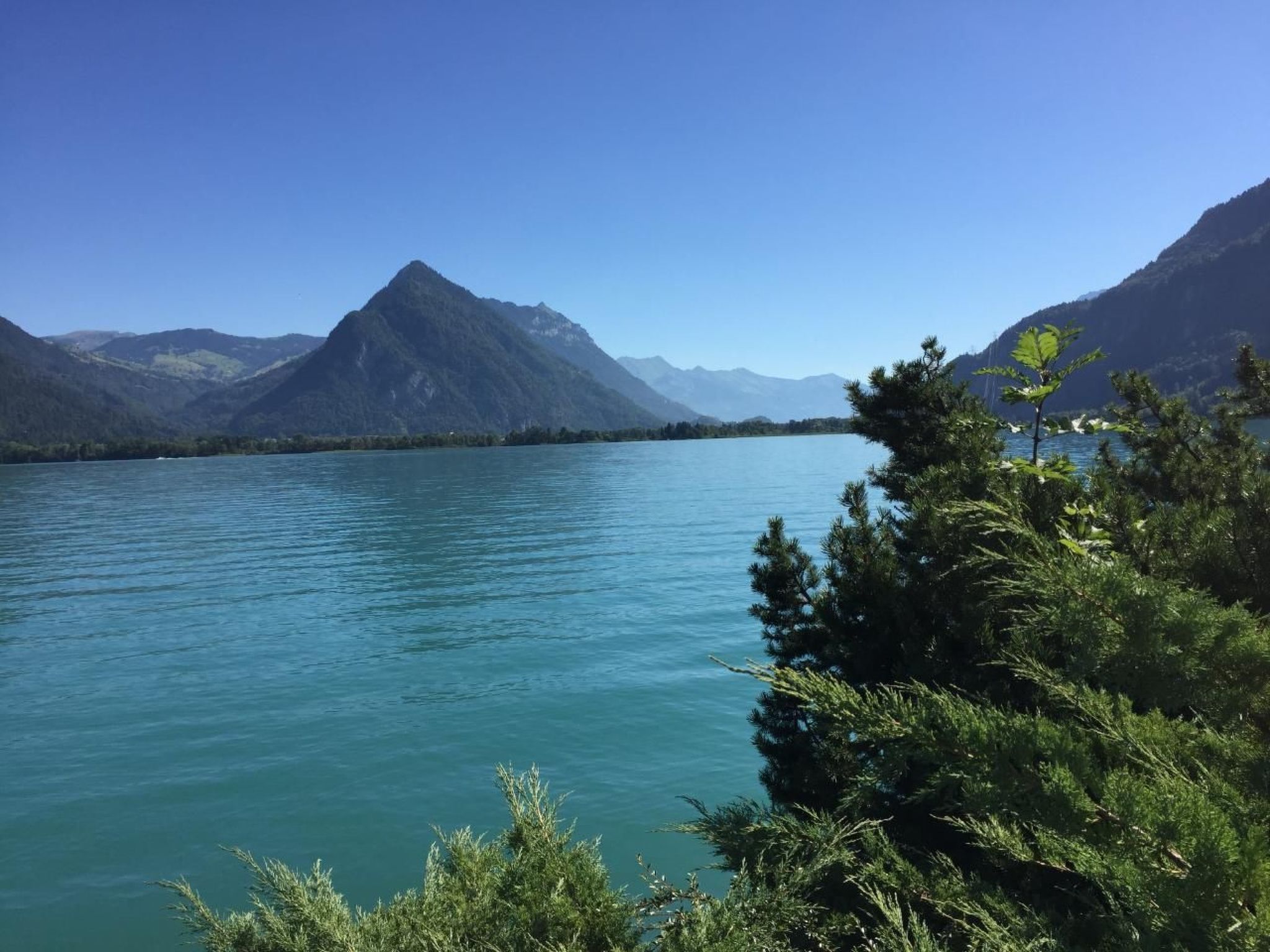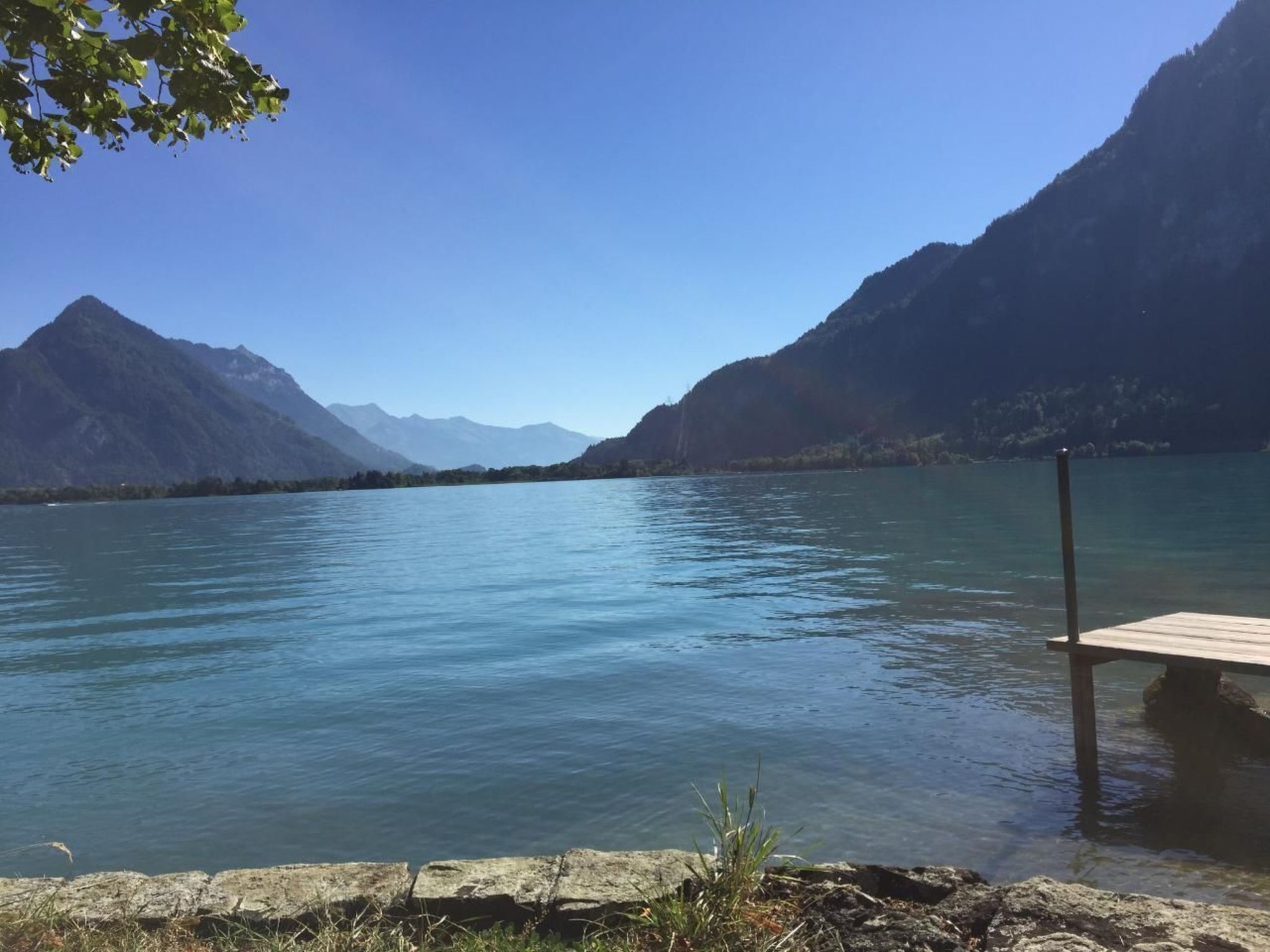 Mountains and lakes, a combination for bliss! Enjoy the direct view of the beautiful Lake Thun! A comfortably furnished, bright 40 m/2 holiday flat with a modern eat-in kitchen awaits you. Ideal for 2 people who enjoy an active holiday. Modern furnishings with wood-panelled ceiling. Kitchen with 4-ring hob. Oven and dishwasher. End your holiday at the cosy bar. Double bed with romantic lighting (200cm x 160cm) with two health mattresses.Comfortable modern seating area. Bar area with 2 bar stools. Flat-screen TV (82cm), cable TV with 156 channels from all over the world.Cosy glass dining table. Enjoy your meal! Floor panels with underfloor and radiator heating.Enjoy the wonderful view of Lake Thun! The lakeside promenade with free bathing areas and two lakeside restaurants just a few metres away (cross the village road and railway track).1-room apartmentGround floor - 40 m