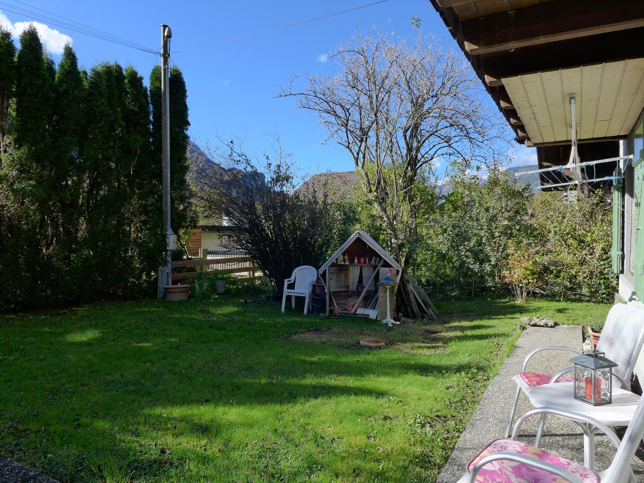 Chalet accogliente, rustico su 2 piani. Posizione tranquilla in una zona residenziale, a 5 m dal bosco. In comune: curato giardino con prato e piante. Nella casa: riscaldamento centralizzato. Accesso stretta fino della proprietà. Parcheggio. Negozio, ristorante, panetteria 400 m, fermata bus "Meiringen, Bahnhof" 500 m, stazione ferroviaria "Meiringen" 500 m, piscina 1.3 km. Sentieri per passeggiate vicino alla casa 10 m, funicolare, impianti di risalita, noleggio sci 700 m, fermata ski bus 250 m, scuola di sci 700 m, pattinaggio 500 m. Attrazioni nelle vicinanze: Aareschlucht, Ballenberg Freilichtmuseum, Grimselwelt, Sherlock Holmes Museum. Rinomate località sciistiche: Meiringen Hasliberg. Laghi famosi: Brienzersee. Sentieri escursionistici: Rosenlaui, Hasliberg. Prego notare: il proprietario vive nello stesso immobile.