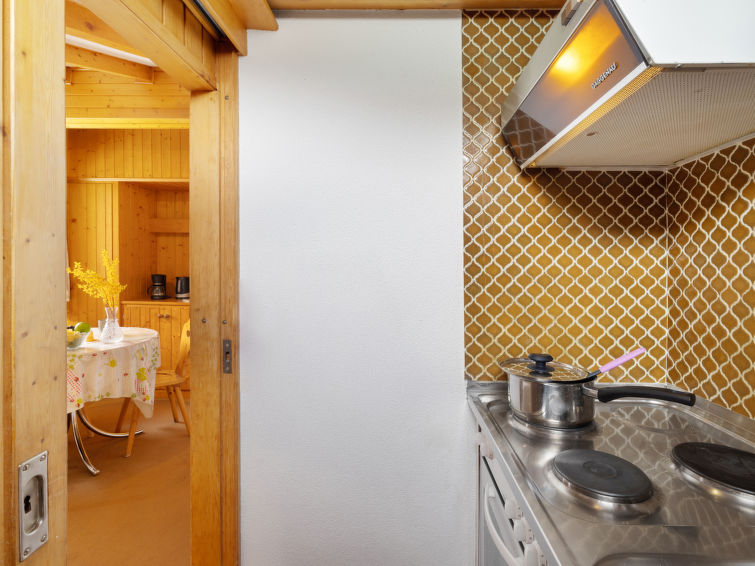 "Eldorado 321" monolocale 25 m2 al 4. piano, esposizione nord. Arredamento semplice: soggiorno/sala da pranzo con 1 letto doppio e tavolo da pranzo. Piccola cucina (3 punti cottura, forno). Doccia/WC. Senza vista. Prego notare: appartamento per non fumatori, senza parcheggio. Massimo 1 animale/cane consentito.