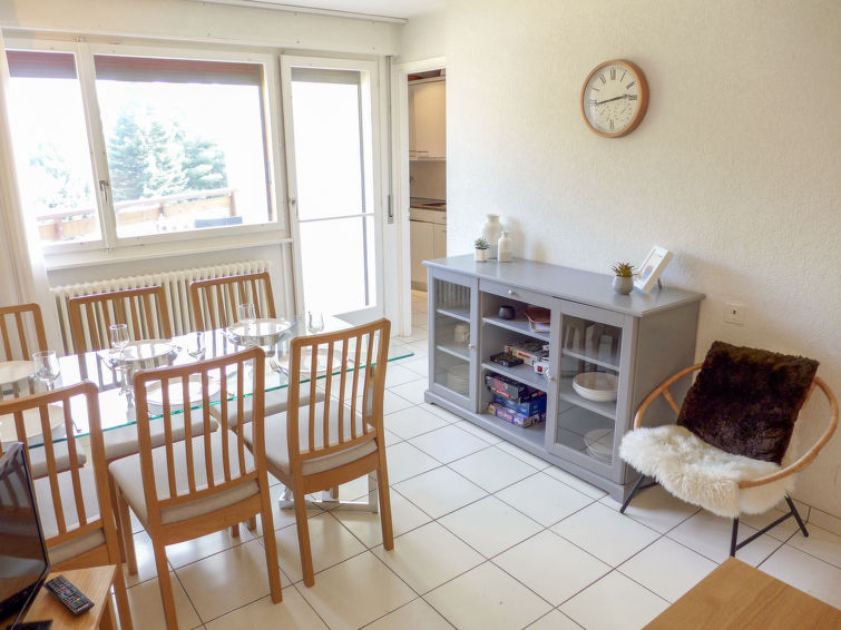 Casa plurifamiliare "Barzettes-Vacances A/B". Sopra Montana, nella frazione Les Violettes, a 1.5 km dal centro di Montana, a 2.2 km dal lago, a 150 m dall'area sciistica. Nella casa: ascensore, deposito sci, riscaldamento centralizzato, lavatrice (extra), locale di asciugatura. Parcheggio (numero posti limitato) presso la casa, garage pubblico a 20 m, extra. Negozio alimentare 1.5 km, supermercato 1.6 km, ristorante 1.5 km, panetteria 250 m, fermata bus "télé Violettes" 100 m, stazione ferroviaria "Funiculaire Montana Gare" 1.2 km, lago balneabile "Moubra" 2.5 km, lago Grenon 2.2 km. Campo da golf (18 buche) 3.5 km, impianti di risalita, piste da sci, noleggio sci 150 m, pattinaggio 1.9 km. Laghi famosi: Etang de la Moubra 2.5 km. Prego notare: Il proprietario non accetta gruppi di giovani. Skibus gratuito. Ulteriori alloggi prenotabili.