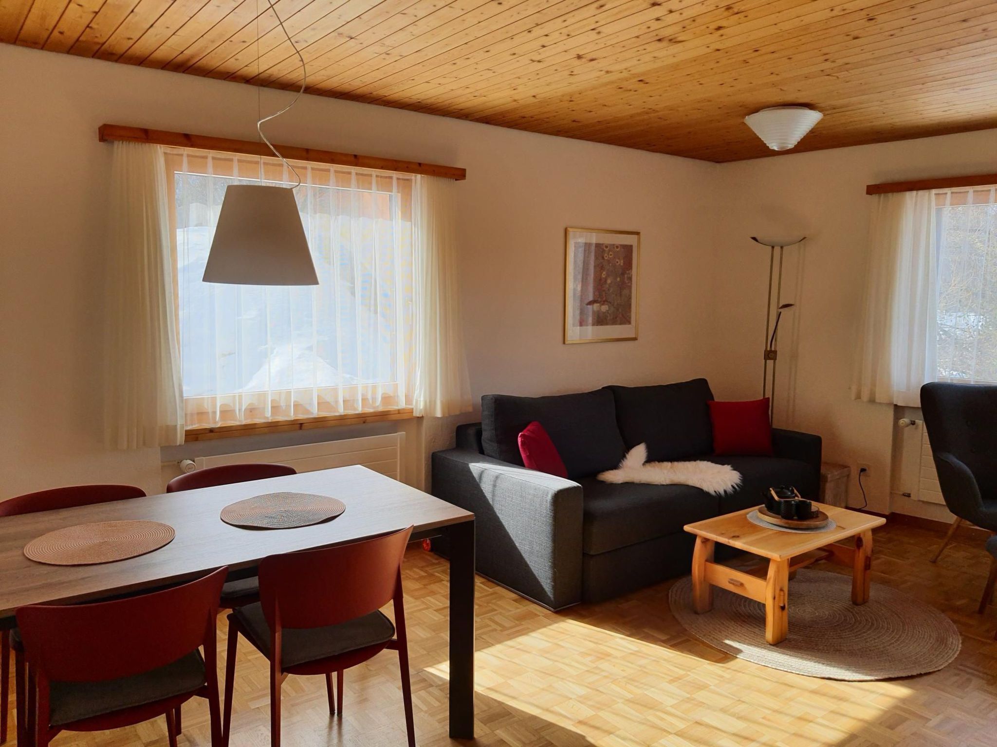 Beautiful, bright 2 1/2 room flat (approx. 50m2 for 2 persons) on the mezzanine floor, particularly quiet, slightly sloping location in the Muragls district.Bright, spacious living room with dining table and sitting area, with Swisscom TV and WLAN. Sunny, spacious, furnished south-facing balcony with uninterrupted views of the Engadine mountains. Separate kitchen with dishwasher, large fridge, oven, fondue set, raclette oven, kettle, Nespresso coffee machine etc. Bathroom with new remodelled shower with WC and separate WC. 1 double bedroom with wardrobe and plenty of storage space. Washing machine, ski room, bicycle room in the house for general use. Garage space in underground car park. Close to bus stop, cross-country ski run and hiking trails. Pets not allowed. Non-smoking flat. The cheapest ski pass "Snow-Deal" is available online in the Engadin St. Mountains webshop. Up to 15 days before your stay at the latest, you can benefit from discounts of up to 30% on day and multi-day tickets.Other sports and leisure activities: suitable for hikers, bikers, connoisseurs, alpinists, skiers, winter sports enthusiastsOther living room furnishings (living room1): Sofa and 2 armchairs, free-standing dining table with chairs, bright and friendly, access to the terraceOther bedroom furnishings (bedroom 1): two-door wardrobe, bedside table by each bed with lightingOther kitchen equipment (kitchen1): Raclette and fondue service, Nespresso coffee machine, dishwasherSports facilities in the area: mountaineering, ice skating, golf course, climbing, mountain biking, cycle tours, alpine skiing, cross-country skiing, surfing, tennis, sailing