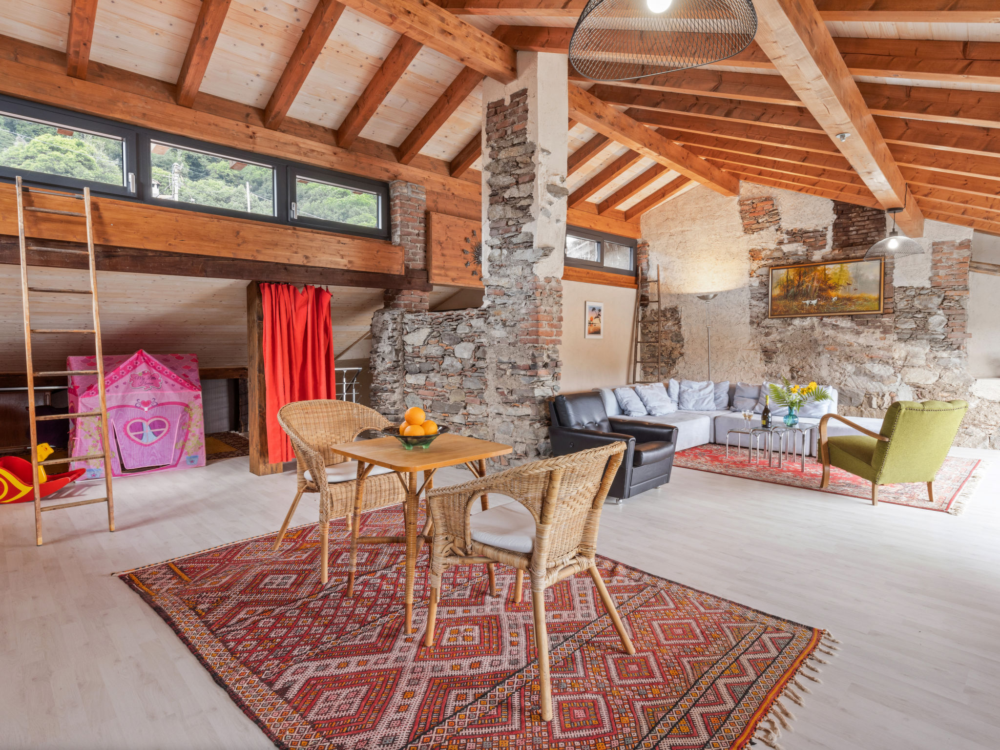 "Primavera", casa 6 locali 140 m2 su 3 piani. Oggetto adatto a 5 adulti + 1 bambino. Arredamento funzionale e gradevole: soggiorno/sala da pranzo con DVD, raccolta di dvd a disposizione, stufa e riscaldamento elettrico. Uscita verso il patio. 1 camera con 1 letto alla francese (1 x 160 cm, lunghezza 200 cm). Cucina abitabile (4 punti cottura, forno, tostapane, bollitore elettrico, macchina da caffè elettrica, capsule per la macchina da caffè (Nespresso) extra) con tavolo da pranzo, camino. Uscita verso il patio. Vasca/WC. Boiler (150 litri). Piano superiore: 1 camera con 1 letto doppio (2 x 90 cm, lunghezza 200 cm). 1 camera con 1 divano letto (120 cm, lunghezza 190 cm). 1 camera con 1 divano letto (140 cm, lunghezza 200 cm). Doccia/WC. 2. piano superiore: soggiorno mansardato, aperto grande. Piccolo patio 30 m2, esposizione nord e esposizione ovest. Mobili da terrazza, barbecue elettrico. Bella vista in lontananza sul paesaggio e sulla località. A disposizione: lavatrice, asciugatrice, lettino per bimbi fino 2 anni (extra). Prego notare: adatto alle famiglie. No ascensore. NL-00003184