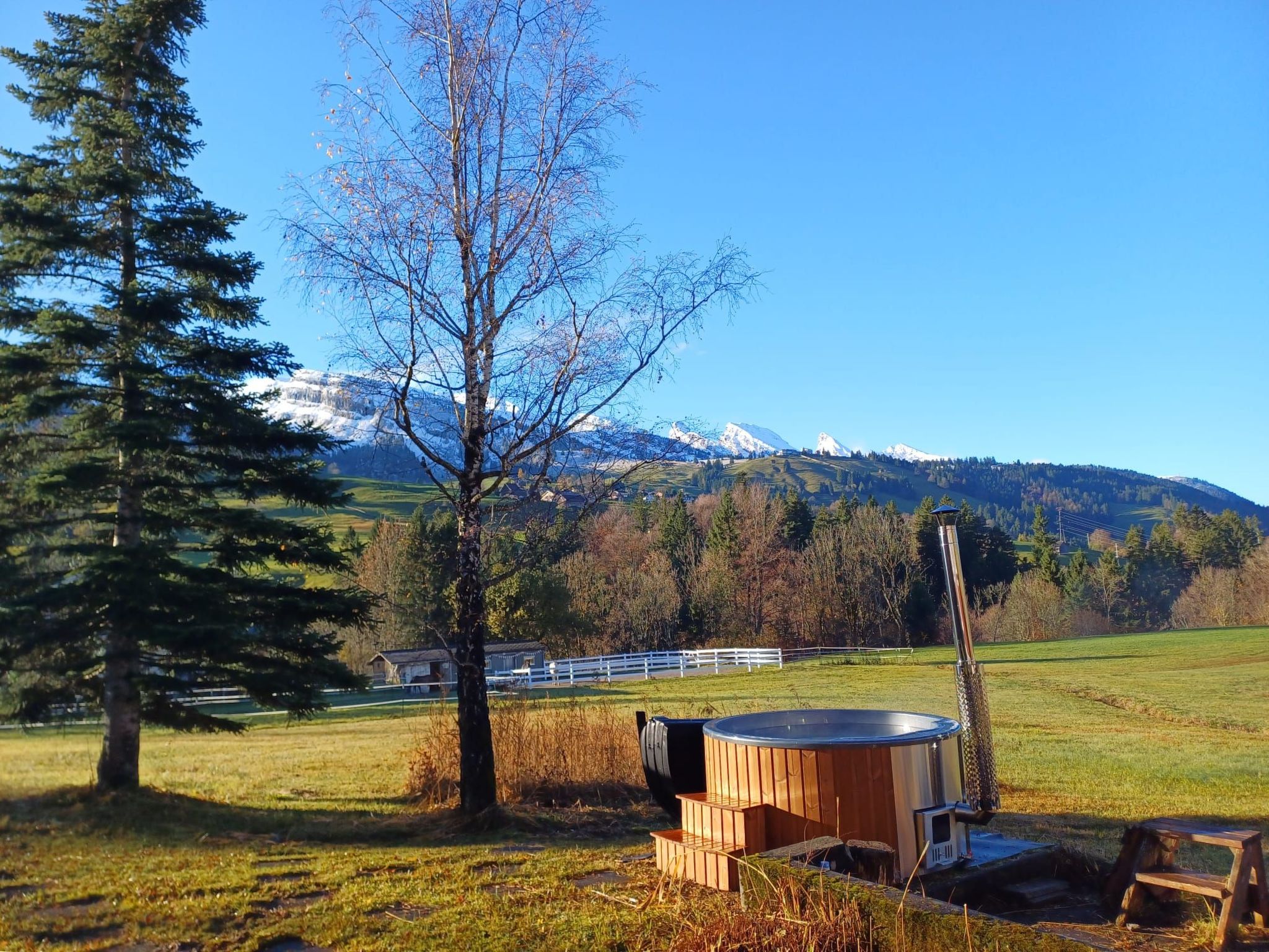 This romantic Toggenburg cottage is idyllically situated at the source of the Thur, with a view of the Churfirsten. Bright, friendly rooms with shabby chic style furnishings. The house is surrounded by a covered seating area at the entrance, a sun terrace on the south side, a separate barbecue area, 4 parking spaces and 2500 m2 of surrounding land (Riet area). The hot tub is optional to rent: up to 3 nights Fr. 250.-- from 4 nights Fr. 300.--. On the ground floor is the cosy living/dining area and the open kitchen with coffee corner. Next to the master bedroom with double bed is the children's playroom or baby room. The house is heated by the underfloor heating and the efficient Swedish soapstone stove. Simple shower/WC. Entrance hall with wardrobe and shoe racks. Upstairs there are two 2-bed rooms and a small, neat single room. WC and shared lavabo. Very quiet location with a direct view of the Churfirsten. Nevertheless centrally located with the ski bus 70 metres from the house during the season. The house is ideal for family or even 3 generation holidays. There is also room for up to 4 people in our Studio Chic, which can be found under holiday flats. In the snow in front of the house you can see tracks of deer, foxes and squirrels and if you are lucky you can watch the animals from the house.Excursion possibilities: Various hikes, ski slopes and cross-country ski trails. Sound museum, riding stable, waterfalls, caves, sound trail, legend trail, panorama trail, llama tourOther living room equipment (living room 1): Very bright, cosy living room with lots of ambience. Sofa and an antique cosy bed invite you to linger and relax. Efficient Swedish soapstone stove with large viewing window for romantic moments. Dining area with extendable dining table, open-plan kitchen.Other bedroom furnishings (bedroom 1): Very bright and tastefully furnished, cosy bedroom with a double bed, a bedside table with lamp and two built-in wardrobes. A cosy armchair invites you to linger or read.Other kitchen equipment (kitchen 1): New, bright country-style kitchen with ceramic hob and extractor fan. Coffee corner with separate table.Sports facilities in the area: fishing, mountaineering, ice skating, golf course, hunting, climbing, mountain biking, paragliding, bike tours, riding area / riding possibilities, tobogganing, skiing (alpine), skiing (cross-country), sports centre, tennisPhotography and filming for commercial purposes are expressly permitted only with the consent of the owners.