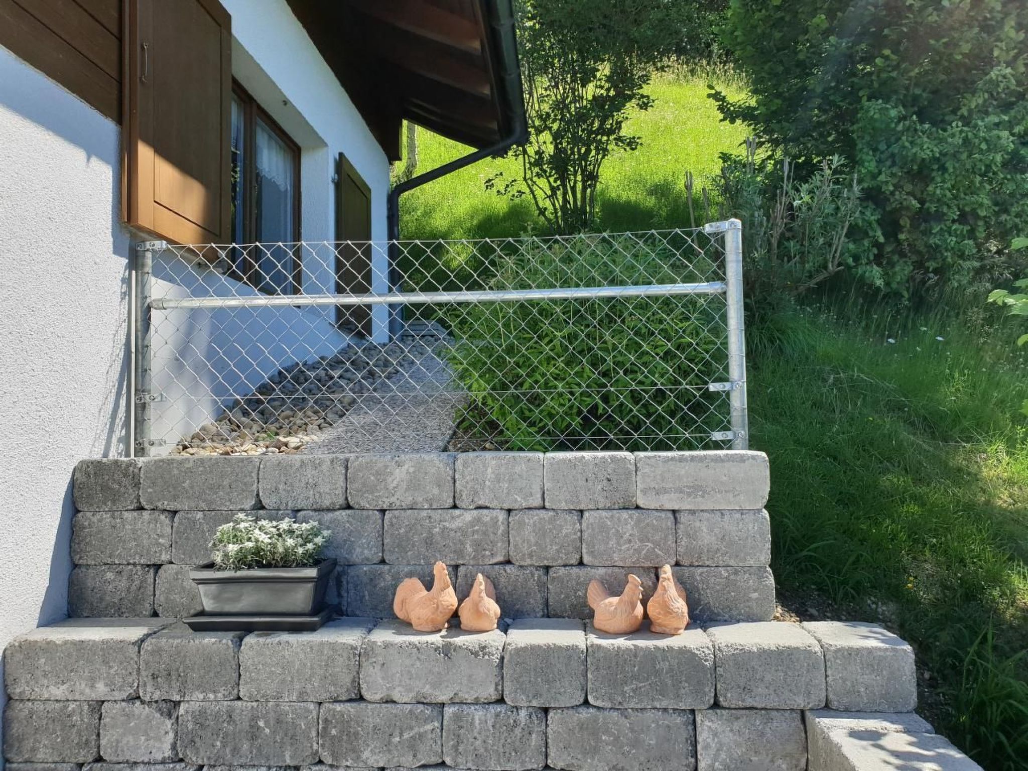 Discover our charming holiday chalet, which has been shining in new splendour inside and out since spring 2024 after extensive renovation work. It is located on a sunny south-facing slope at the upper edge of the "Sonnmatt" chalet development in Mogelsberg SG, just a stone's throw away from the breathtaking "BAUMWIPFELPFAD Neckertal". Enjoy the peaceful location and the magnificent view of the picturesque hilly landscape of the Necker Valley. This accommodation is the ideal retreat to relax in nature and unwind.Inside, a cosy ambience awaits you on 84m², spread over four levels. The living room with leather upholstery, cushions, cosy blankets and a large flat-screen TV invites you to linger. A fireplace provides cosy warmth. The open-plan dining area and direct access to the terrace complete this cosy atmosphere. The kitchen is fully equipped with modern appliances and the two renovated bathrooms offer modern comfort. Up to 5 people can enjoy a restful night's sleep in the three bedrooms.The exterior design of our chalet is equally impressive. A large, furnished terrace with fireplace/barbecue and an equally furnished balcony with newly laid flooring offer plenty of space for relaxing hours outdoors. The careful access to the house and terrace as well as the lovingly designed surroundings emphasise the harmonious overall picture.The chalet's location in the centre of the charming Necker Valley offers a wide range of leisure activities: The surrounding hiking area with its rewarding viewpoints and rustic mountain restaurants invites you to explore. Despite the quiet, idyllic location, the village centre of Mogelsberg is only about 600 m away. The town of St. Gallen can also be reached by train or car in just 25 minutes, making the chalet the perfect starting point for a wide range of activities.If you would like to spend an unforgettable holiday in a lovingly renovated chalet in one of the most picturesque places in Switzerland, then our holiday chalet in Mogelsberg is just right for you. Let yourself be enchanted by the unspoilt natural surroundings and enjoy the modern comforts of a home in the middle of the majestic Toggenburg mountains. Experience pure relaxation in an environment that invites you to explore and at the same time promises peace and quiet.