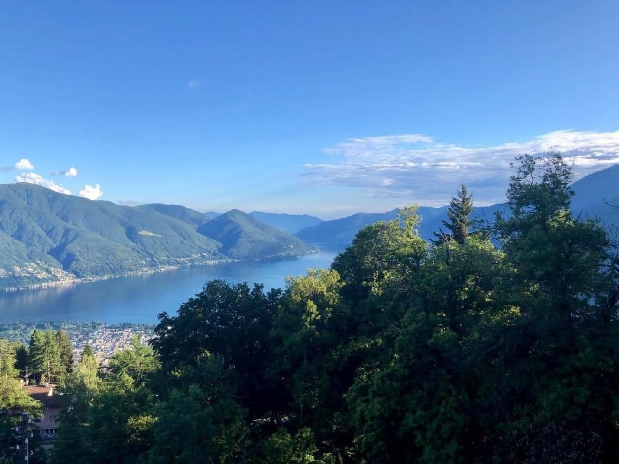 **Appartamento per le vacanze nello Chalet Ticinese** Lo Chalet Ticinese si trova nel pittoresco villaggio di Monte Bré sopra Locarno e offre una vista panoramica mozzafiato sul Lago Maggiore e sulle montagne circostanti. L'appartamento al primo piano può ospitare fino a 5 persone, oppure l'intero chalet con il secondo appartamento può essere affittato per ospitare fino a 9 persone. Situato in mezzo alla natura, la casa si distingue per la sua pura bellezza, il sole tutto il giorno e una piacevole brezza. Qui avete la possibilità di: - Fare escursioni - Andare in bicicletta - Fare passeggiate - Sperimentare il parapendio - Raccogliere castagne - Osservare la fauna selvatica - Rilassarvi al sole e godervi la tranquillità e la vista impressionante Dal parcheggio, una scala conduce alla casa. I bagagli possono essere comodamente trasportati con un montacarichi. Lo chalet dispone di un ampio prato per giocare con una sabbiera. A circa 1 km a piedi si trovano la funivia Cimeta e la funivia Cardada, che offrono entrambe un'altra vista mozzafiato sul Lago Maggiore.Neu gibt es zwei Busfahrten von Locarno nach Monta Bre sLocarno.