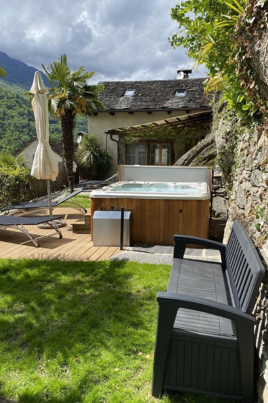 Newly built Top - Rustico, comfortable and stylishly furnished, beautiful garden with panoramic view, outdoor fireplace, pergola, located in the beautiful old village of Dongio (Val Blenio), Dongio is located in the upper Ticino 8 km from Biasca towards the Lukmanier Pass, many hiking possibilities, swimming in the river, skiing, cross-country skiing, mountain tours or just relax. Ideal also with dog, many walking possibilities and everywhere bigger or smaller rivers to drink water or to take a cool bath. In the secluded garden there is a heated whirlpool with massage jets (in operation all year round, even in winter). Outdoor sauna, 4 seats.Excursion possibilities: Stroll through the towns of Bellinzona, Lorcarno or Lugano, Swiss Miniature in Melide, Brissago Islands, Monte Tamaro, boat trips on Lake Maggiore or Lake Lugano, many hiking opportunities, shopping in the FOX TOWN shopping centre, Mendrisio motorway exit, open Mon to Sun 11.00 to 19.00, 160 shops. Market in Luino (Italy) Wednesday 09.00 to 16.30 and market in Cannobio Sunday 08.00 to 13.00Other living room equipment (living room1): Television (Swisscomtv with 30 hours replay), sofa set, lounge table, dining table and chairs. Stairs up and down lockable with child gate.Other kitchen equipment (kitchen1): Soda Club (mineral water), coffee machine: Siemens EQ.6plus s500 with one touch function (selectable espresso, coffee cream, latte macchiato, cappuccino, milk coffee, milk foam etc.). Dishwashing liquid for dishwasher and hand washing available as well as kitchen towels and paper rolls.Location description: Dongio is situated in the central Blenio Valley (also called Sun Valley) 460m above sea level, between Biasca and Lukmier Pass, small Ticino village on the Brenno River with very good infrastructure, well served by public transport, good air quality, healthy dry climate. NL-00011654