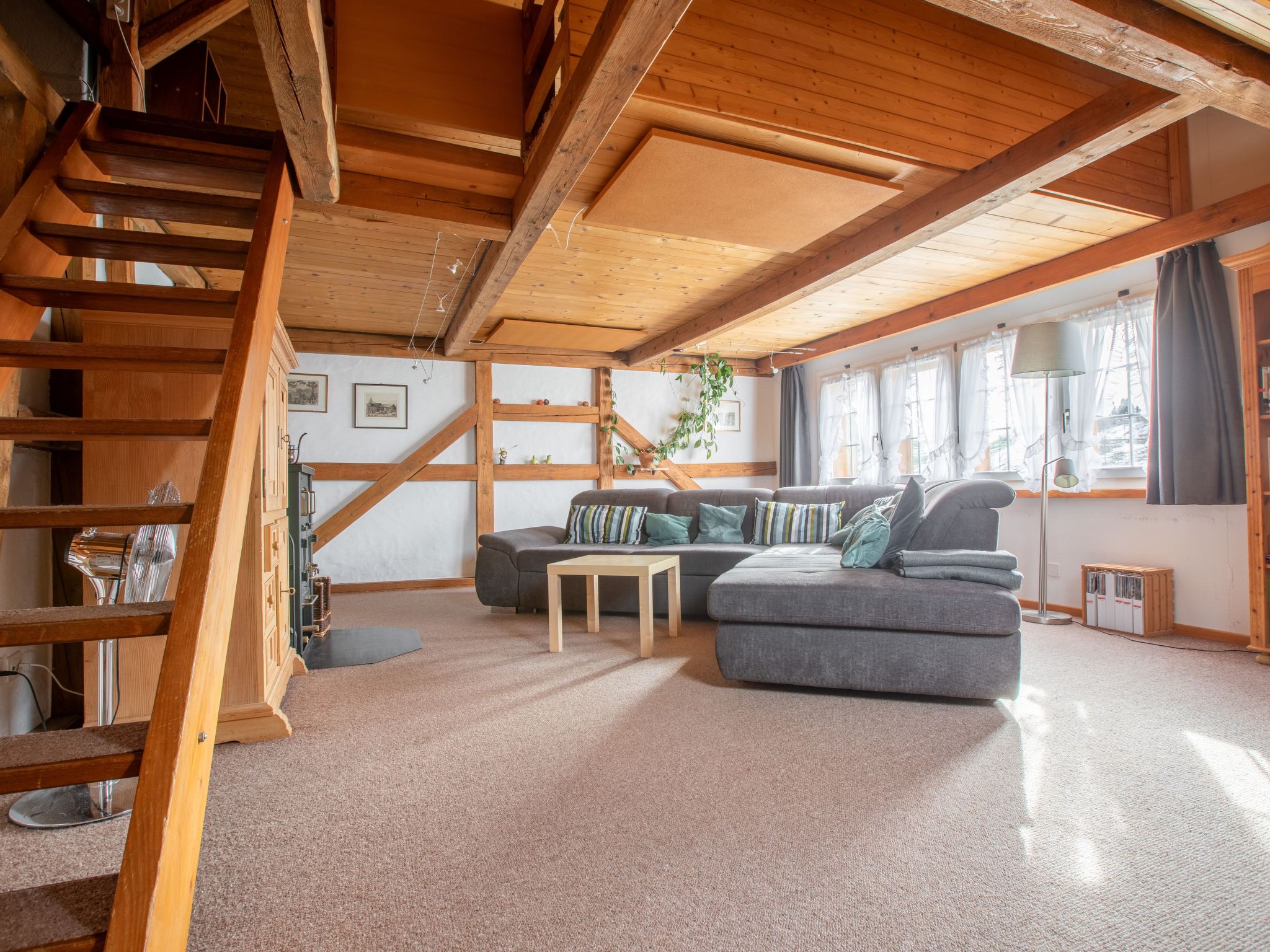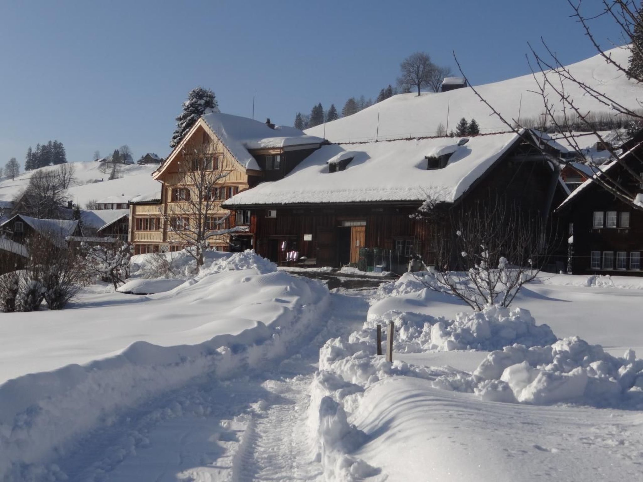 Discover the ideal getaway for nature lovers and those seeking relaxation in our cosy holiday flat in picturesque Gais in Appenzellerland. In the middle of an active organic farm, this cosy domicile with a view of the imposing Säntis offers the perfect setting for an unforgettable family or friends' getaway. Equipped with all amenities, including a farm shop with an extensive range of organic products directly in the house, comfort is a matter of course here.Within the flat, in addition to two bedrooms that can be darkened to accommodate up to six people, our guests also have a variety of appliances at their disposal to make their stay as comfortable as possible. The kitchen is efficiently equipped with a dishwasher, a washing machine for sole use, a kettle and an espresso pot that provides a fresh coffee aroma every morning. In colder weather, the fireplace provides cosy warmth and creates a cosy atmosphere.The outdoor area of the farmhouse, which includes a garden accessible to all guests, invites you to relax and unwind. As the owner himself lives on the property, great importance is attached to a well-kept and hospitable environment. Here you can unwind and enjoy rural life to the full.The holiday home is in an excellent location: just 400 metres from the nearest village centre and right next to a grocery store. For active holidaymakers, the surrounding area offers excellent opportunities for hiking, cross-country skiing (cross-country skiing area just 1 km away), mountaineering and many other outdoor activities. Thanks to the Appenzell holiday card, which is available to all guests, you can easily explore the region and its attractions, such as the nearby Alpstein massif.This holiday flat is more than just a place to stay - it's a home away from home, where you can enjoy the tranquillity of nature without sacrificing modern comforts. Whether you are looking for peace and quiet, want to get active or simply spend time with your loved ones: Here you will find everything you need for a relaxing break.