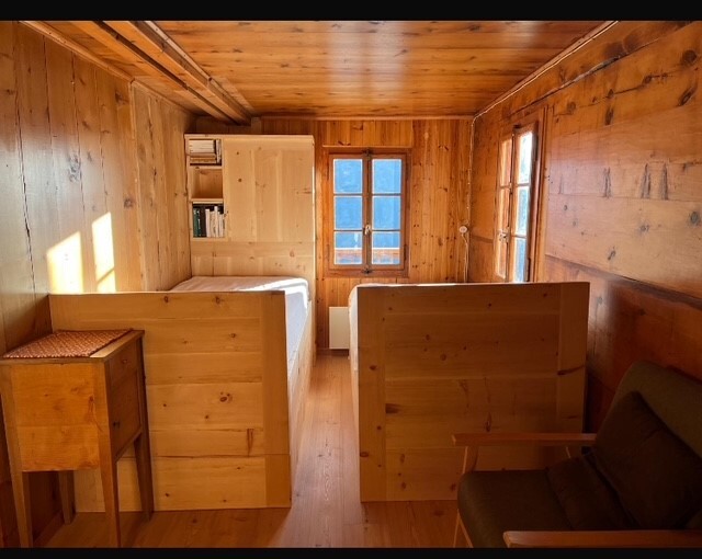 Nel cuore del vecchio villaggio di Chandolin, appartamento autentico e accogliente, interamente rivestito in legno con una tradizionale stufa in pietra ollare. La legna per il camino è fornita. Situato al 1° piano di una tipica casa di paese. Ideale per 3-4 persone. Bellissimo parquet massiccio nei locali giorno, pavimento piastrellato nel bagno. L'appartamento è così distribuito: ingresso con armadio, bagno con cabina doccia, WC e lavabo. Ampia cucina abitabile, fornello a 3 piastre, grande frigorifero e congelatore separato, senza lavastoviglie, angolo pranzo con panca ad angolo. 1 camera con 2 letti singoli. Accogliente soggiorno con divano letto 160x200, accesso diretto al balcone, splendida vista sul Cervino e sul villaggio. Non ci sono televisione né Wi-Fi.